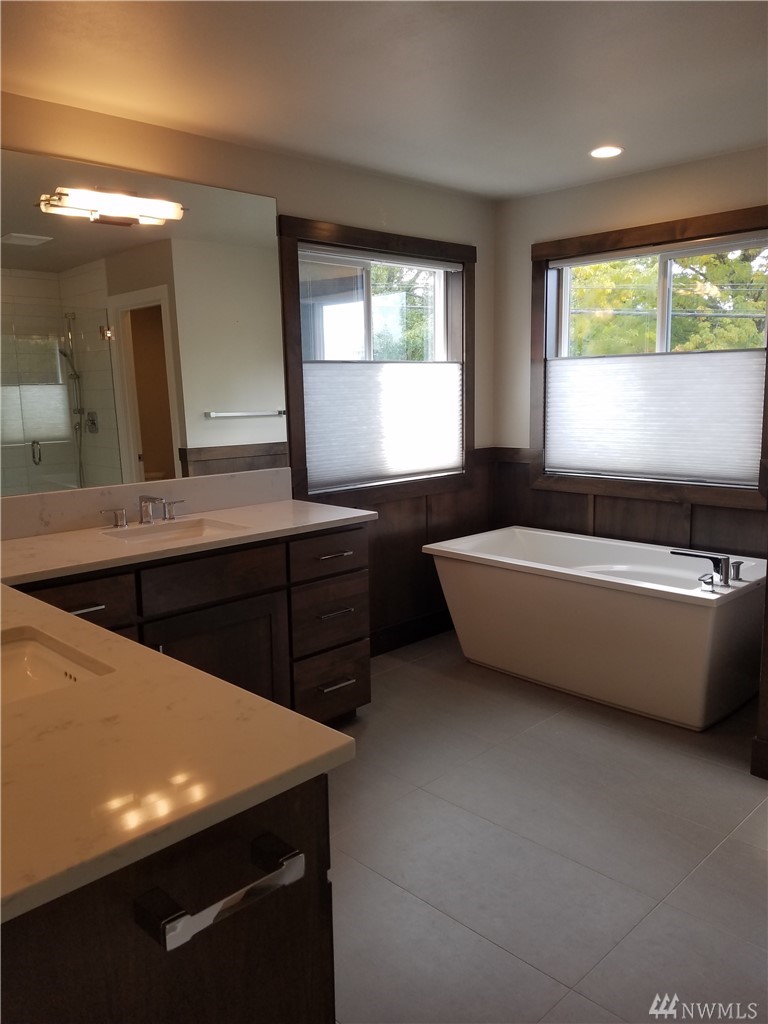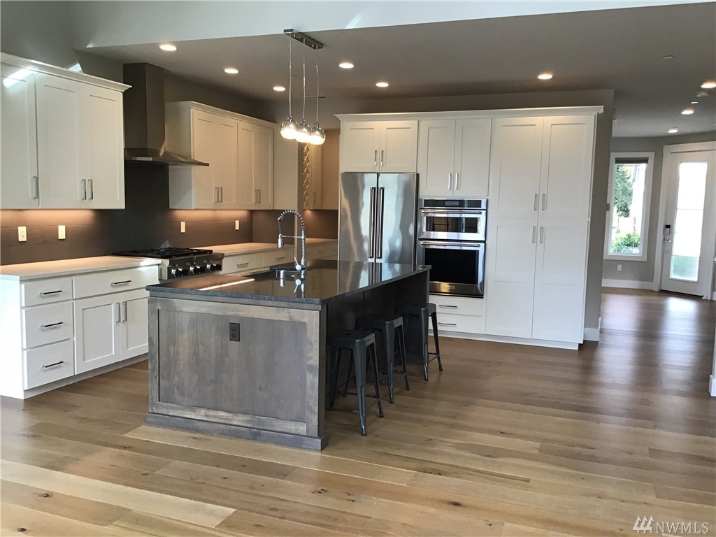 Lrg corner lot in cul-de-sac of Northshore school district! 4 bdrm, 3-car garage & fenced backyard. Gourmet kitchen w/ oversized island, stone backsplash, 36" gas range top, under cabinet lighting, butler's pantry, 42"custom cabinets & SS appl. 9' ceilings, oversize windows bring lots of natural light. Formal dining/den w/ french doors. A/C, fire sprinkler system, 230v outlet in garage for electric vehicle charger,custom blinds, noise reducing windows