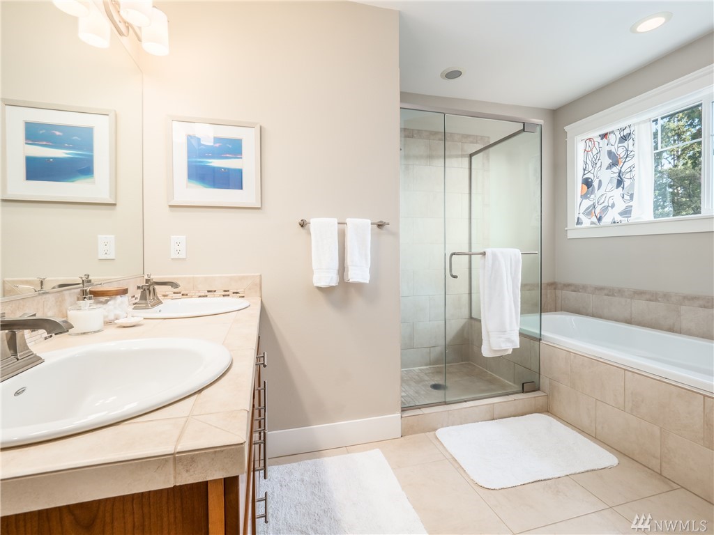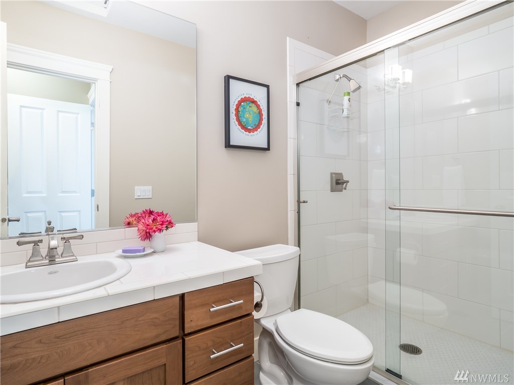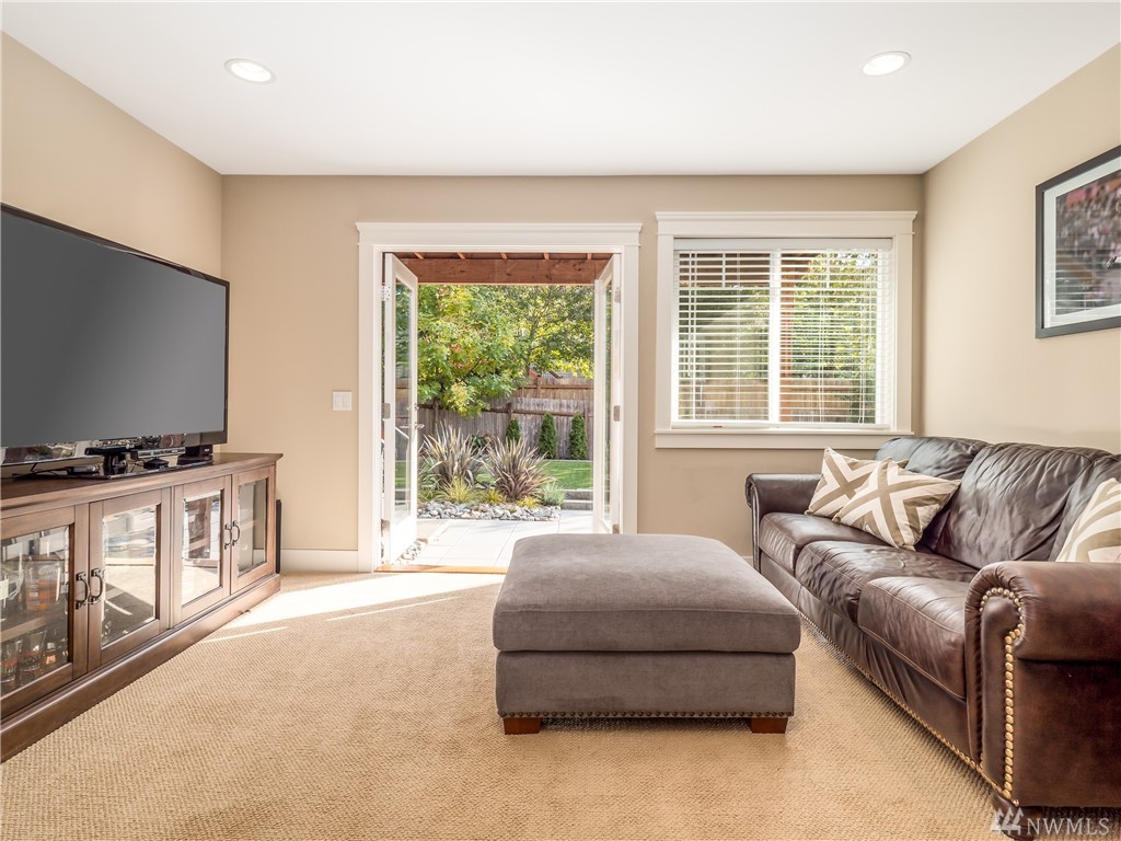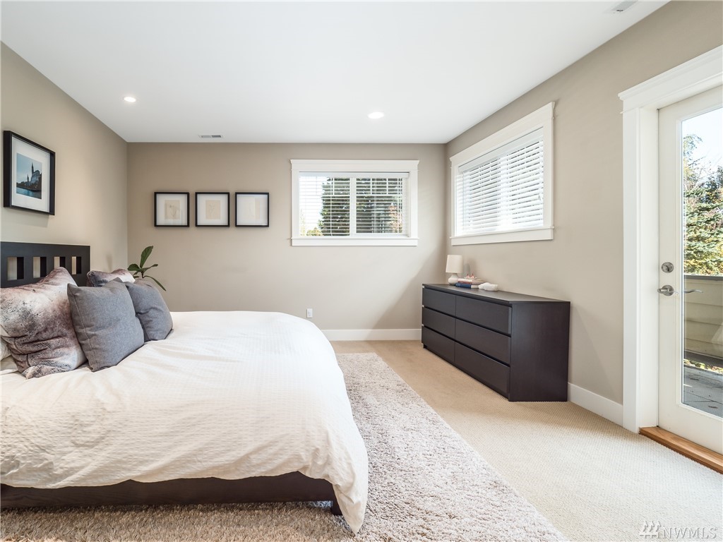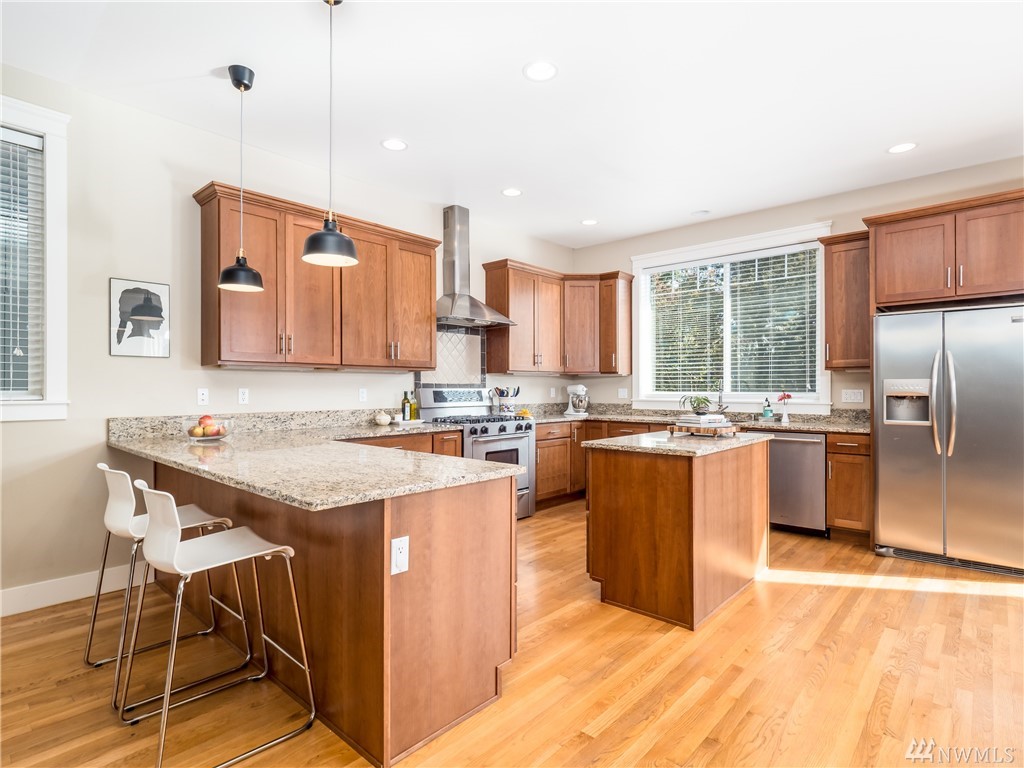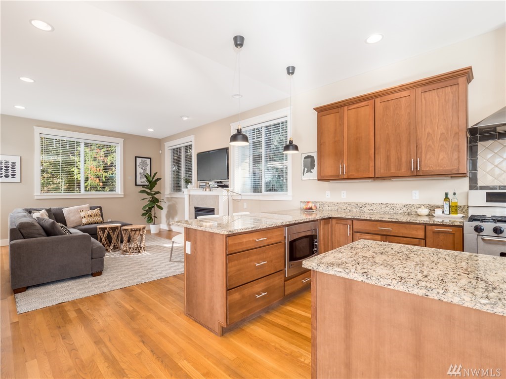 You will love the layout, high ceilings and windows bringing in natural light in this marvelous & private 3 story home. This newer northwest contemporary home checks off every box for buyers. It has a fantastic & casual Living Room, gourmet Kitchen, Dining Room & cozy Den, all with hardwoods. Upstairs has a great master suite and second bed/bath. The lower level has more bedrooms, a TV Den with backyard access, bath & big garage. The backyard is spectacular & sunny! Near Matthews Beach & more.