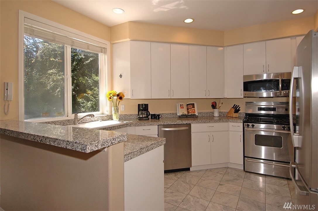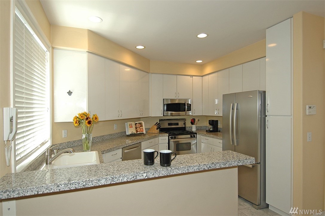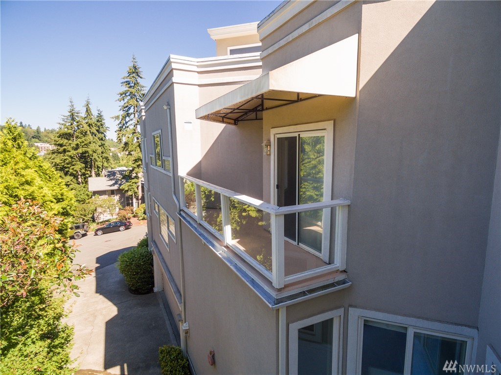 Desirable north Mercer Island Contemporary offers a remarkable townhome style condominium. An exceptional self-managed property among four units makes this a superior two-bedroom with quality finishes throughout. Featuring a spacious kitchen, gas cooktop, large balcony off Master, easy load in/out access, and a private deck. Additional bedroom with a second full bath & convenient laundry room. Two designated indoor garage parking spaces with storage, close to I-90 & future Light Rail. Rare.
