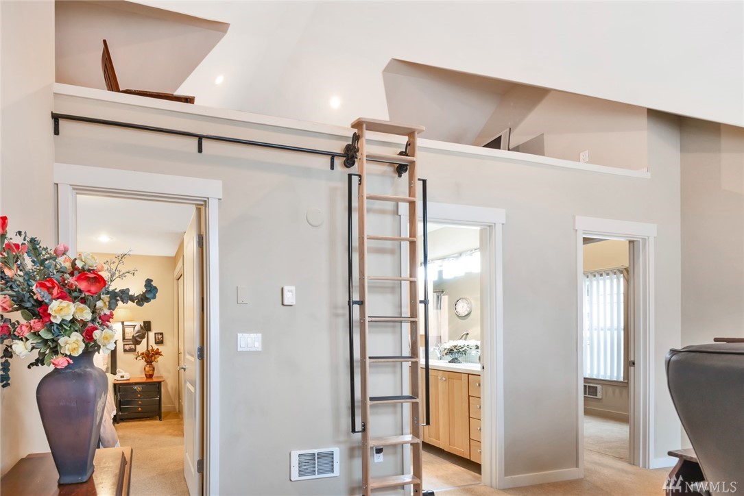 Gingerbread House! Well, almost. Super cute two story detached condo in Cottagewood complex. One carport prkg space and one uncovered right in front! Lovely patio with small yard. Elec. fireplace=feeling cozy. Good sized kitchen with breakfast bar. 2 Masters? Bedroom down with full bath down, upstairs larger master br. with Continental full bath. Another bedroom as well. There is a loft above the landing which makes a great place for homework, desks, etc. Loft is just fun extra room! Pkg 93 & 91