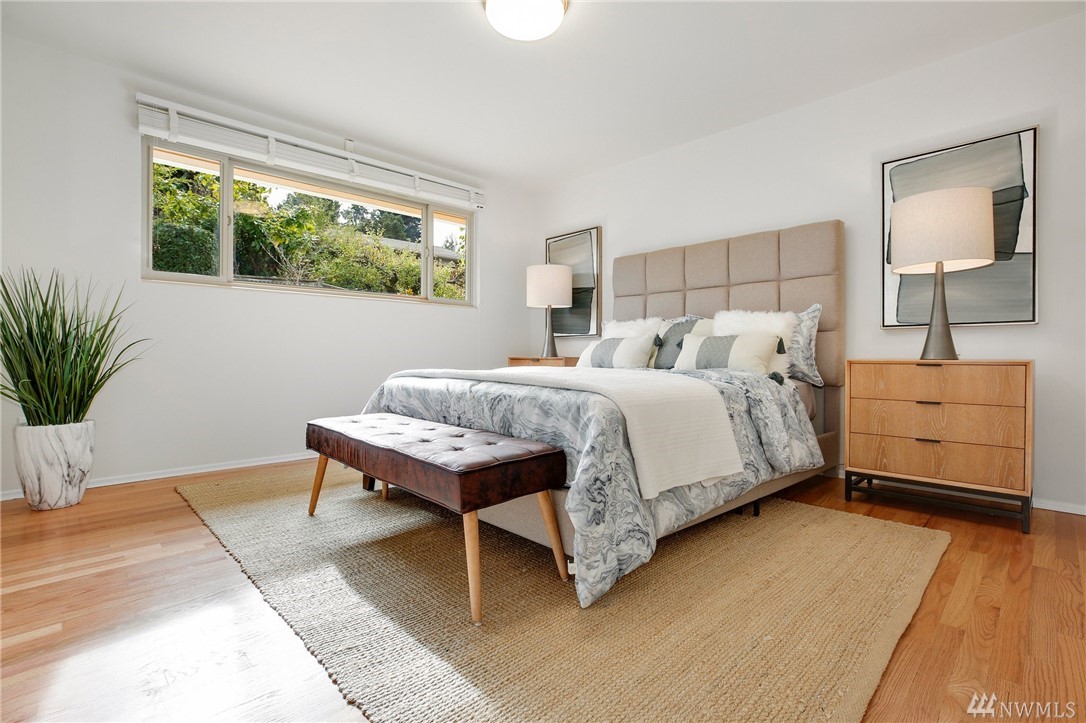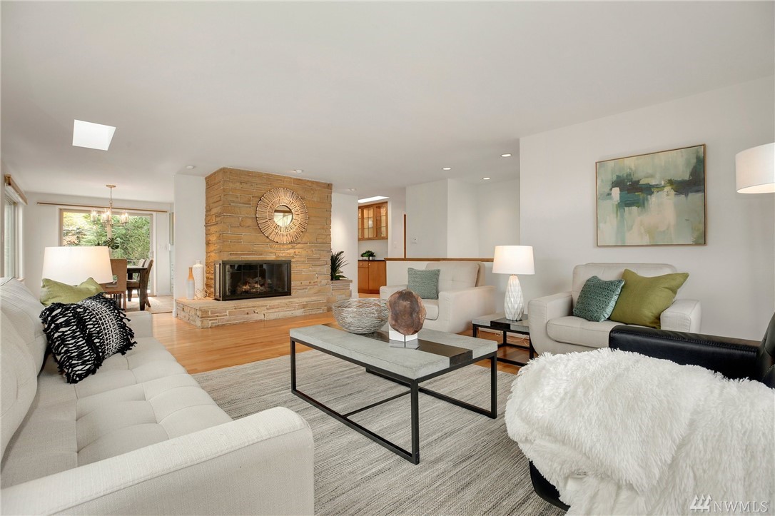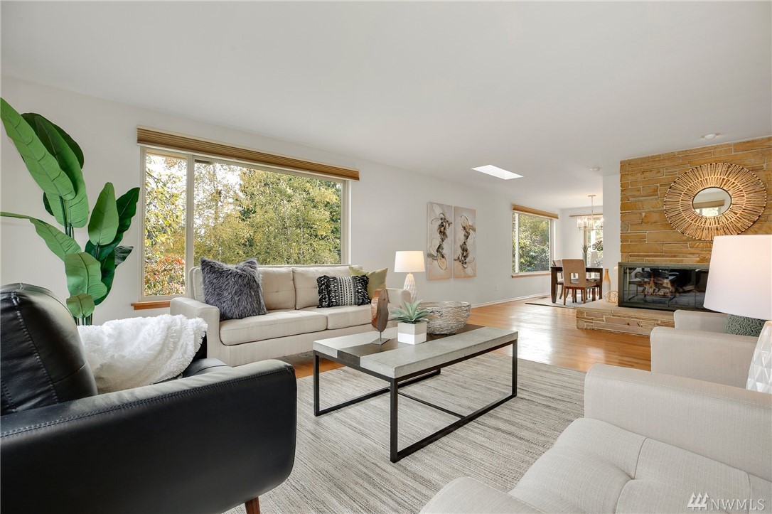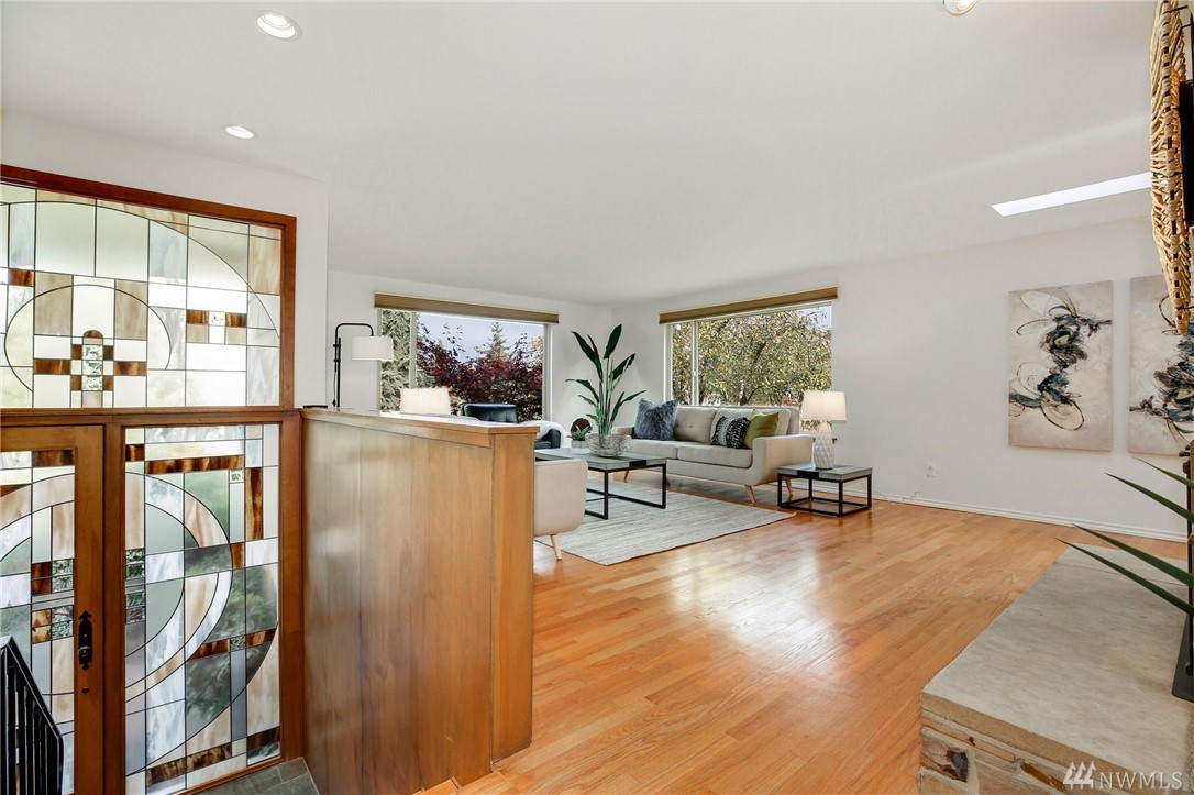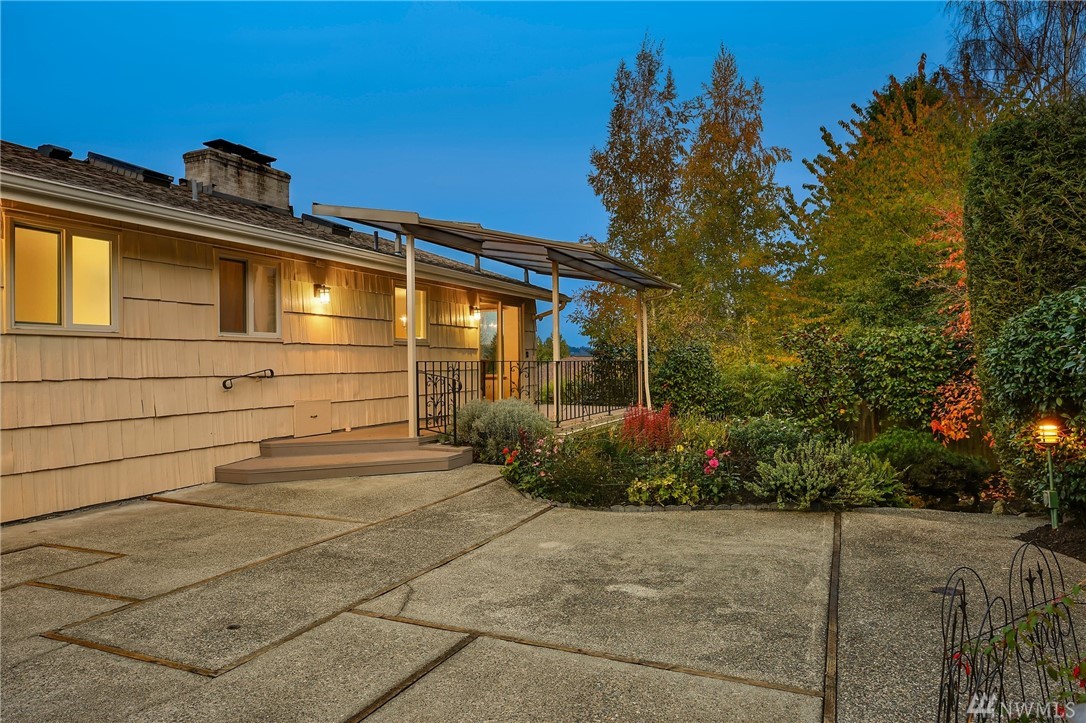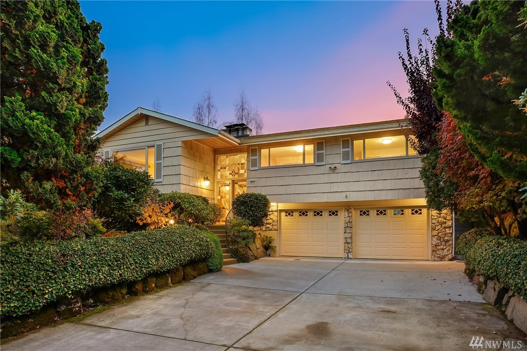 Stunning Alicia Park home on large private lot w/ lovely perennial landscaping + gardens. Mtn + territorial views in this spacious & bright mid-century home w/ stained glass entry, HW floors, skylights, wraparound gas fireplace, fresh paint, A/C, electronic air filter system. Newly refreshed kitchen & dining rm w/ att deck to patio in fenced backyard. Lower family rm w/ dbl gas fireplace, bdrm, laundry + bath. 2-car garage w/storage! Located near transport, Matthew's Beach, BG trail, UW + more!