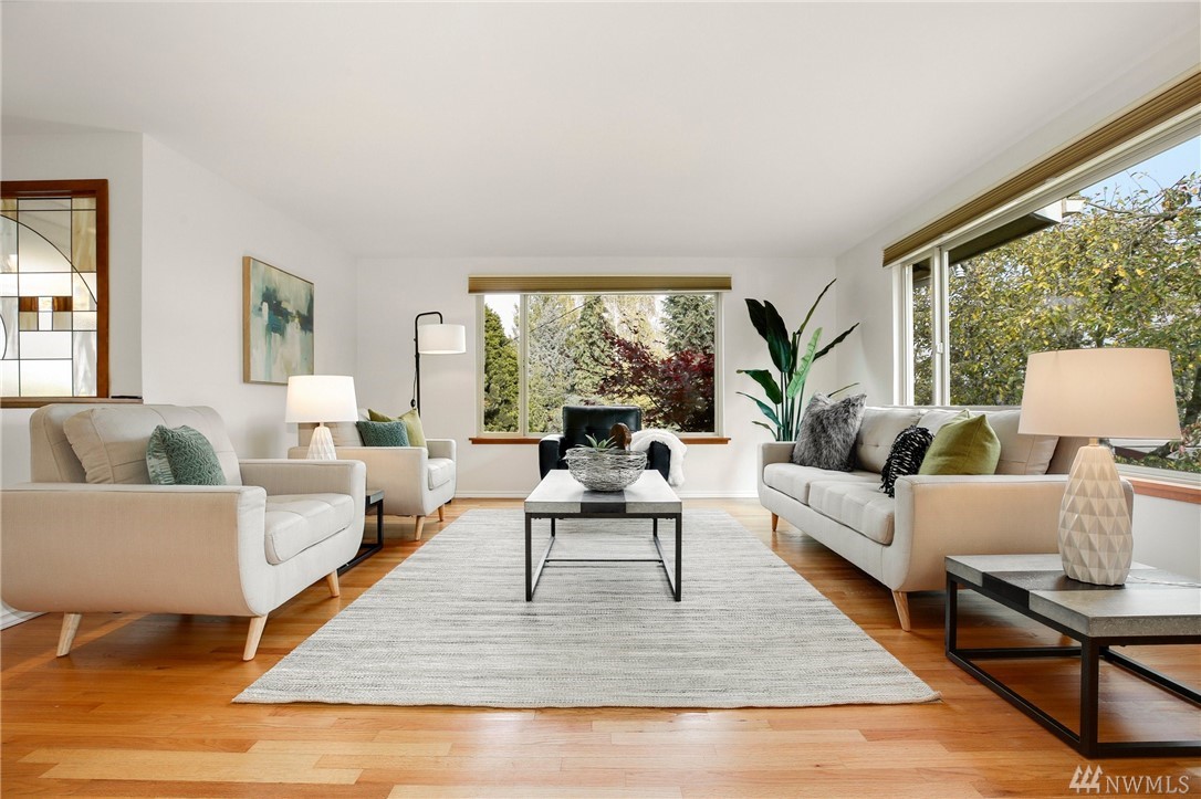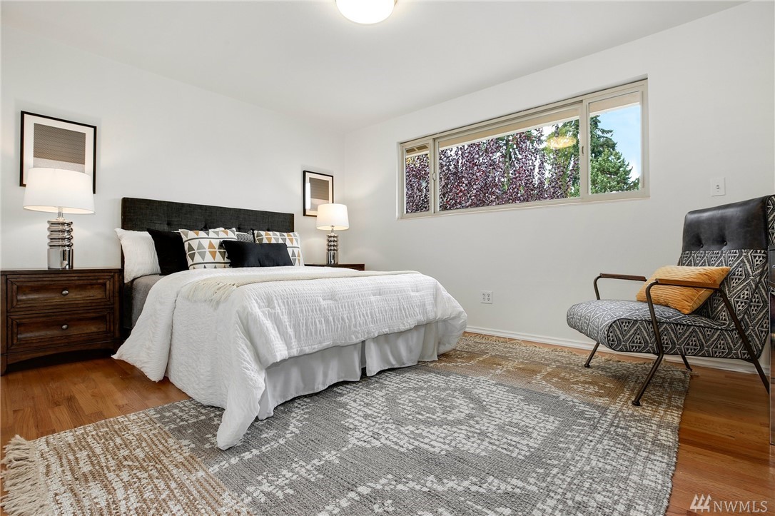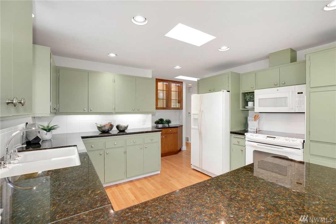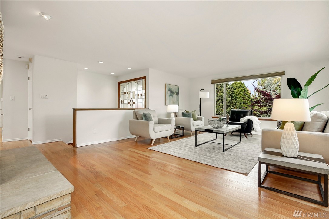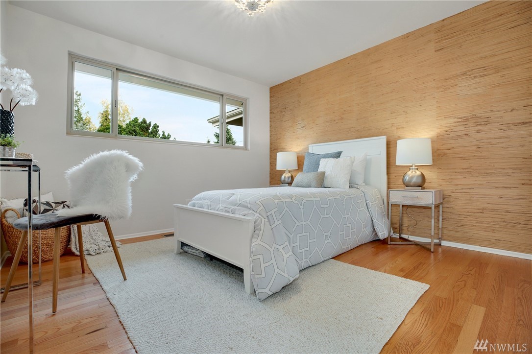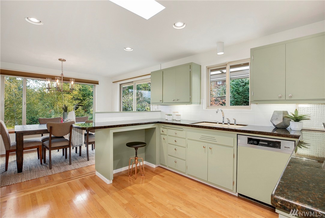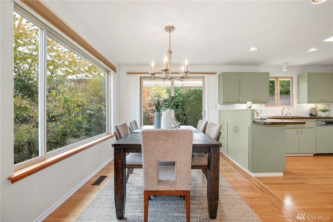 Stunning Alicia Park home on large private lot w/ lovely perennial landscaping + gardens. Mtn + territorial views in this spacious & bright mid-century home w/ stained glass entry, HW floors, skylights, wraparound gas fireplace, fresh paint, A/C, electronic air filter system. Newly refreshed kitchen & dining rm w/ att deck to patio in fenced backyard. Lower family rm w/ dbl gas fireplace, bdrm, laundry + bath. 2-car garage w/storage! Located near transport, Matthew's Beach, BG trail, UW + more!