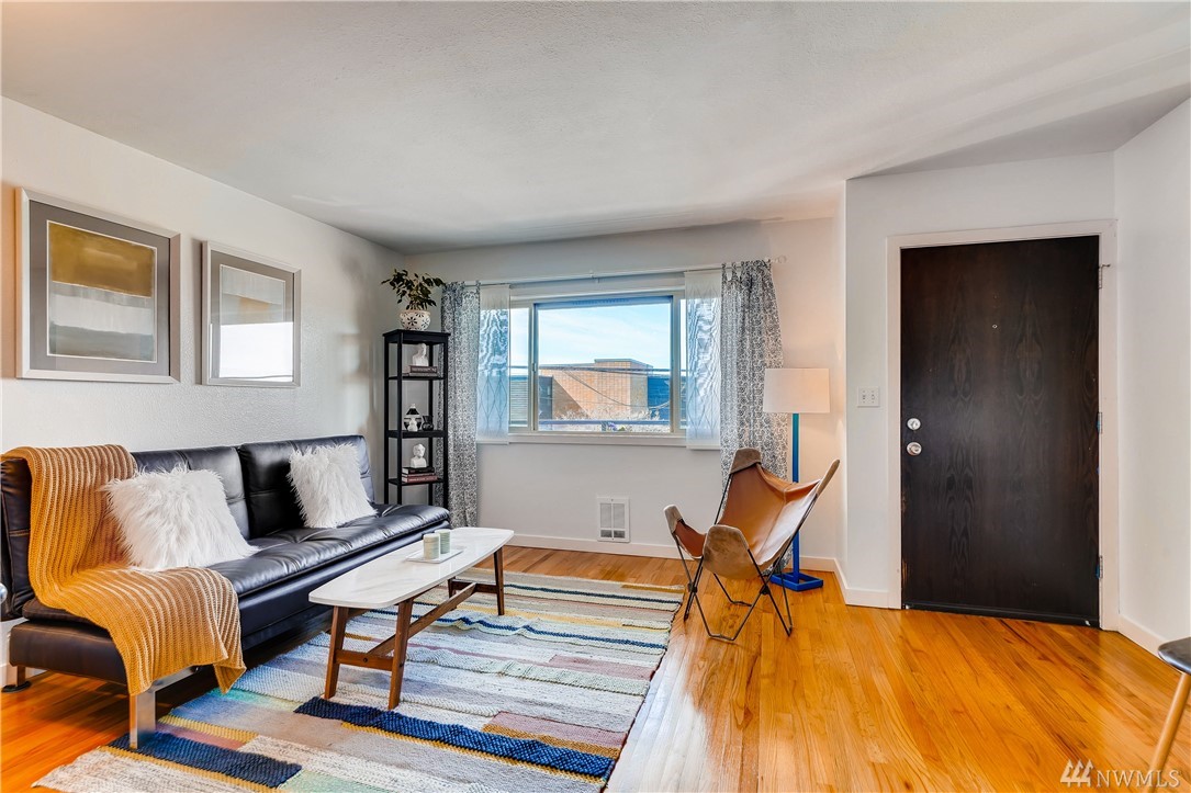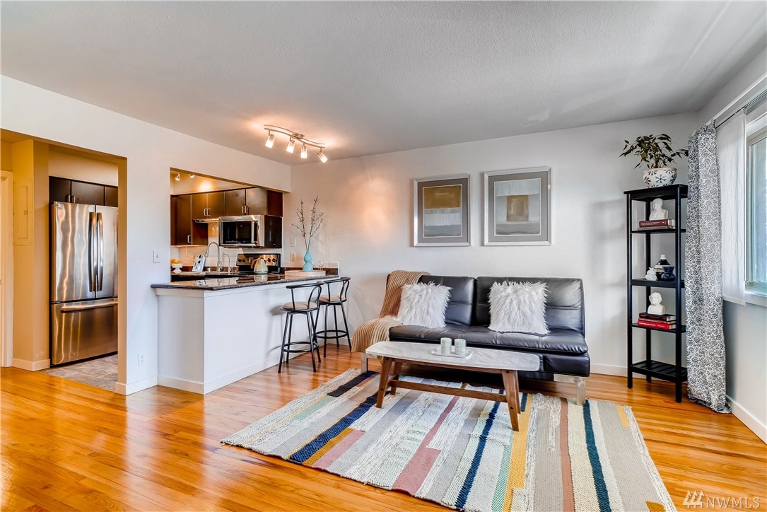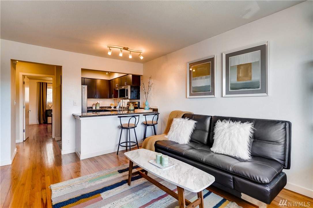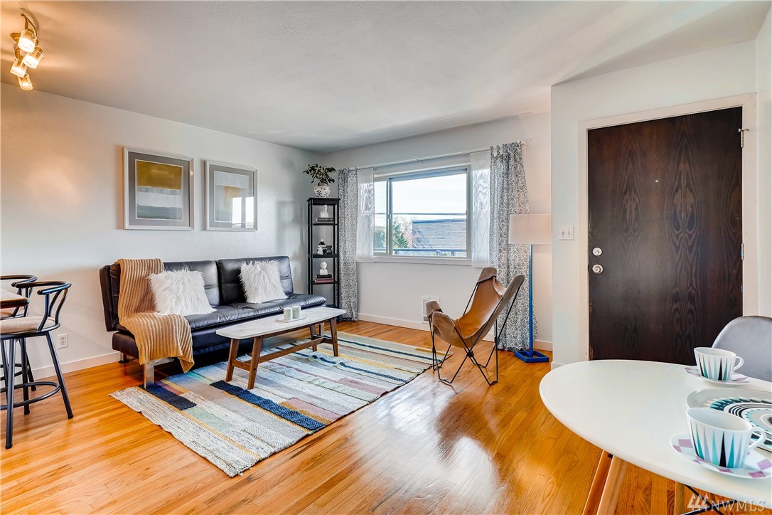 Perfectly located within minutes from all the WS hot spots, TOP FLOOR unit w/ upgrades galore. Have it all in the heart of Morgan Junction. Retro West Seattle building w/ Olympic Mountain and Sound views. Gorgeous natural light from skylights with gleaming easy clean hardwoods & West facing picture window for lots of natural light. In home full size W/D and a walk-in closet with tons of storage. With parking easily accessible right in front of the home. Now is the time to stop renting and buy.