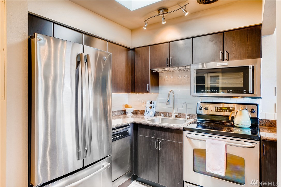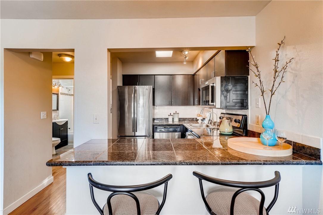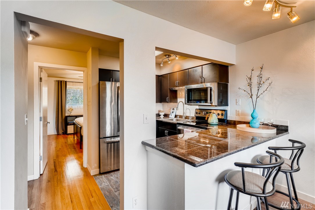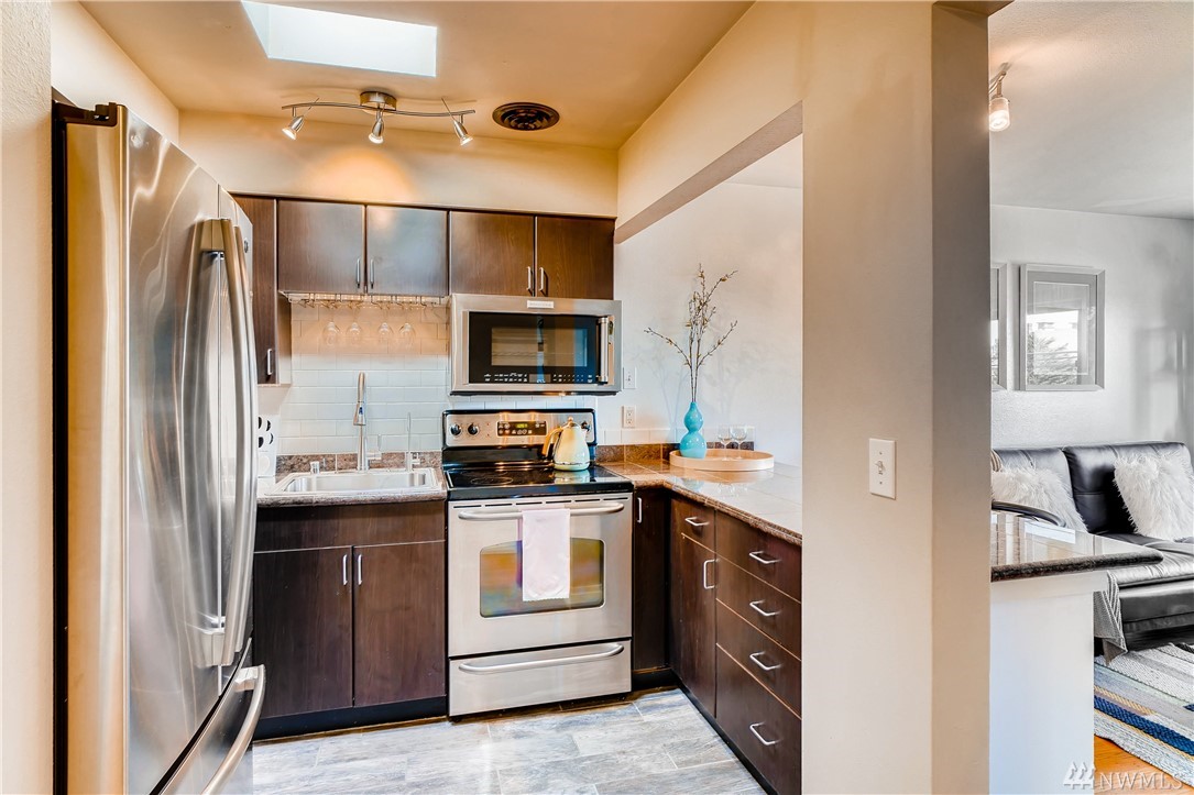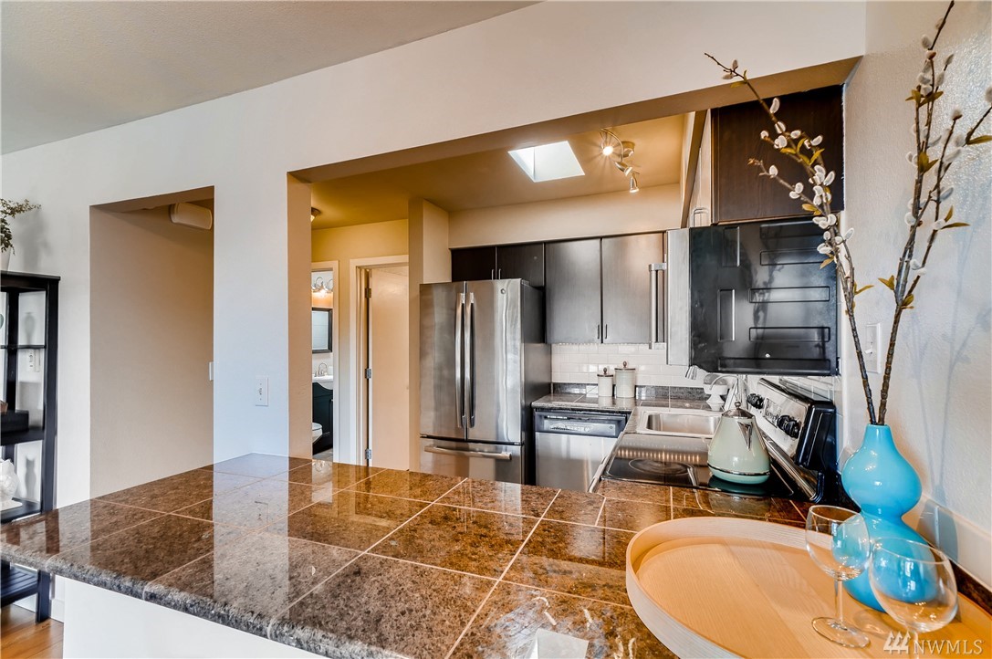 Perfectly located within minutes from all the WS hot spots, TOP FLOOR unit w/ upgrades galore. Have it all in the heart of Morgan Junction. Retro West Seattle building w/ Olympic Mountain and Sound views. Gorgeous natural light from skylights with gleaming easy clean hardwoods & West facing picture window for lots of natural light. In home full size W/D and a walk-in closet with tons of storage. With parking easily accessible right in front of the home. Now is the time to stop renting and buy.