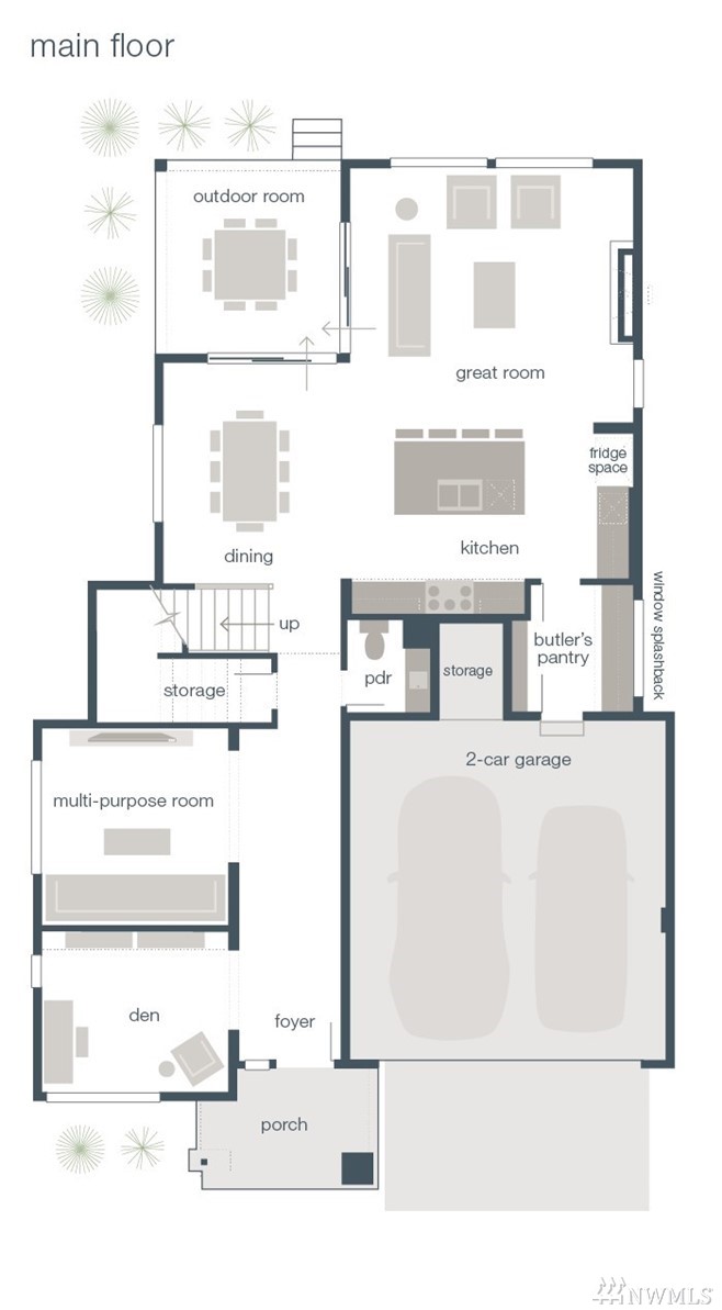 greeted by a Den and Multi-Purpose Room. The dining room is illuminated by a cage-style