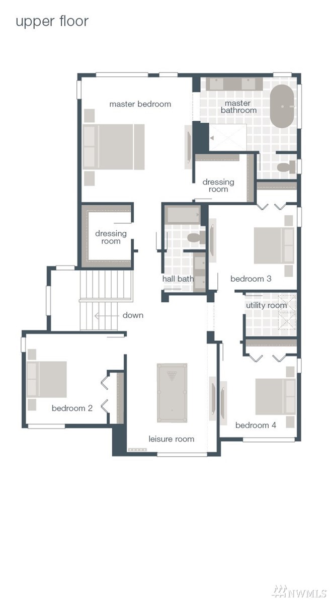 bedrooms and the master suite flush with a designer free-standing tub, dual vanities with quartz