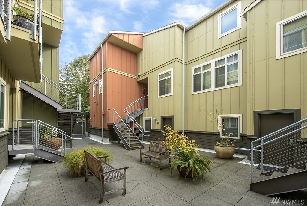 Fremont! Minutes to Downtown, ride your bike to South Lake Union, walk to all things Fremont, Ballard to the West, Wallingford to the East. I guess Fremont is the center of the Universe! It all starts from this one owner condominium. Impressive community of 12, built with an emphasis on quality to stand the test of time. This 2 level home sits up off the street providing privacy, abundant light and iconic views! Secure parking for 2 vehicles...Bonus! The benefits are many for you to enjoy.