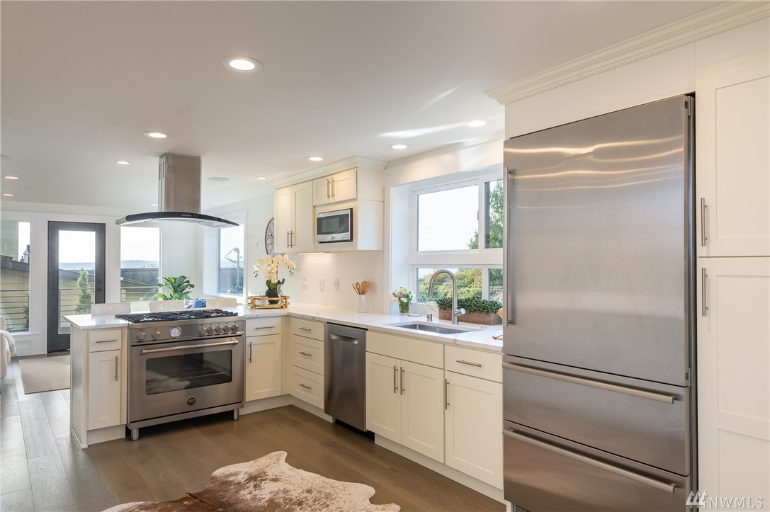 Exceptional Magnolia home. Captivating Puget Sound views. Superb studs-out renovation with exquisite modern finishes. Enjoy long evenings on your decks, overlooking gorgeous sunset hues year round. Contemporary designs offer function and luxury throughout, providing a peaceful retreat and ideal entertainment space. Five ample bedrooms, four baths, separate living area w/ second kitchen, generous driveway, vehicle charger. Distinctive features to please the most discerning buyer. A must see home!