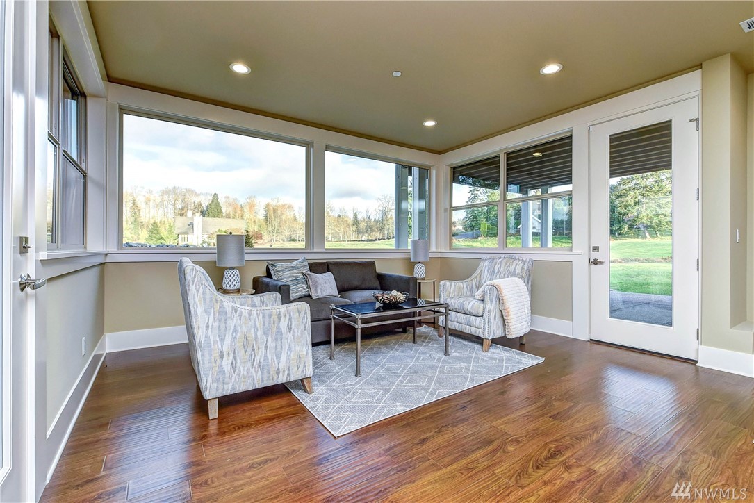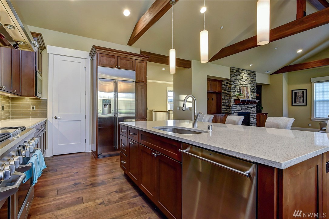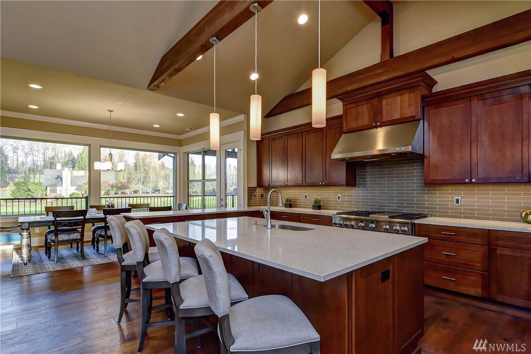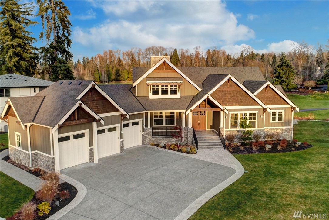 Newly Built Custom VIEW Home situated on Echo Falls Golf Course! Open & Spacious~MIL/2 different levels of living! Main floor boasts hand scraped hardwood flrs, Chef's kitchen w/slab island & eating bar, covered wrap-around deck w/built in BBQ. Master Retreat w/private deck, 5 piece ensuite, Dream WIC, large bdrm & full bath. Powder & 2nd laundry. Lower level has 2nd kitchen, 3 bdrms & laundry, 2 full ba. 3 Car Garage, 2 Covered Patios. Private Schools nearby, close to Bellevue/Seattle.