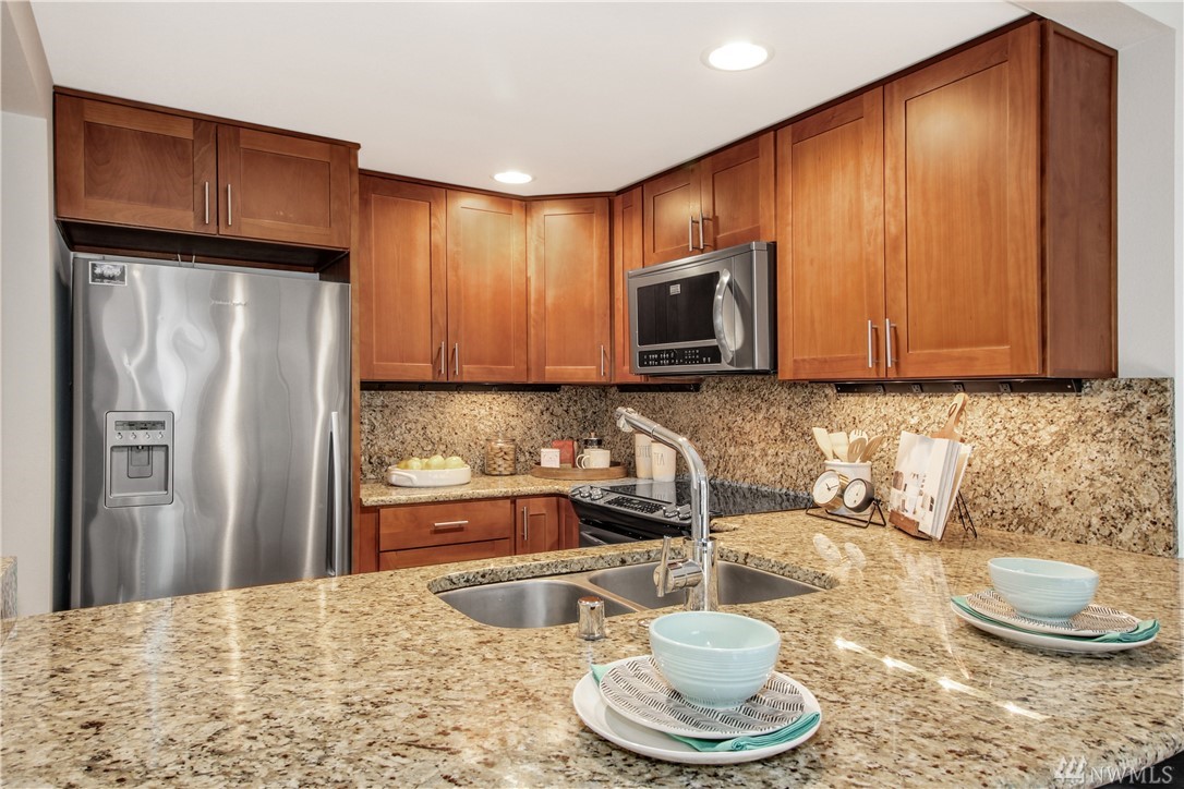 Located just off 156th in the heart of Crossroads.Urban yet private. Fantastic location with easy access to bus lines ( B line),a short stroll to a smorgasbord of restaurants, amenities, theaters, and minutes to MSFT and downtown. Ground floor unit with 2beds 2bath, patio with enclosed private yard off living room.Wood burning fireplace, stainless appliances, new carpet and pad, freshly painted interior and individual garage.(2 parking spaces total).Effective year built 2004. Updated in 2008