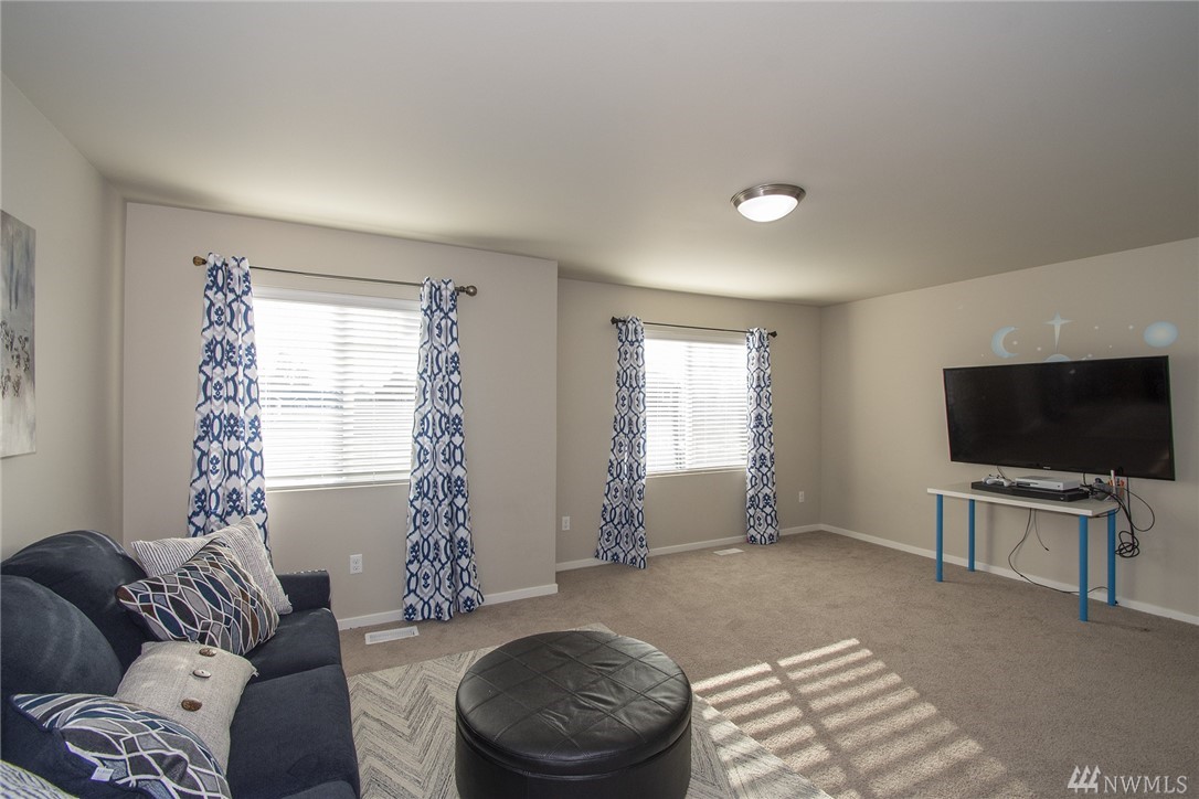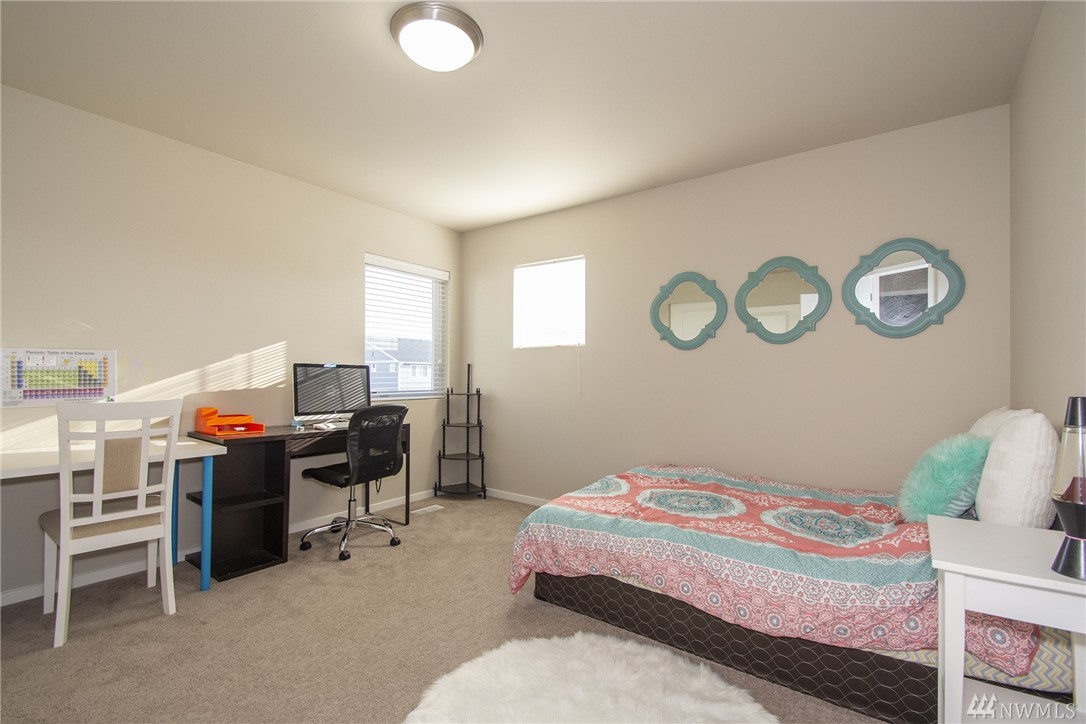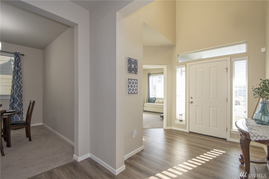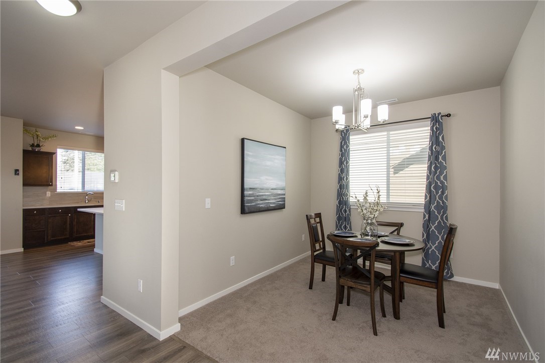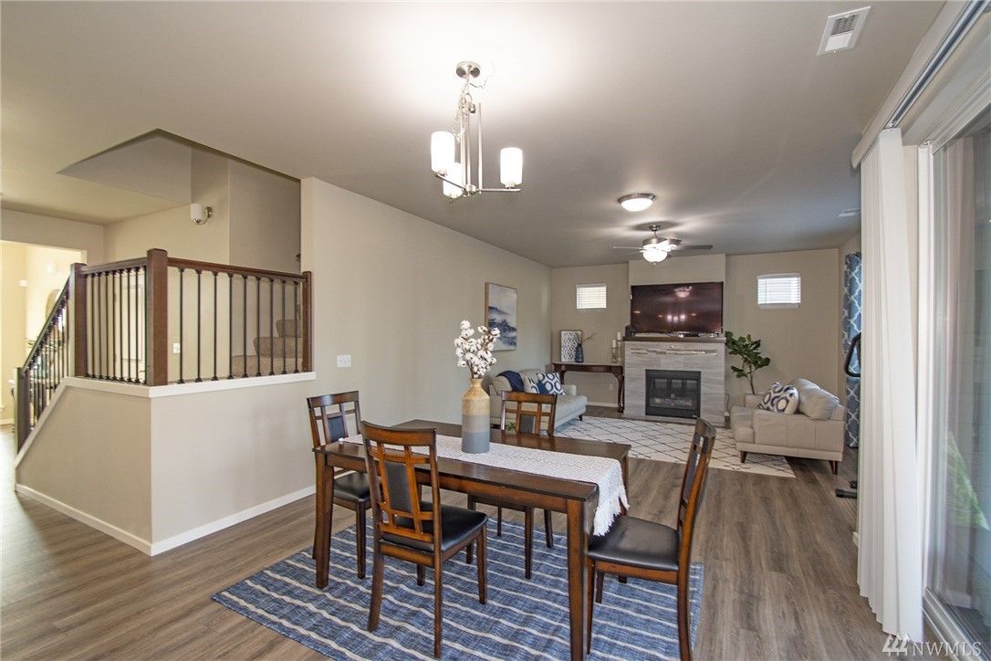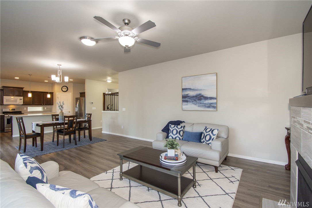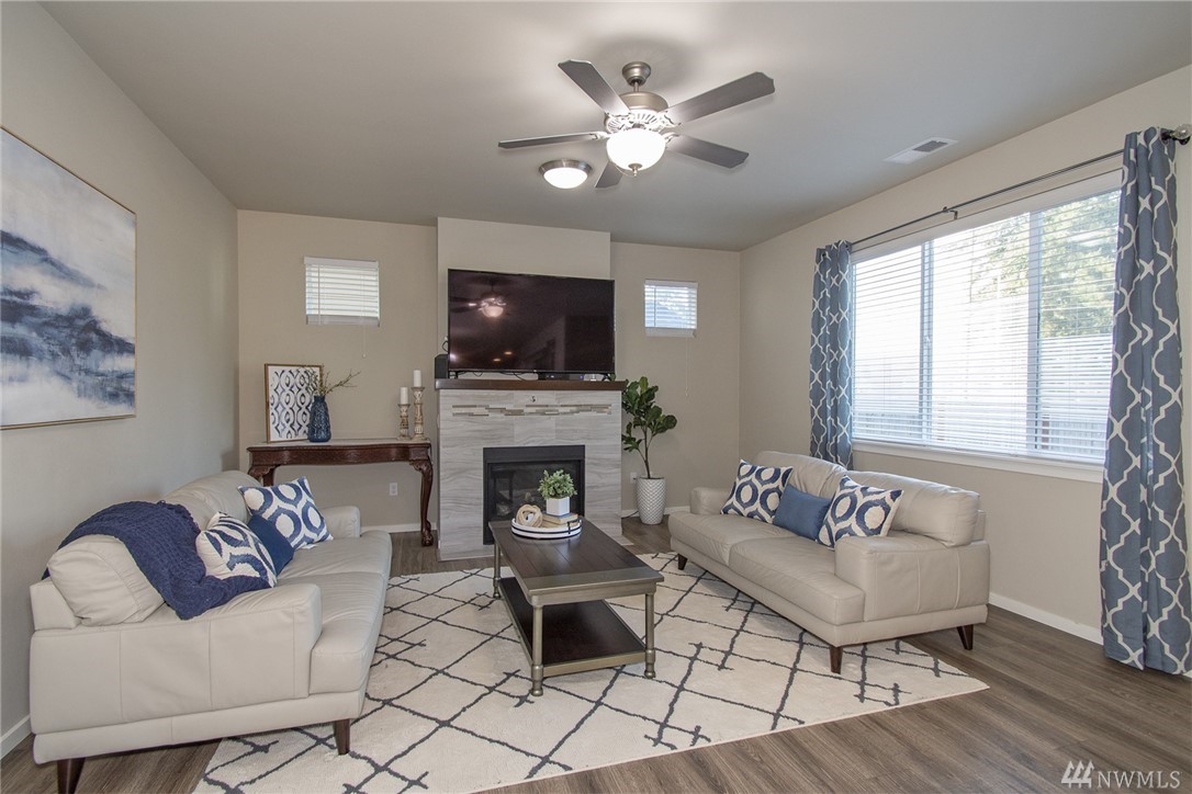 Gorgeous 4 bed 2.5 bath resale in newer Frederickson community! Walk in to find beautiful laminate hdwd flooring throughout main level. (scratch resistant!) Open concept family room w/eating area & spacious quartz countertop kitchen. Dining room, bedroom(or office)& 1/2 bath complete main level living. Upstairs leads you to master bed w/5 piece bath & walk in closet,2 additional bdrms,full bath,utility,& huge bonus room. 2 car garage,fenced yard, heat pump, close to shopping & JBLM. Won't last!