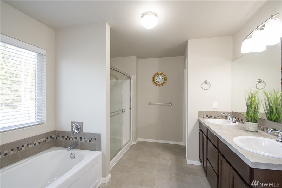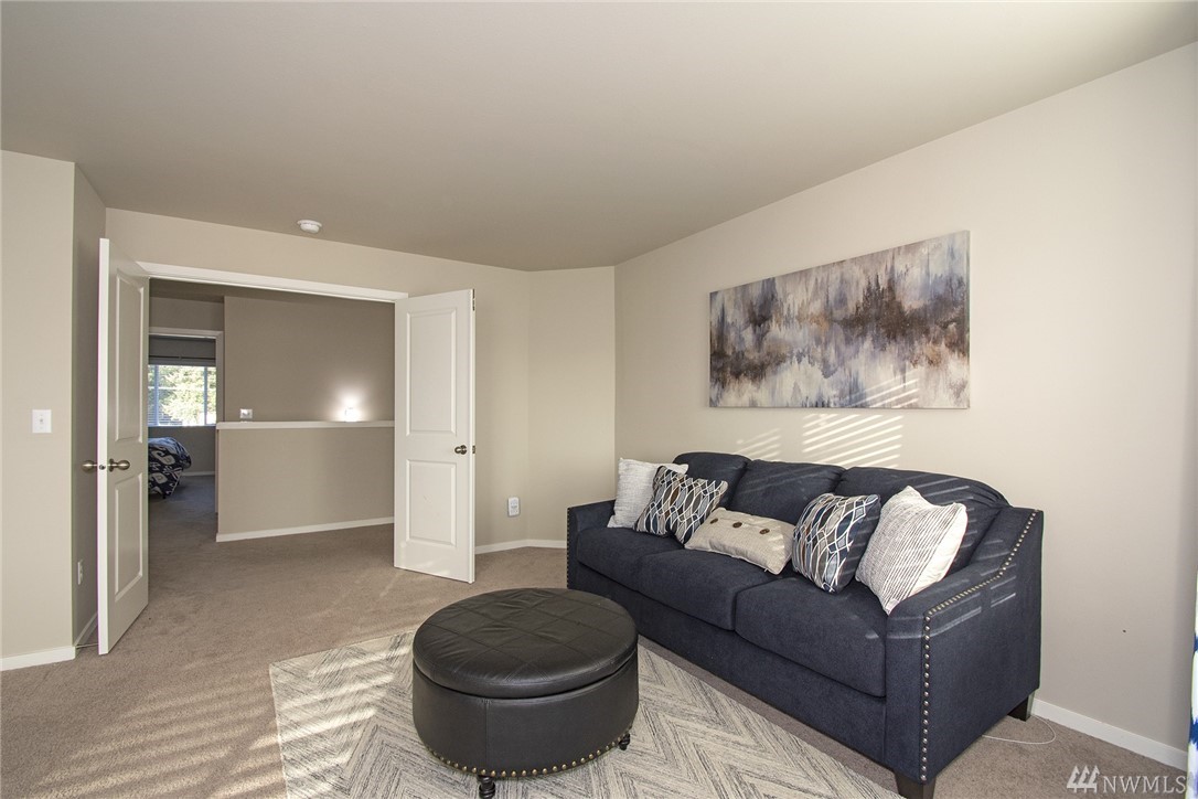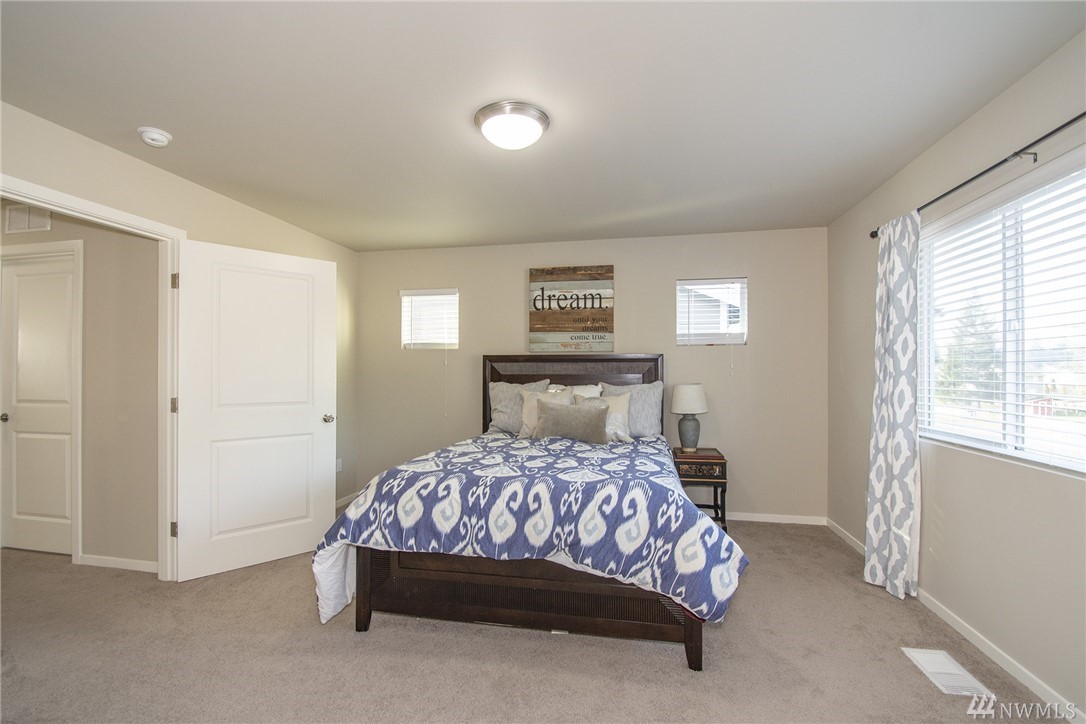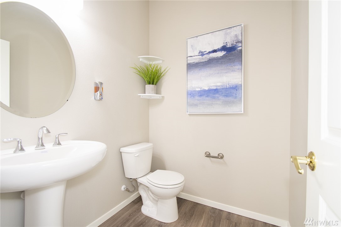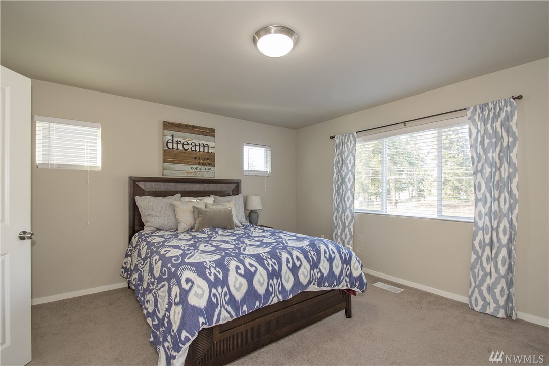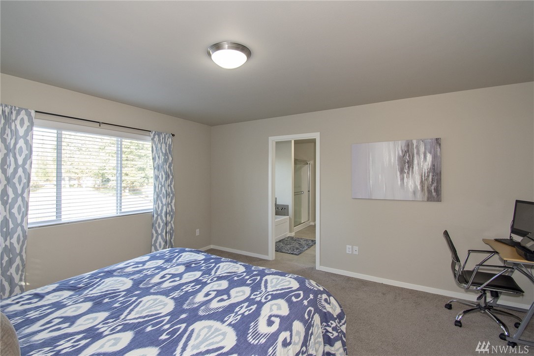 Gorgeous 4 bed 2.5 bath resale in newer Frederickson community! Walk in to find beautiful laminate hdwd flooring throughout main level. (scratch resistant!) Open concept family room w/eating area & spacious quartz countertop kitchen. Dining room, bedroom(or office)& 1/2 bath complete main level living. Upstairs leads you to master bed w/5 piece bath & walk in closet,2 additional bdrms,full bath,utility,& huge bonus room. 2 car garage,fenced yard, heat pump, close to shopping & JBLM. Won't last!