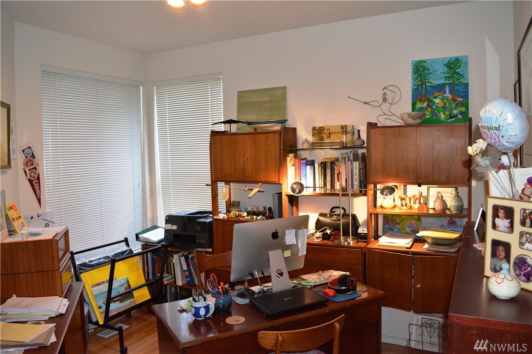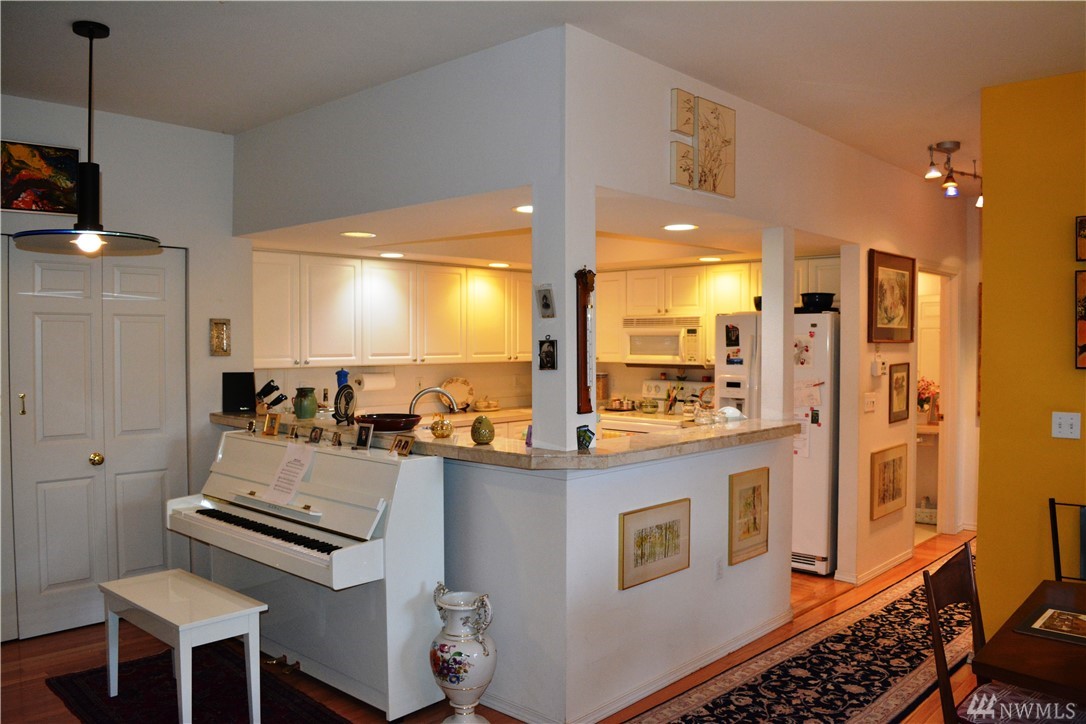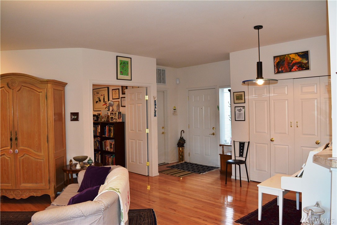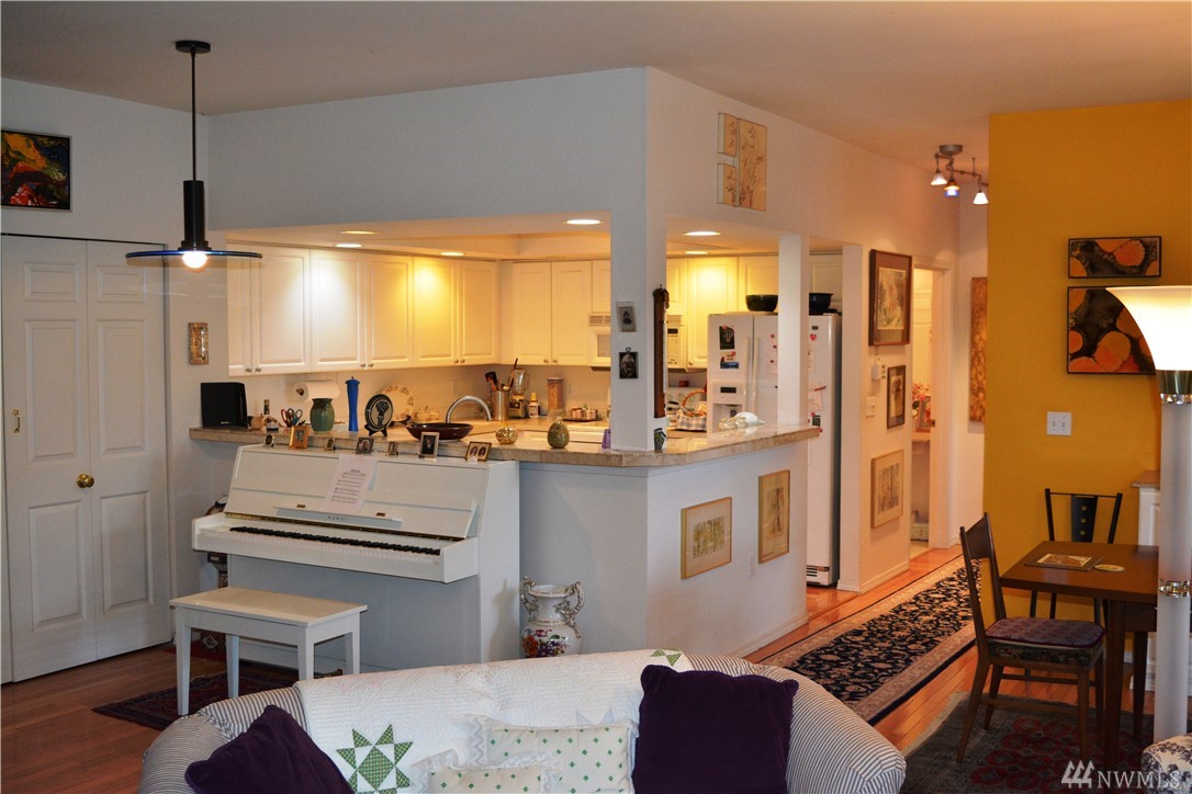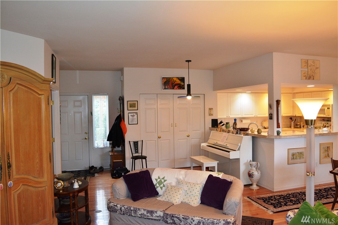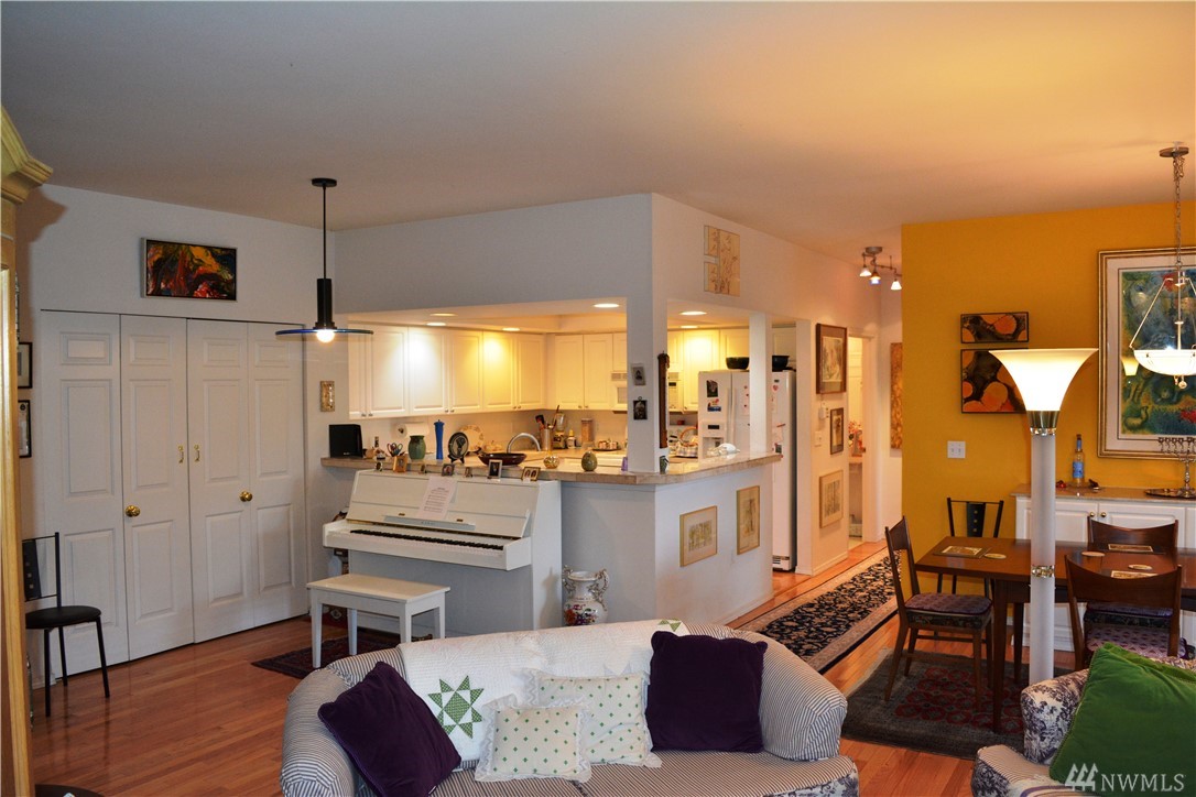 Bright and immaculate single level condo is located in a peaceful park like setting in desirable Fairhaven. Beautiful hardwood floors throughout, the oversize living room has a generous dining area & a cozy gas-log fireplace. Extra large Master Suite w/ 3/4 bath & walk-in closet. There's a 2nd BR & a full guest bath, an office/den, & a covered patio off the living room. Full size laundry & abundant closet storage place. South side schools, minutes to Fairhaven, Lake Padden, or WWU.
