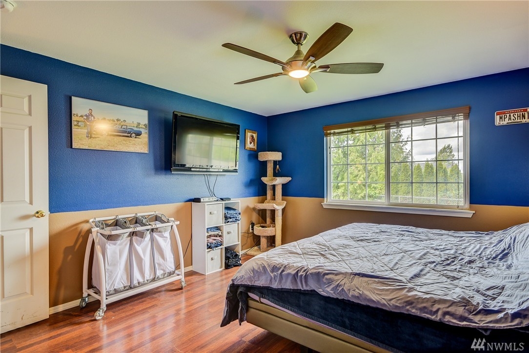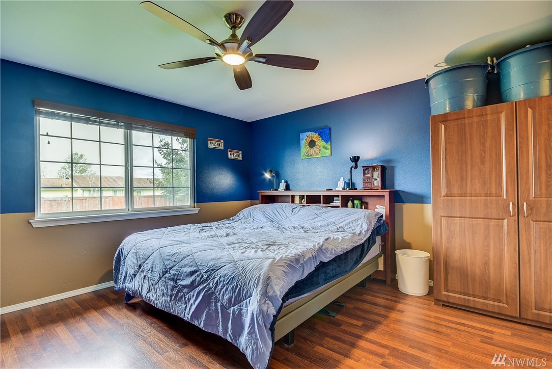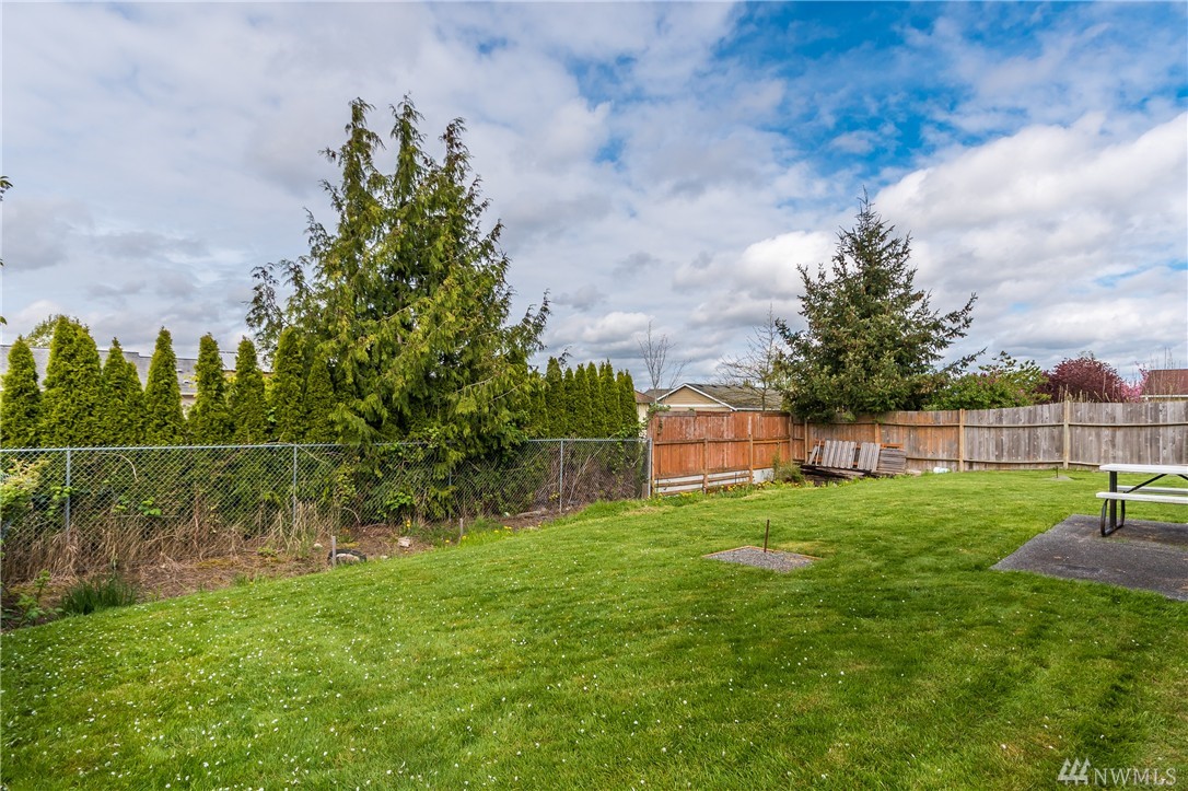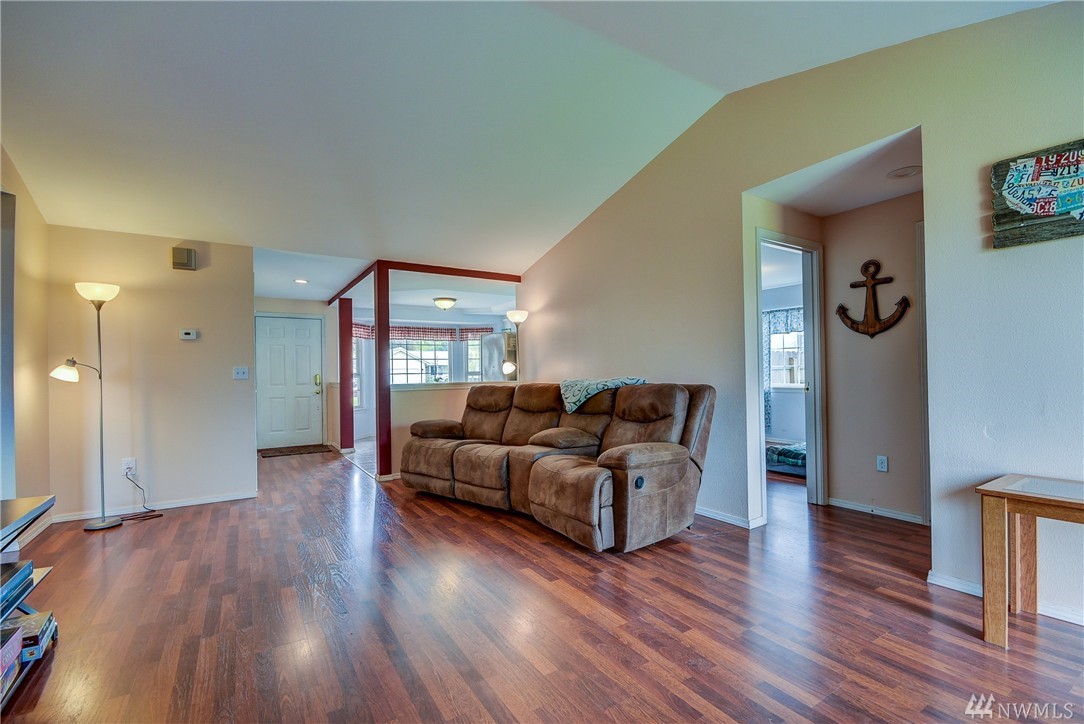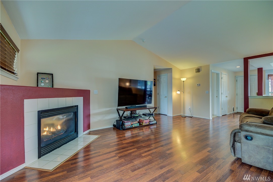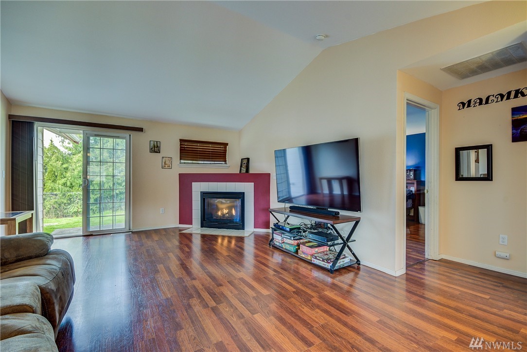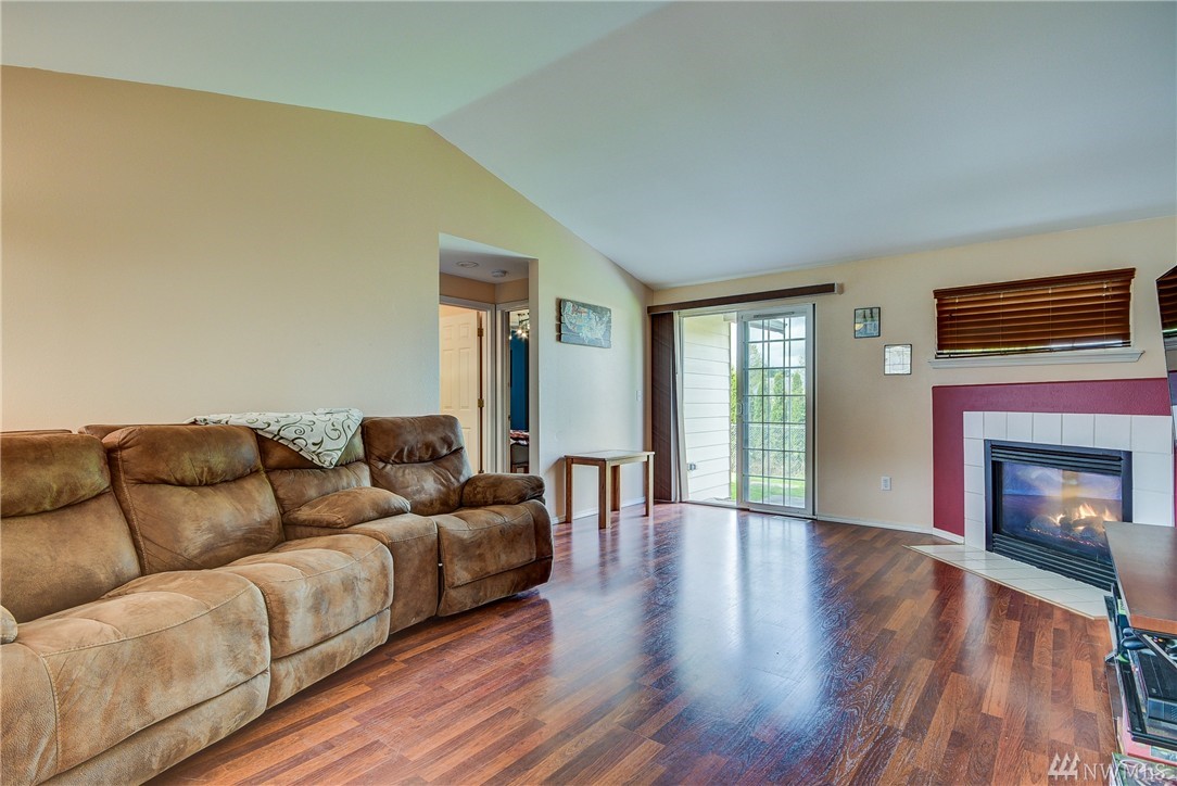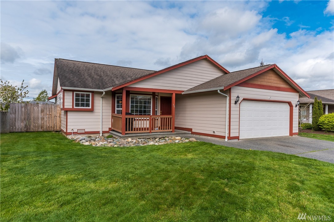 Lovely 3 bed, 2 bath rambler featuring open floor plan w/ vaulted ceilings, and lots of natural light. Recessed ceiling above light & bright kitchen & dining space with bay windows. Cozy gas fireplace warms the living space that leads you through its sliding glass doors to the large partially fenced back yard & patio space. Master bedroom and attached bath have plenty of room. Wood floors throughout the home. New hardiplank siding and paint was done in 2014. Large 2 car garage.