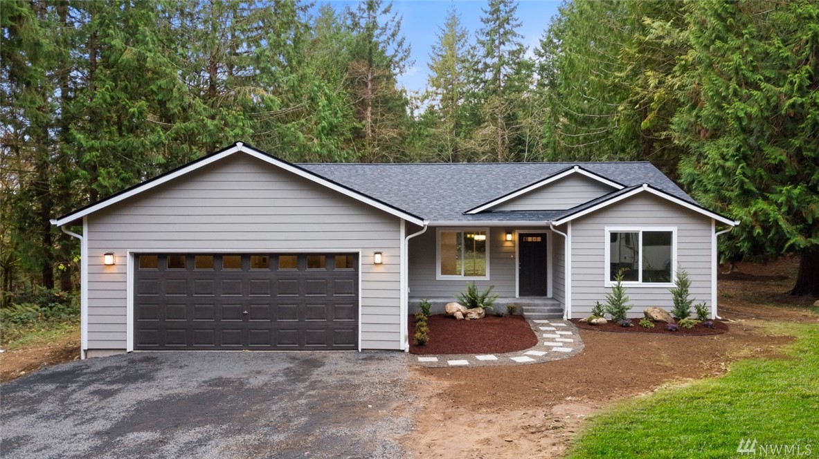 Serenity in Lakebay awaits! Newly constructed home w/the vaulted ceilings, open floor plan, large kitchen & granite counter-tops you've been looking for. Oh, the kitchen will be the focal talking point w/ample room to cook & entertain! Complete w/SS appliances, dark birch cabinetry w/crown molding, tile back-splash & skylights. Master suite holds large walk-in closet & 4 piece bathroom. See the beauty this home has on 4 acres w/opportunity to add an ADU/RV/Shop w/the 2 septics & power supplies!