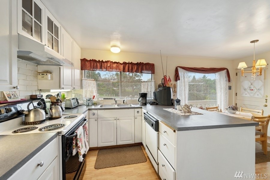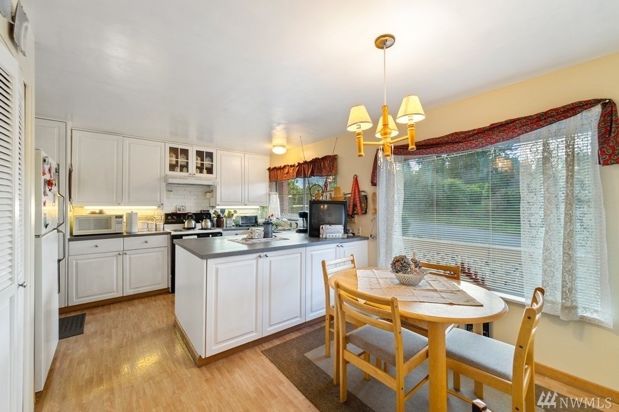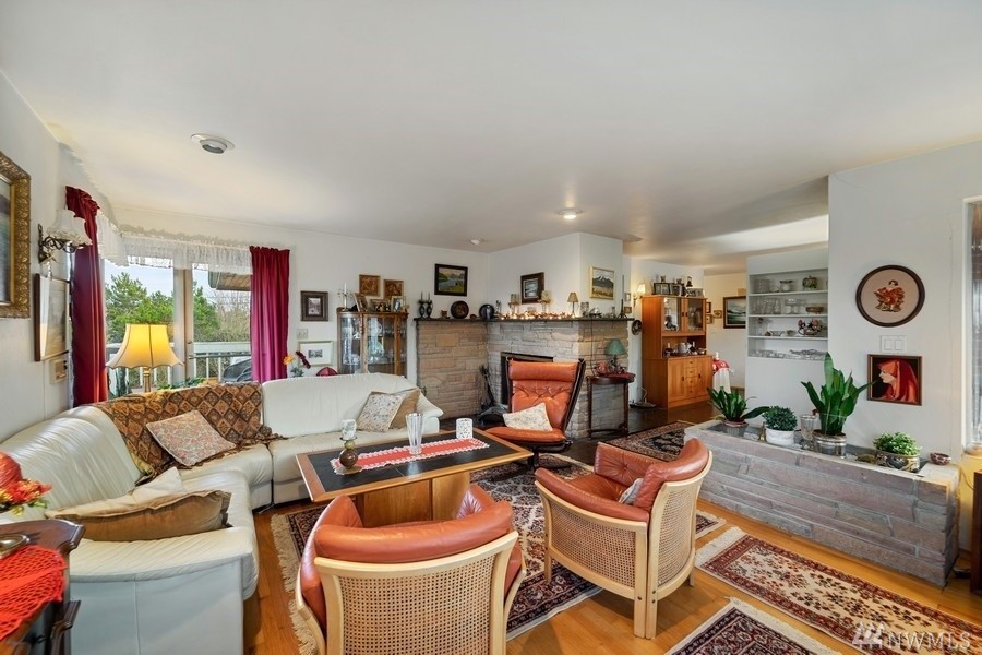 Charming home in a quiet neighborhood, enjoy living in the Blue Ridge bowl with walkability to Swanson's & QFC. This home offers great light with large windows and lots of privacy. 3 bedrooms and full bath complete the main level with kitchen and dining room. Enjoy cozy nights with your wood burning fireplaces and 2 decks. The above ground basement offers storage, utility rooms, bedroom and a show stopping fireplace. Your private backyard is fully fenced & has plenty of room for entertaining.