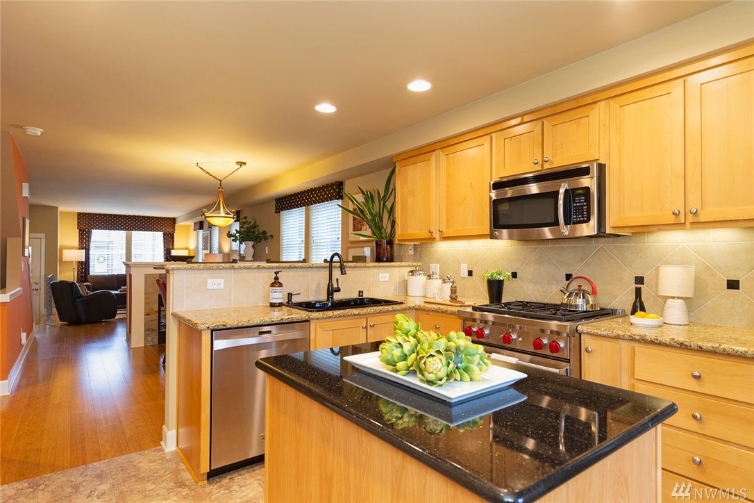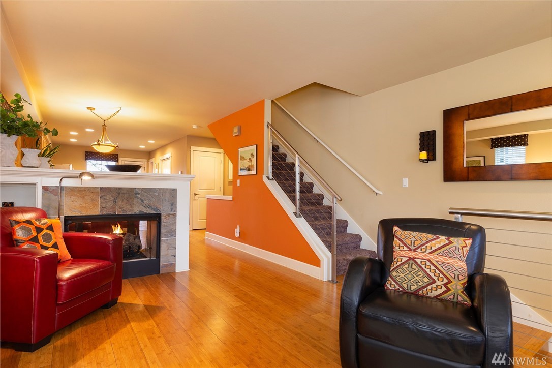 Meticulously maintained end unit w/ $60K upgrades & improvements Open concept main floor w/ living & dining rooms divided by double-sided gas fireplace. Wolf range, SS appliances, slab granite island in kitchen. Upper level features cathedral ceilings, master suite & 2nd bedroom, full bath, office & laundry room. Territorial views from the balcony & second floor. Garage is fully finished w/ bonus room(not in Sq Ft) Central A/C Close to Alaska Junction, restaurants, Alki, Vashon ferry & downtown.
