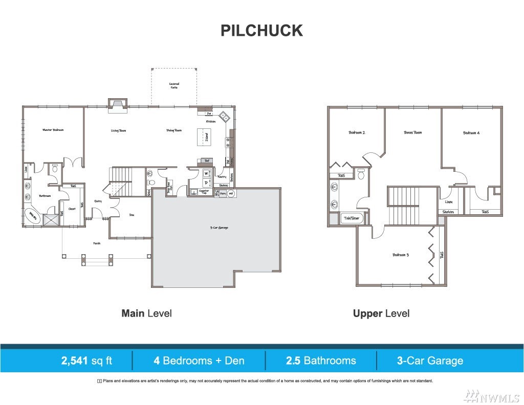 Welcome to the Pilchuck! Our 2541 sq ft plan features a welcoming front porch, 4 beds + Den & 2.5 baths. Spacious Master suite is on the main with spa inspired bath & lg WIC. The heart of the home - dream kitchen with island & lg pantry opens to the Dining & Living rm. Covered outdoor living area off the DR is perfect for entertaining. All 3 bedrooms upstairs are generous in size to include closet space, full bath, & the coveted linen closet! Stop by Stilly Heights & make this your new home.