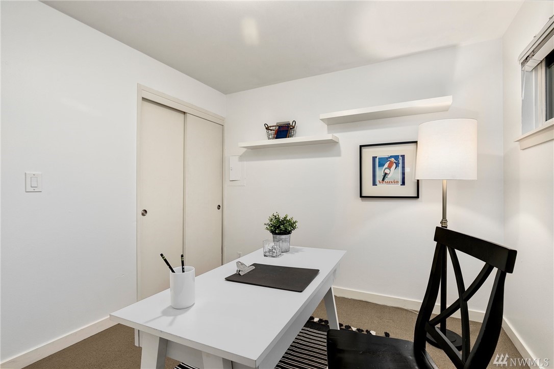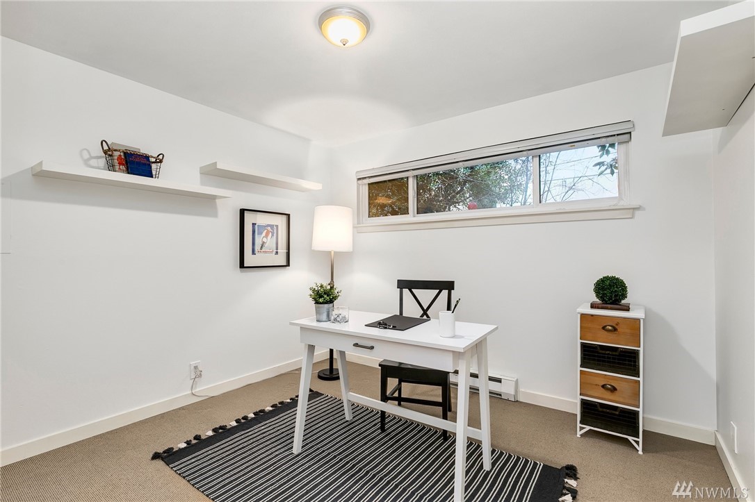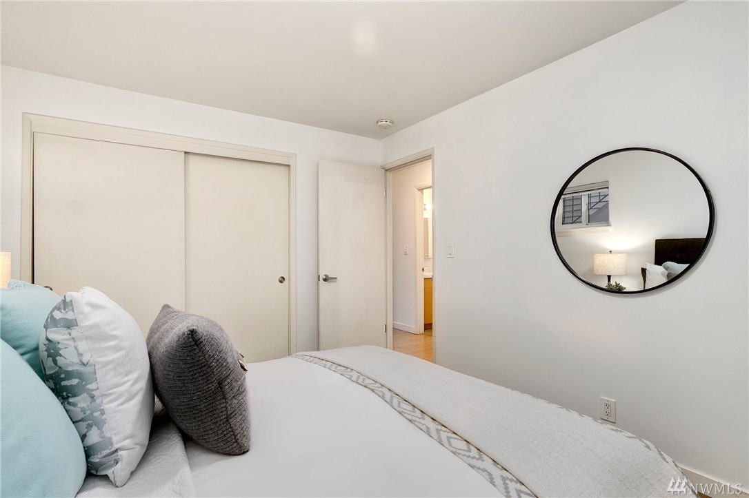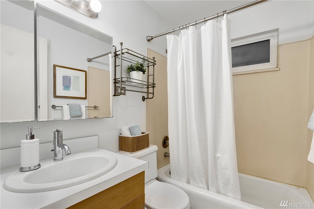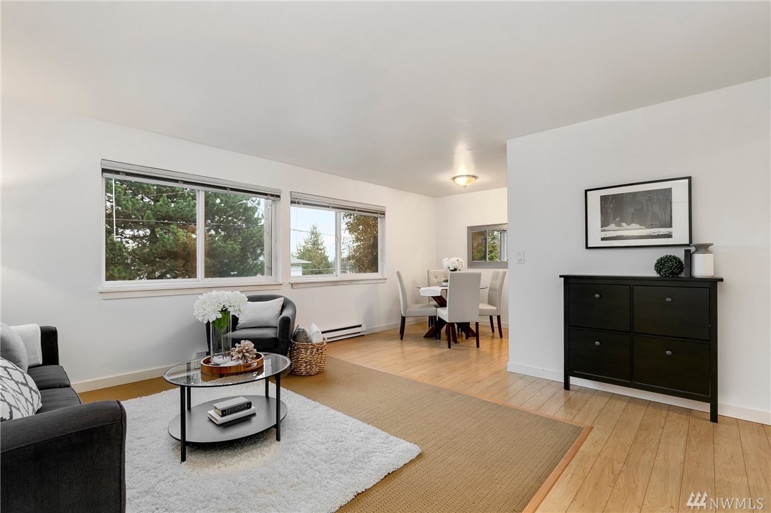 Rare opportunity at Sage Condos: top-floor 2-bedroom unit in ideal location on the cusp of Fremont + Wallingford near shops, restaurants, parks, public transportation + easy commute to downtown, BG trail, SLU & UW. Spacious living room with large windows flows into dining room and kitchen. This move-in ready unit boasts freshly painted interior, new water heater, in-unit laundry hookups + free shared laundry room. Convenient dedicated parking spot right out front. Well-managed HOA with low dues!