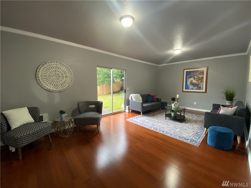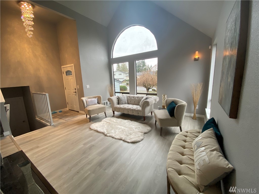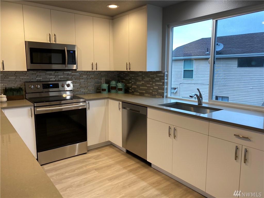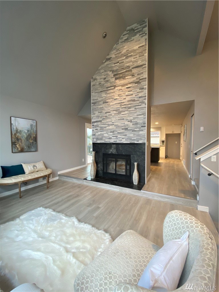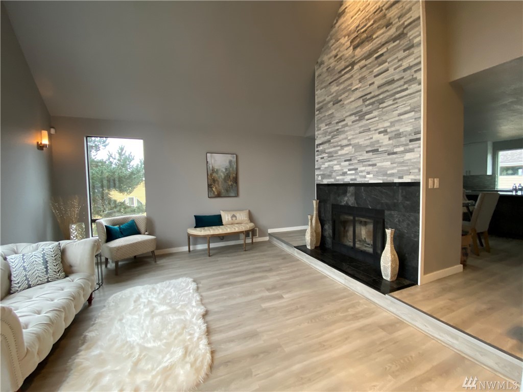 Welcome home to this modernized estate in Kent East Hill. Completely remodeled 3 spacious bdrms, 2 w/ walk-in closest. 2 beautifully upgraded baths, plus extremely functional 1/2 bath in garage, equipped w/ shower capabilities. Fresh interior & exterior paint, elegant finishes, dimming chandelier, custom stack stone fireplace, new flooring throughout, sleek upgraded kitchen w/ tile backsplash, quartz countertops, soft close cabinets, extended island, SS appliances with adjoining dining area.