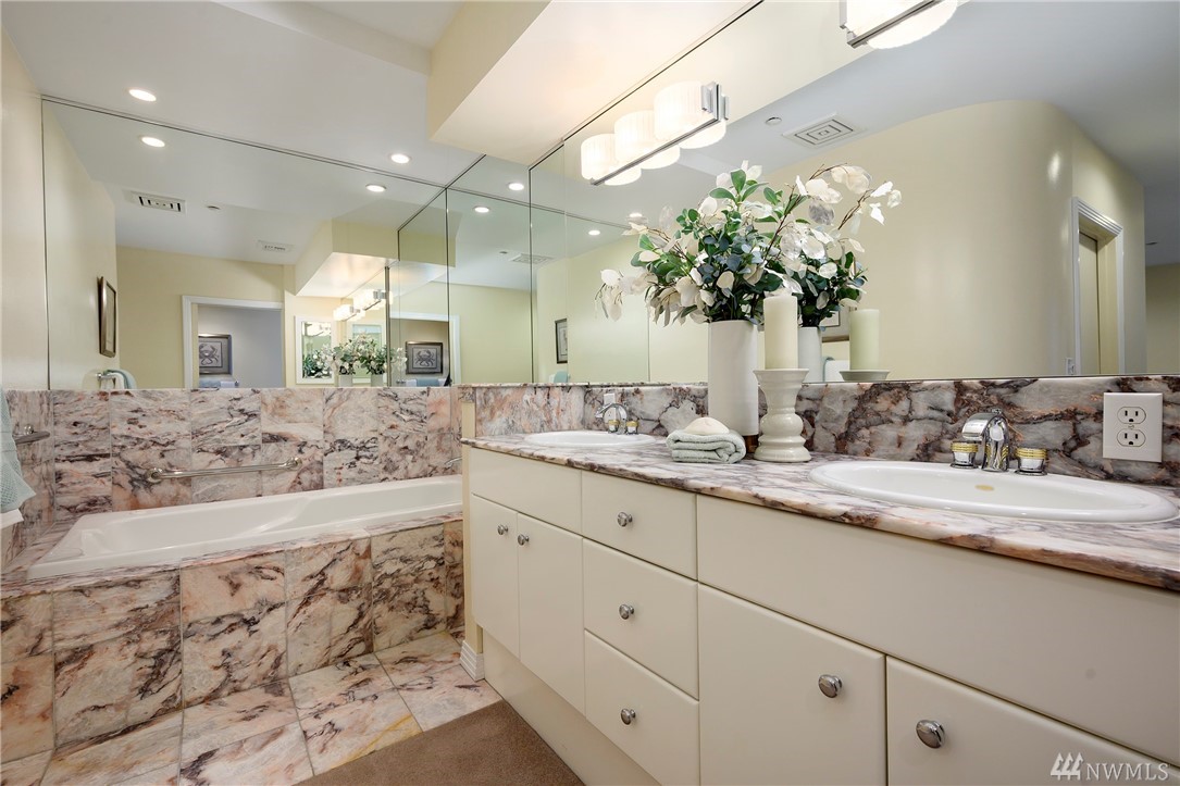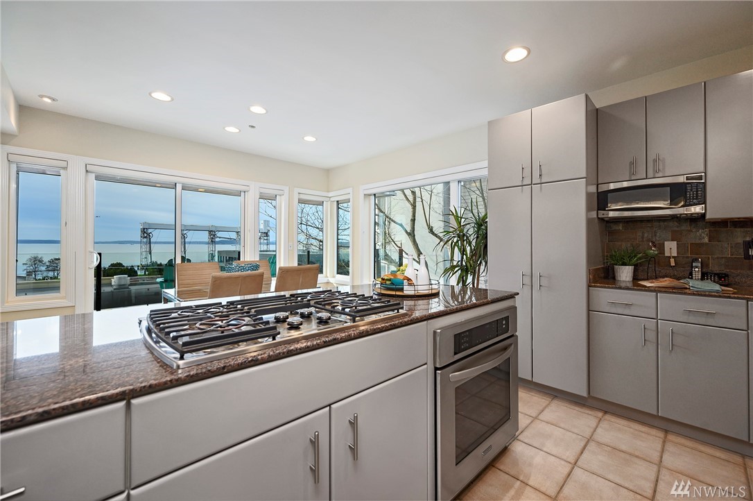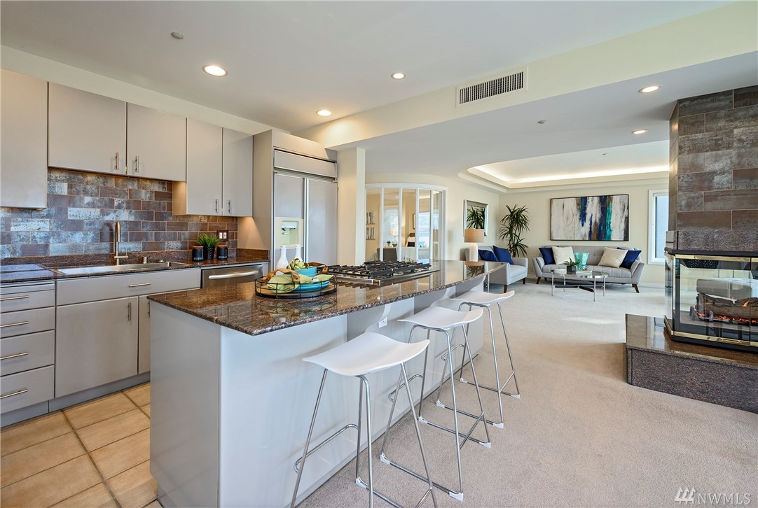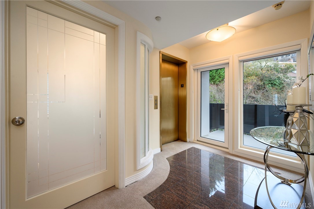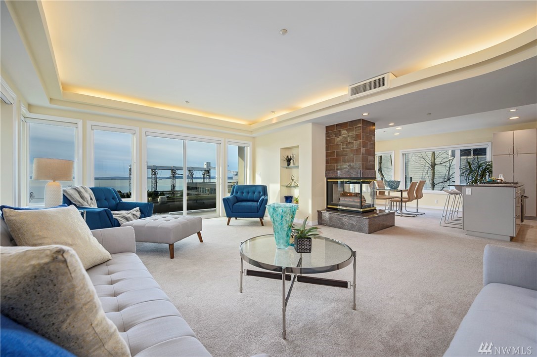 Enjoy protected Elliott Bay, Puget Sound & mountain views from this one-of-a-kind elegant, boutique condo with 2 bedrooms, 2 baths, den/office & wide open floor plan. Updated kitchen has stainless appliances & granite. Master suite has views, walk in closet, jetted spa tub & glass shower. It’s like a single family residence: elevator entrance direct to your full-floor unit, large decks on two sides & 2 car secure garage parking. Walking distance to shops, restaurants, sports & performing arts.