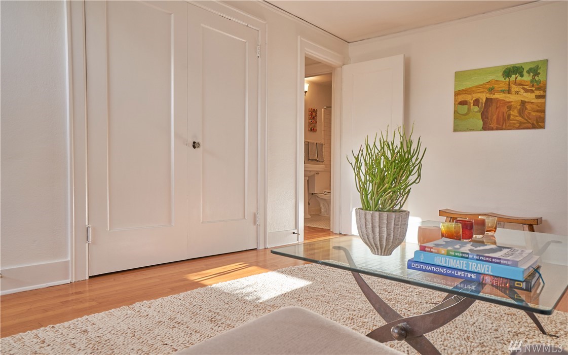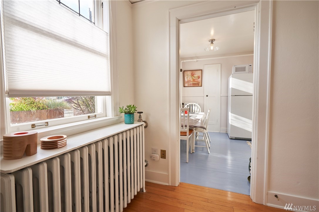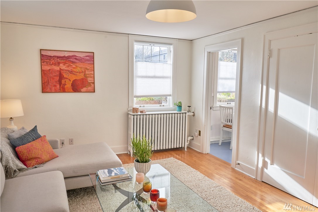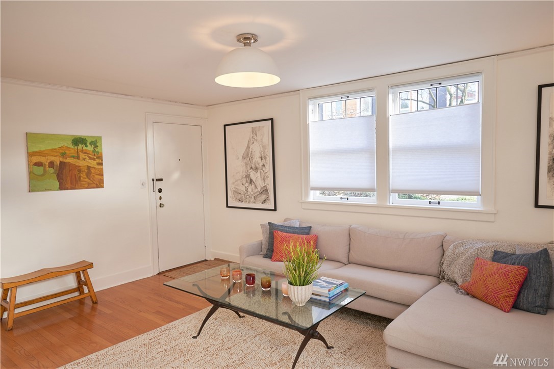 Fremont Gem! Classic style 1 bedroom condo with tons of Old World Charm! Spacious, light filled floor plan, gleaming hardwoods, leaded glass windows, kitchen with eating space, large bedroom & storage unit. End unit with no shared walls. Well cared for building. Beautiful landscaping includes garden patio for outdoor relaxing, dining & BBQ. Prime Fremont Location! Centrally located, easy access to downtown. Minutes to Green Lake. Steps to great restaurants, groceries, shops & bus. No rental cap.