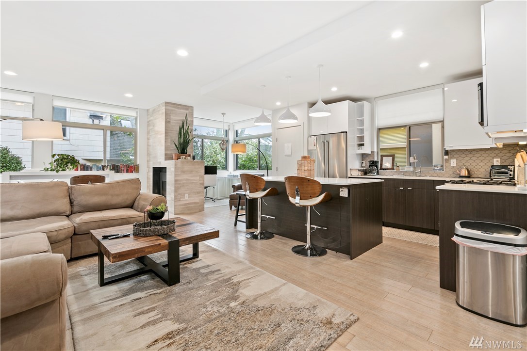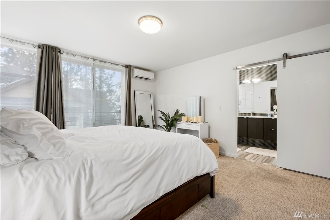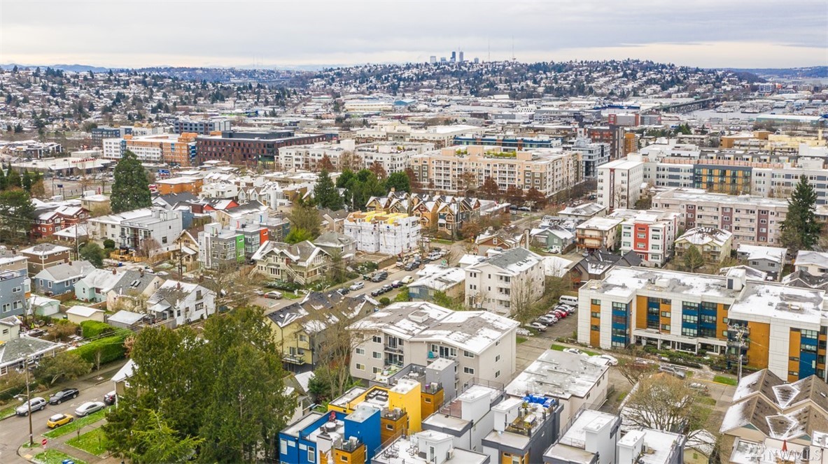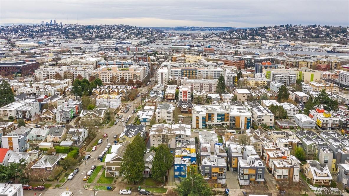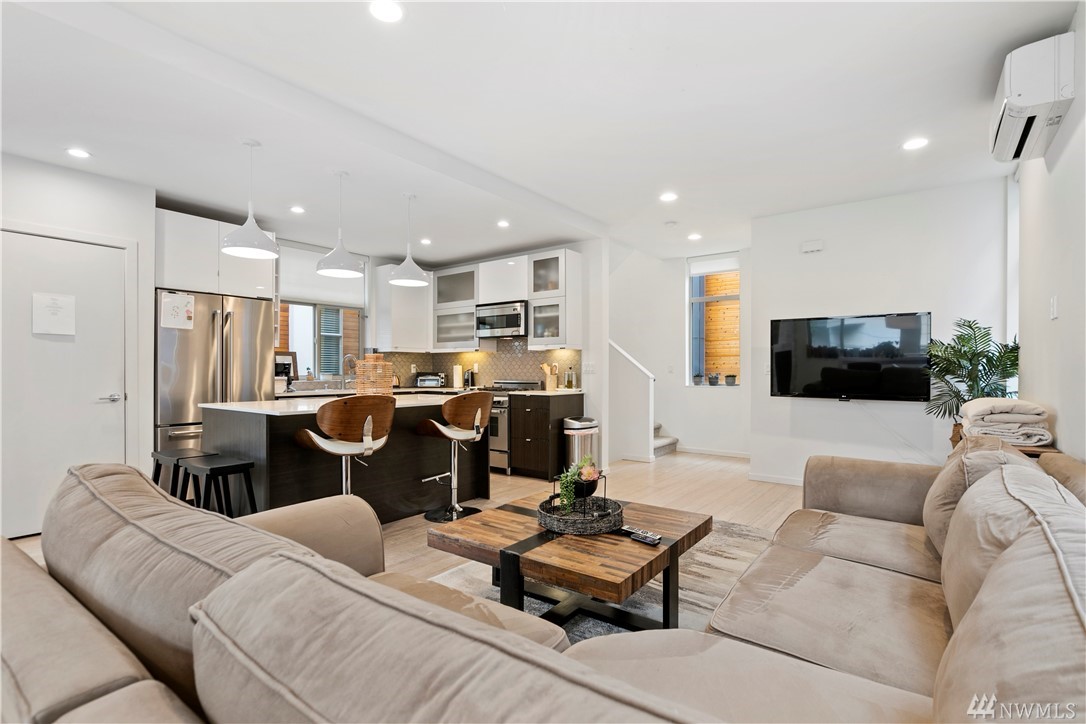 Ultra rare, fully detached modern home w/ roof top deck. Open living space w/ high ceilings, walls of windows - abundance natural light. Cozy dual sided gas fireplace. Chefs dream kitchen featuring party island, designer cabinets, high-end appliances, quartz counters. Luxurious finishes w/ penny tiles. Grand master suite w/ walk-in closet, spa-like master bath. Roof top deck w/ territorial views. 'Covered' off street parking. AC! Stone throw to the heart of Ballard. Airbnb income of $5k monthly!