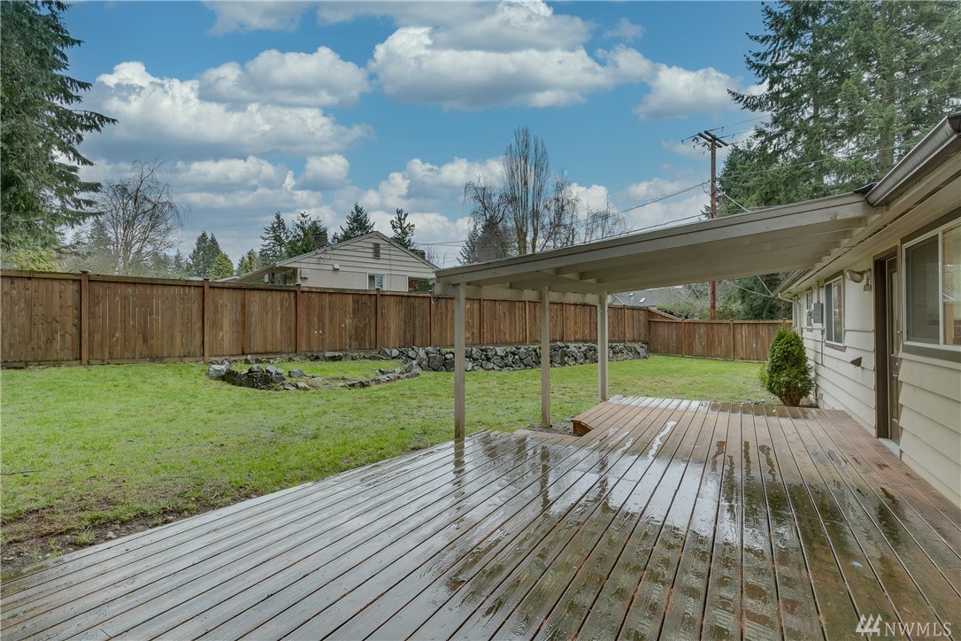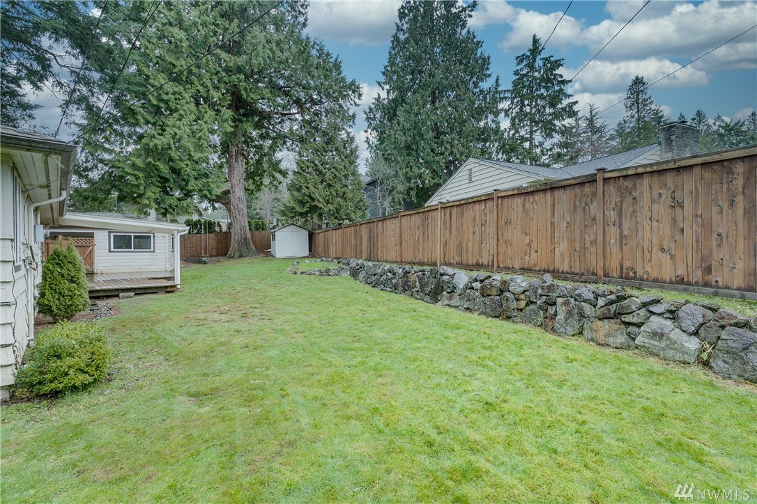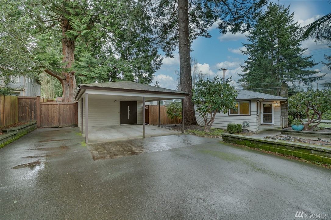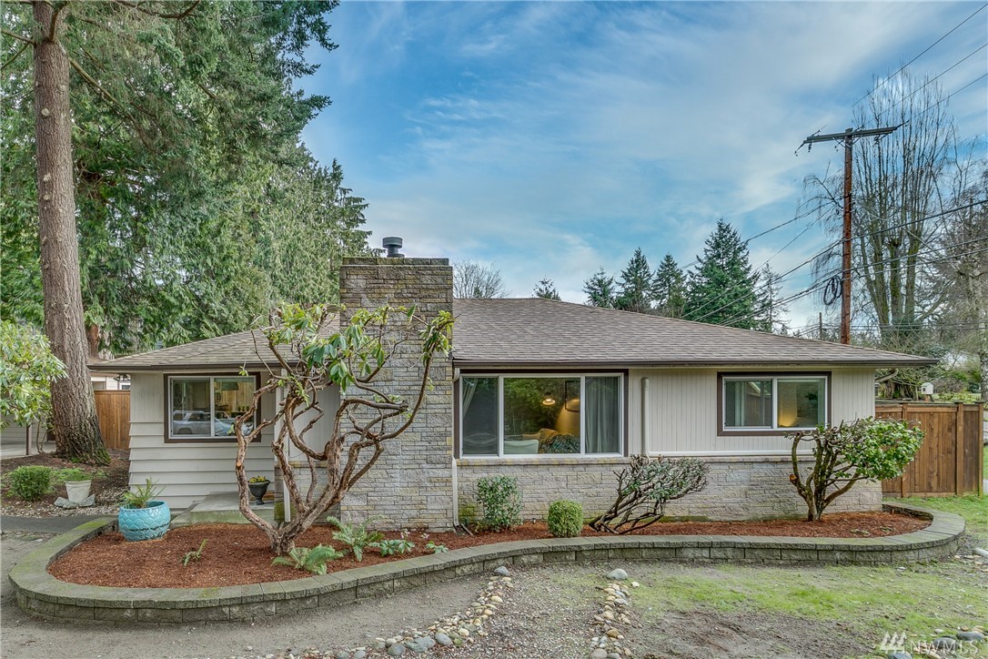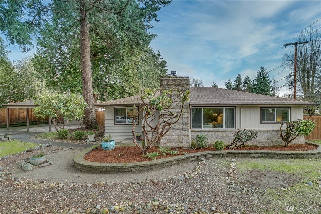 Welcome home! One level living w/updated kitchen/bath. Hardwoods in entry & dining room. New roof in 2015, transferable warranty. Large corner lot w/mature landscaping & sprinkler system. Heat pump & ductless mini-split for energy efficient heat + a/c. Large back patio perfect for entertaining & fully fenced yard. 2 car carport w/enclosed work area + shed. Quick commute to Downtown Kirkland/Eastside. Blocks to McAuliffe Park. #yournewhome