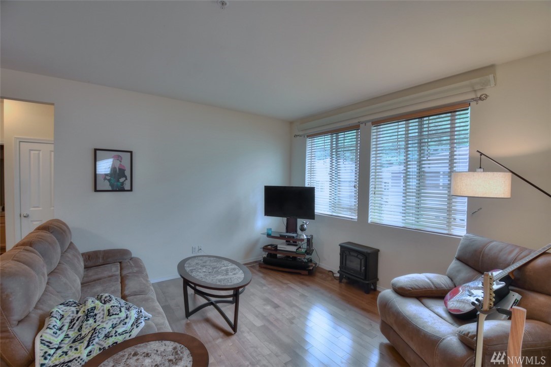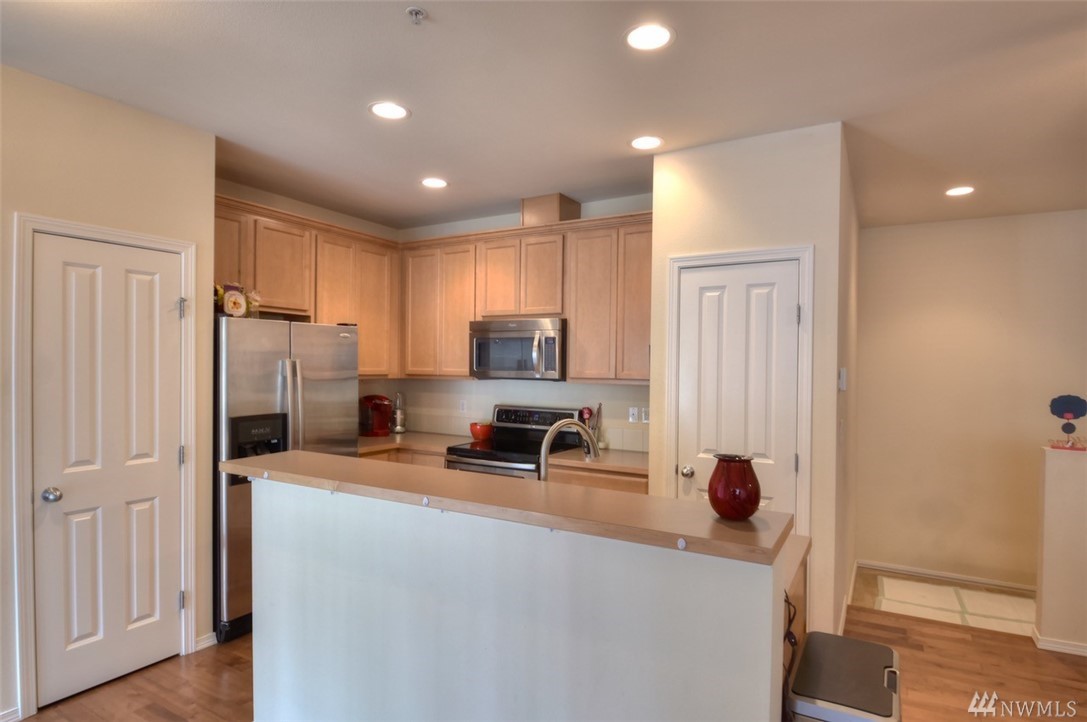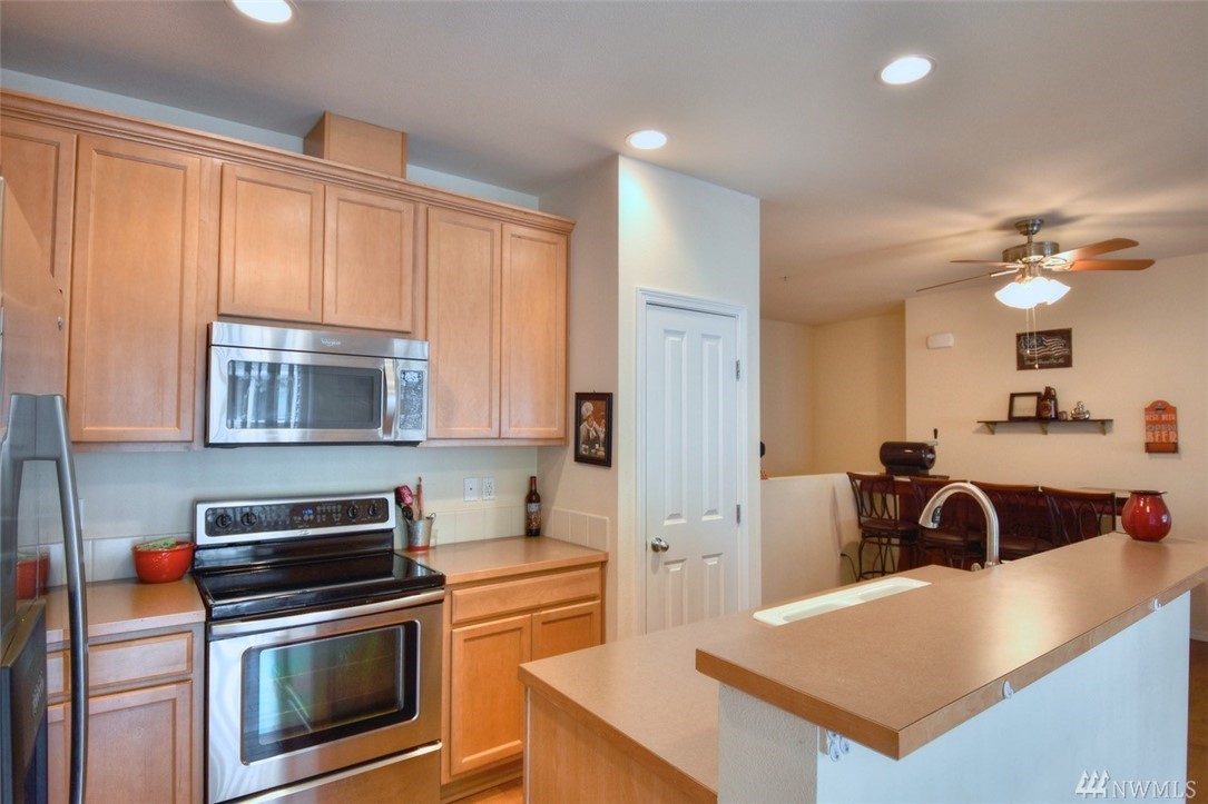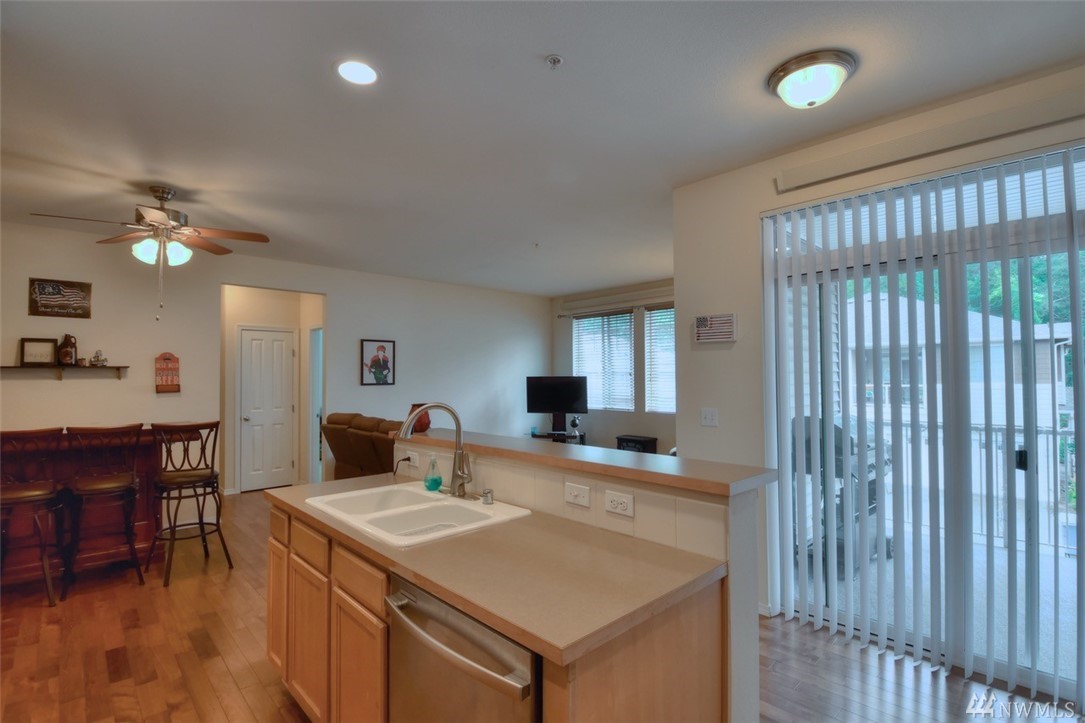 Perfect home for low maintenance living! Hardwood floors in LR, DR and kitchen area. All appliances stay! SS appliances, pantry, and island. Master BR has private bath and huge walk-in closet. Covered balcony w/storage and one-car attached garage. Conveniently located to schools, parks, trails, library, freeway access, JBLM, bus service to Seattle, shopping and entertainment.