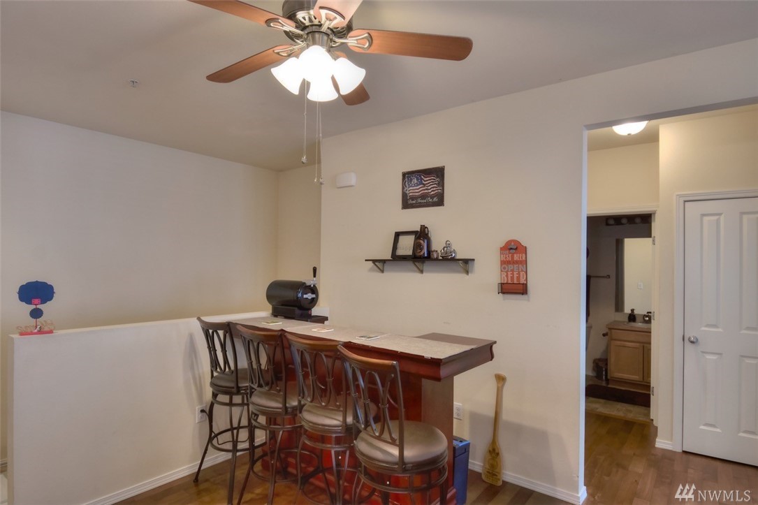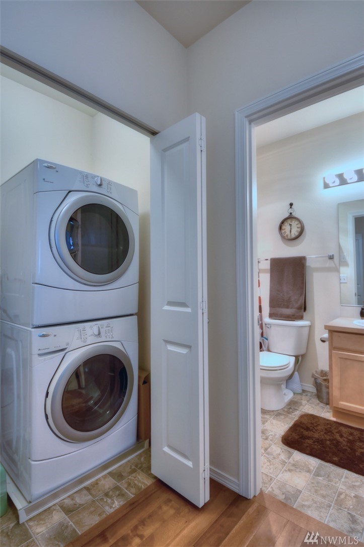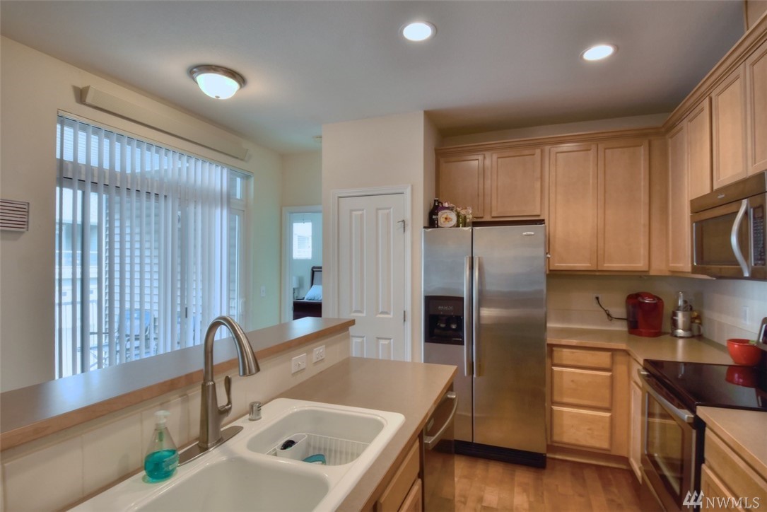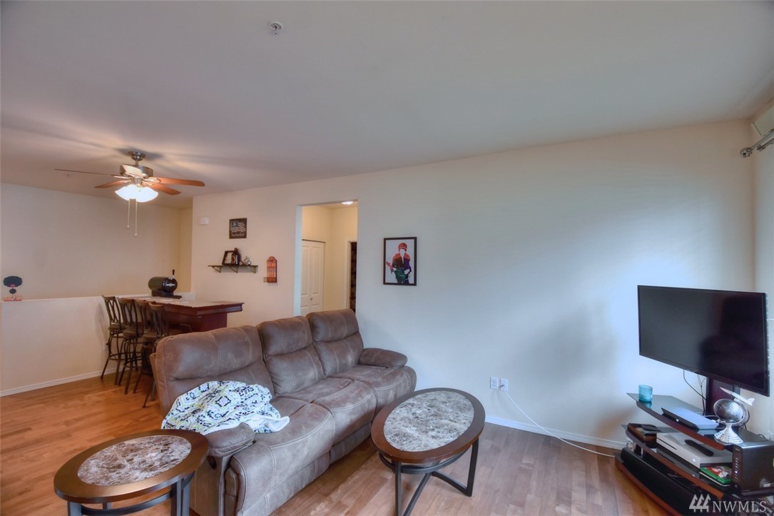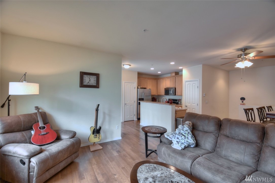 Perfect home for low maintenance living! Hardwood floors in LR, DR and kitchen area. All appliances stay! SS appliances, pantry, and island. Master BR has private bath and huge walk-in closet. Covered balcony w/storage and one-car attached garage. Conveniently located to schools, parks, trails, library, freeway access, JBLM, bus service to Seattle, shopping and entertainment.