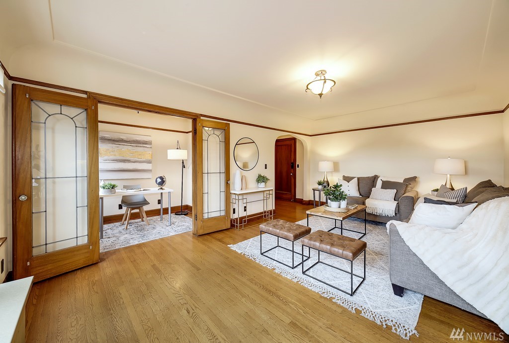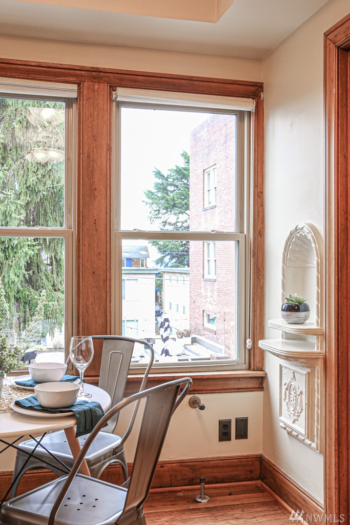 Built in 1929, The Sheffield exudes style and grandeur from the exquisite, impeccably maintained lobby to the original millwork, leaded glass French doors, and period lighting + hardware. This spacious light-filled third-floor unit has been lovingly cared for and extensively renovated while keeping its soul intact. Perfectly sited on a tony North Capitol Hill street close to all things worth doing: parks, museums, eateries, shops, and light rail. In-unit laundry, deeded parking, and pet friendly