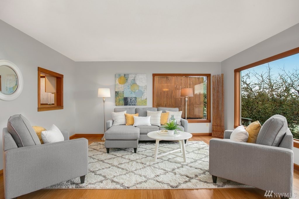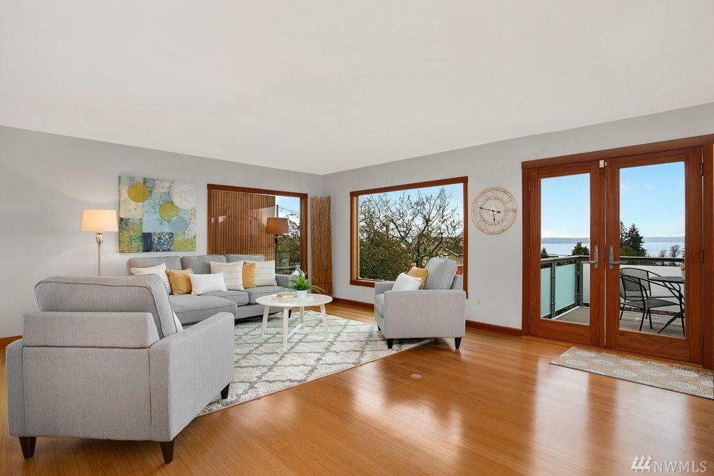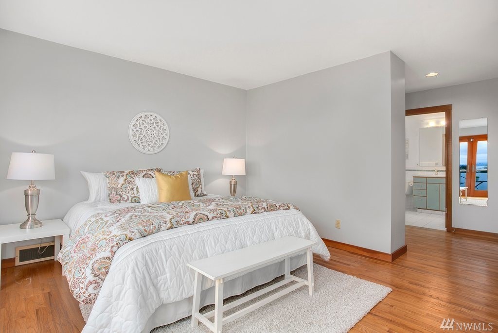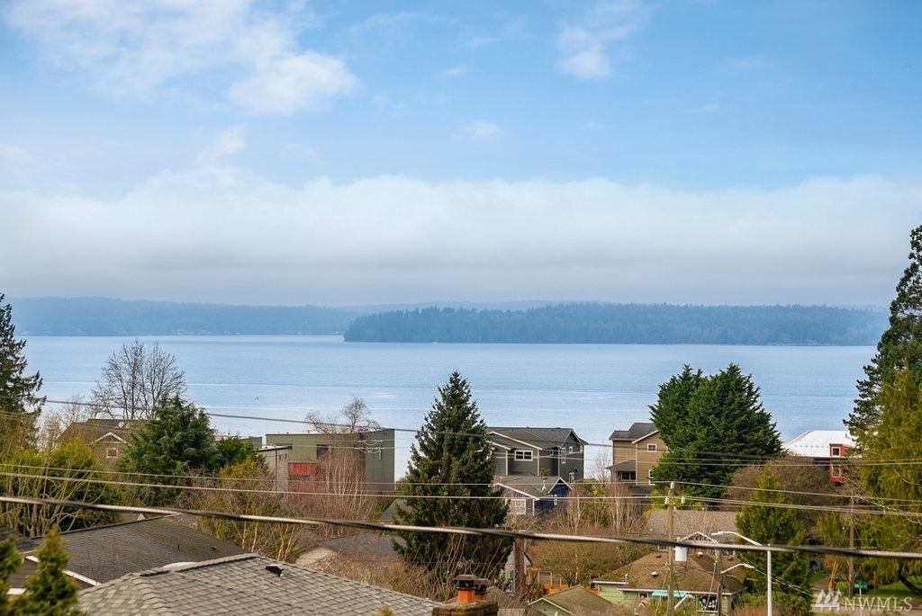 Understated exterior w/ WOW factor of Endless Sound & Mountain Views! Fall in love with the West Facing elevated modern entertainment sized deck & 2nd oversized private backyard deck. Thoughtful spaces & design thru-out. Spacious kitchen w/ lg pantry. VIEW master suite also opens to the view deck - lots of closet space here. Fabulous Anderson wood wrapped windows & doors. Tons of natural light. Terraced landscaping. 2-car garage w/ adjacent workshop & tons of storage! New roof, heat pump & A/C.
