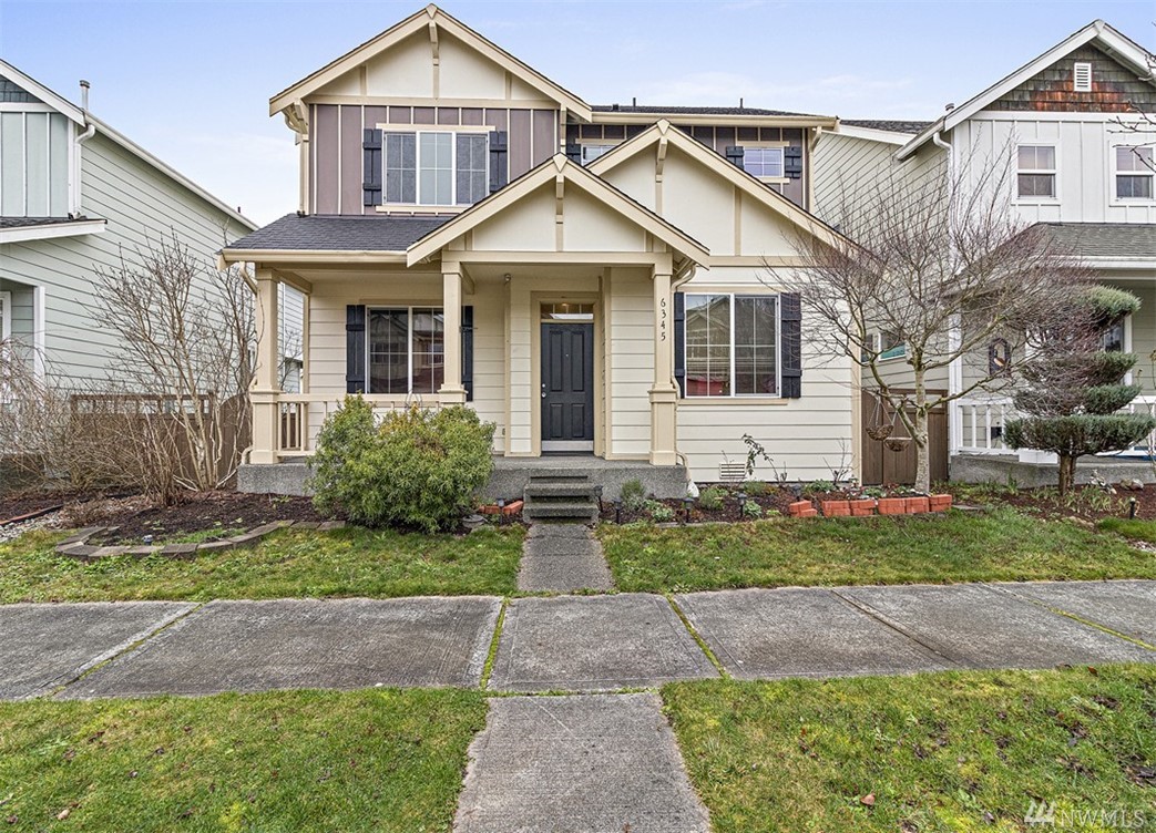 Delightful 2-story home w/charming covered front porch nestled on a level lot. Spacious living rm w/fireplace & adjoining dining rm, perfect for casual gatherings or entertaining. Warm & inviting kitchen w/pantry open to the casual dining area w/slider to patio & fenced side yard. All appliances stay! Large master bedroom w/ walk-in closet & private bath w/soaking tub & separate shower. Upper level bonus rm w/double door entry. Alley access to 2 car attached garage. Neighborhood park.