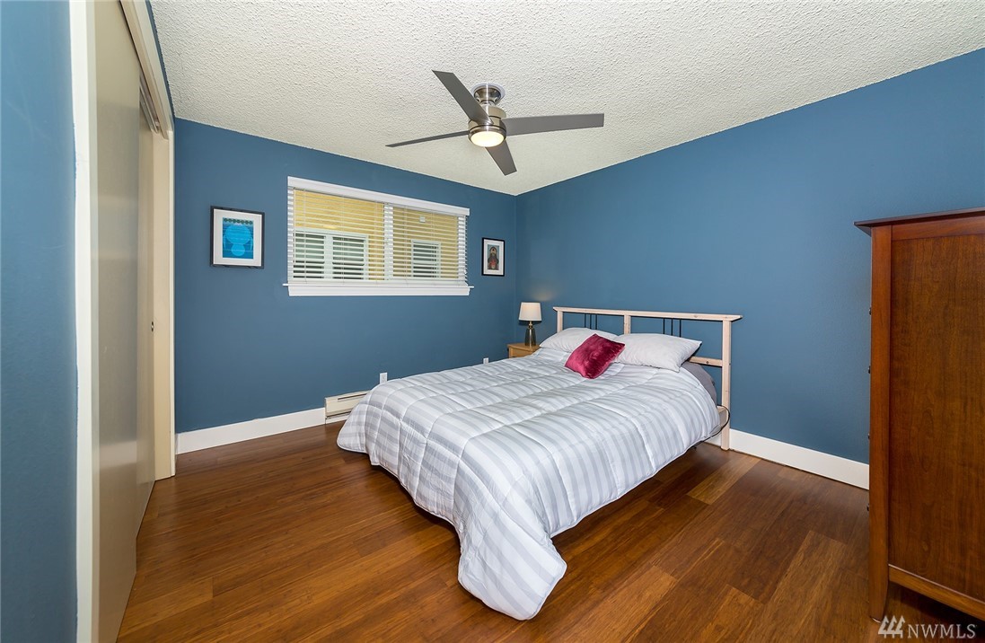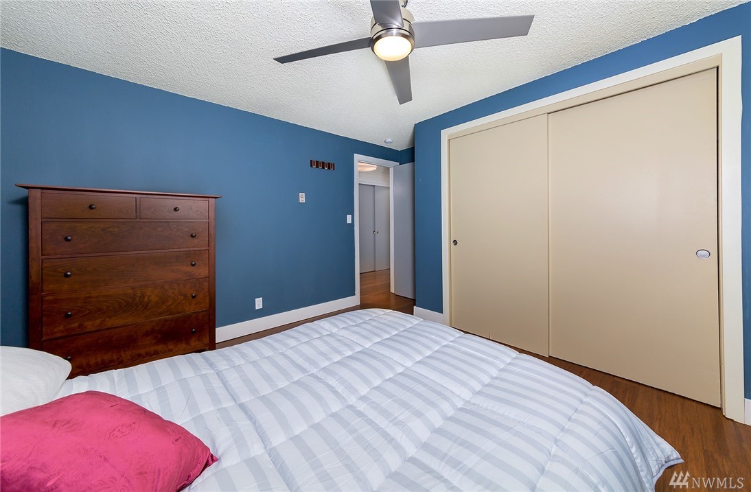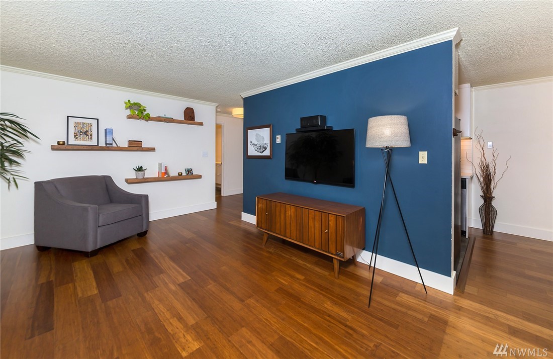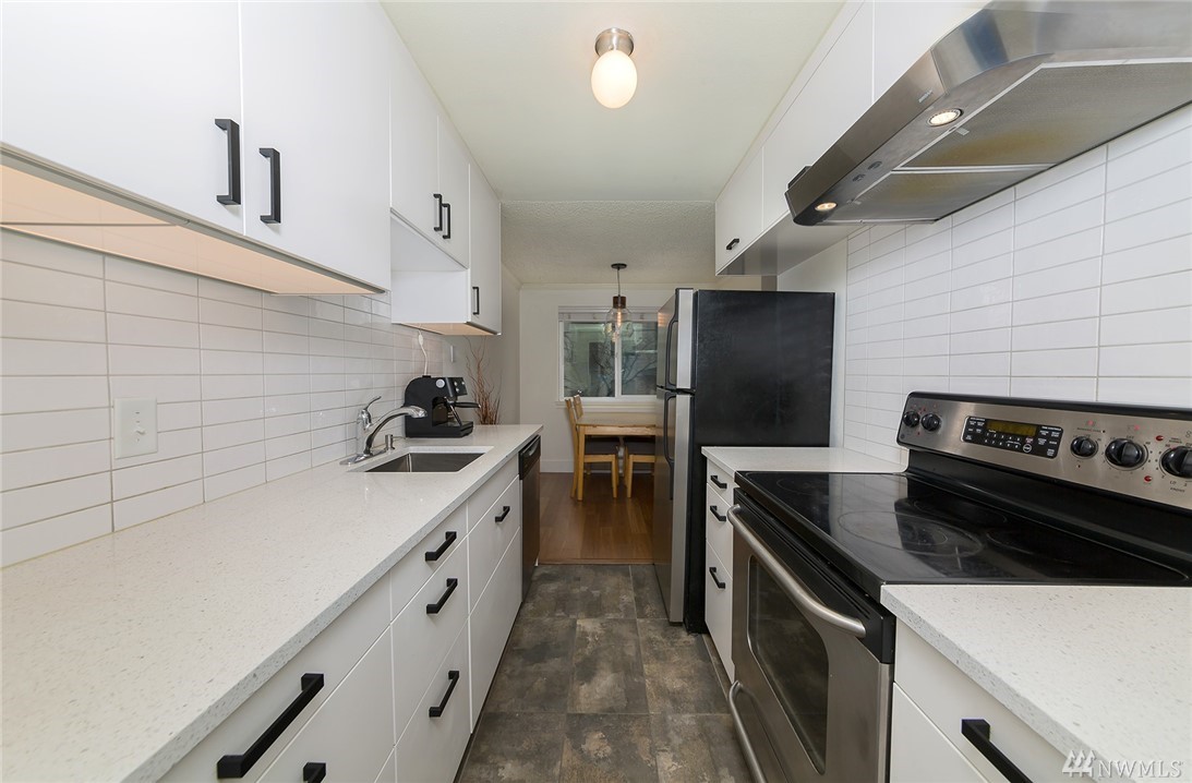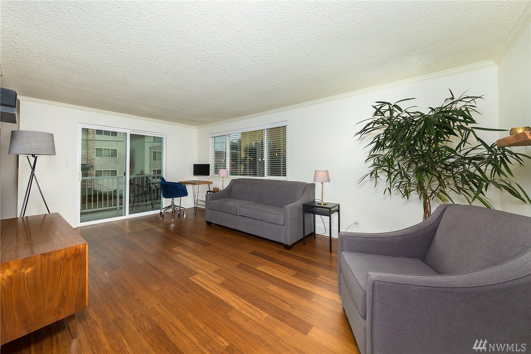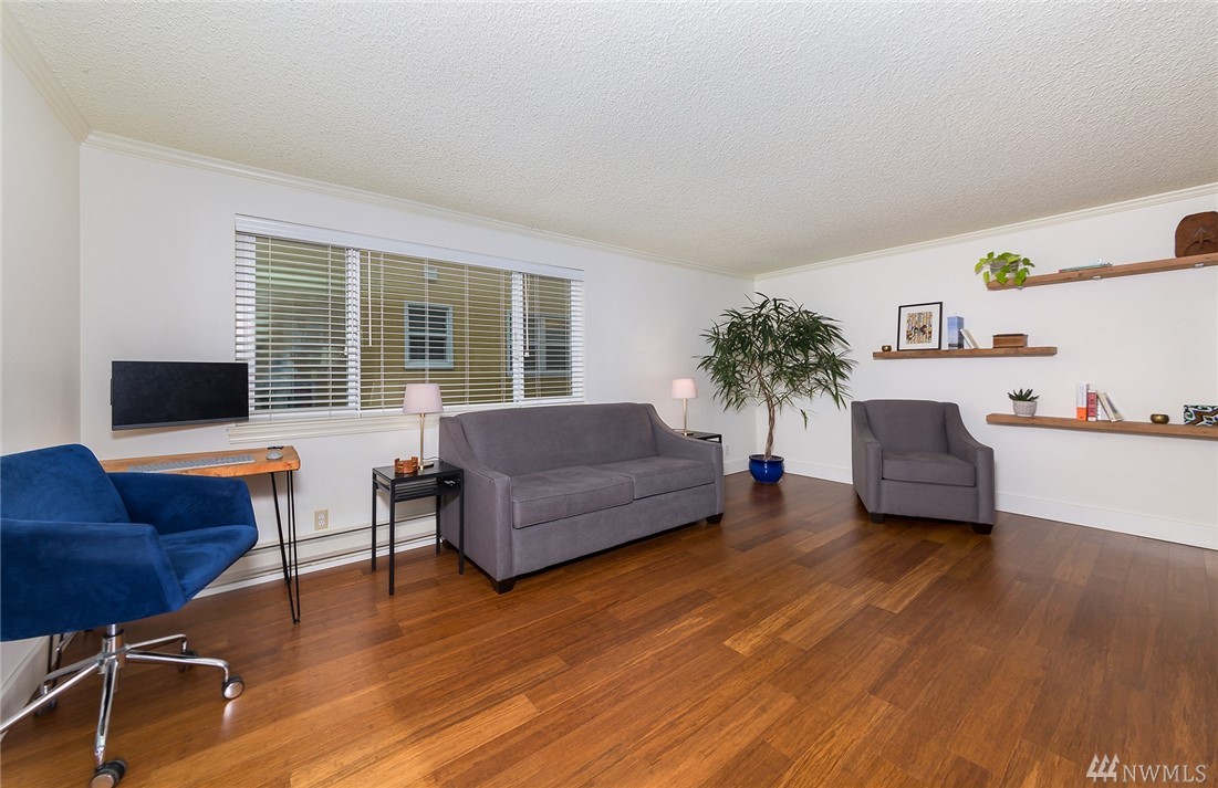 Sunny one-bedroom corner condo in desirable upper Fremont features quartz countertops, subway tile backsplash, stainless steel appliances, gorgeous bamboo and tile flooring, crown moulding, double-pane vinyl windows, and updated bathroom. Unit includes private south-facing deck, plus one assigned parking spot, on-site laundry and dedicated storage unit. Well-run seven-unit building, close to bus, shopping, coffee, dining and more!