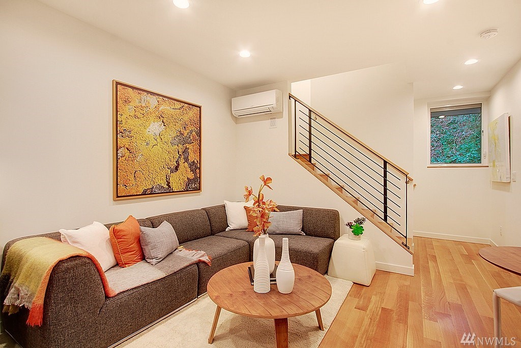 Corner Unit now at 509k! 1098 SF two bed townhouses by BuildSound LLC, steps to The Junction. Gorgeous rift-sawn White Oak hardwoods, dual mini split A/C units, Bellmont custom cabinets, GE Profile stainless steel appliances + quartz counter-tops. Carpeted beds with ensuite tiled showers including 4 piece master bath w/ dual vanities. Maximized spaces w/ plenty of windows. Zero Lot Line -No HOA- and priced to keep payments LOW. Buy into downtown West Seattle w/ a beautiful townhome!