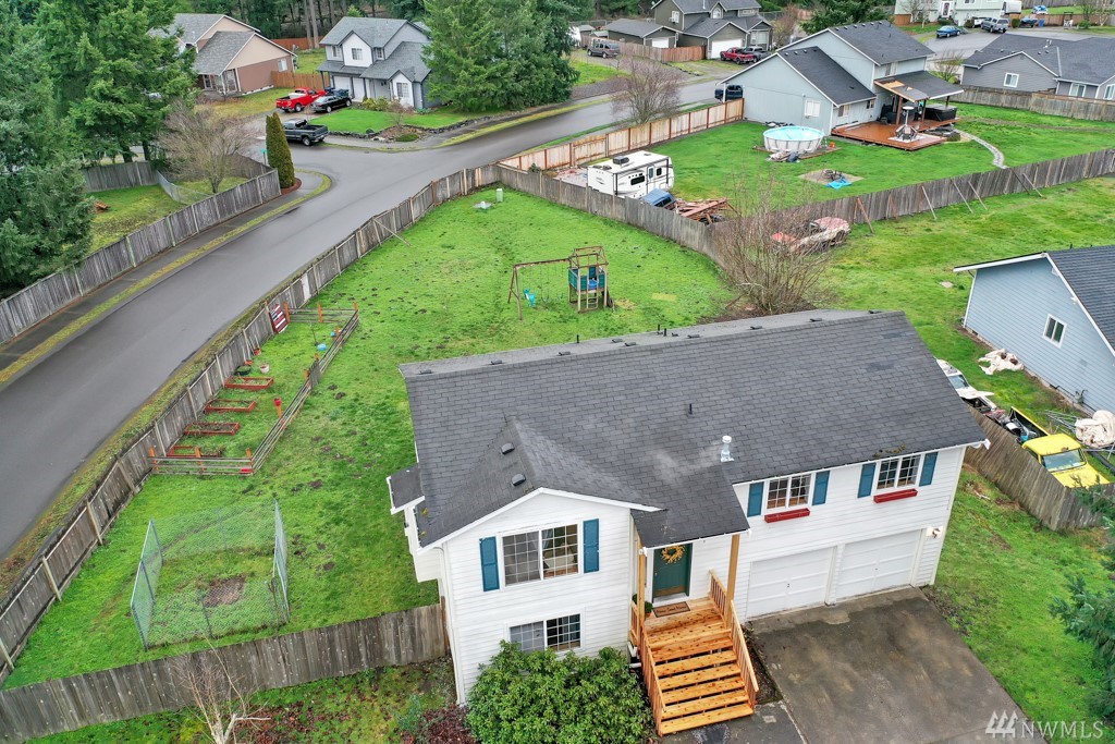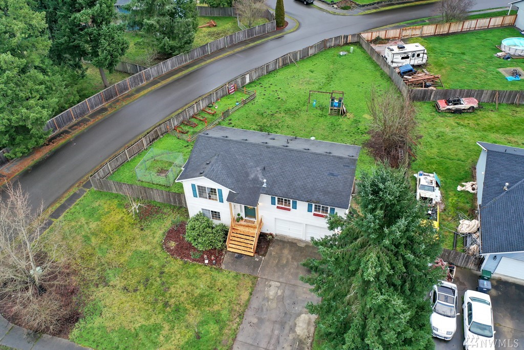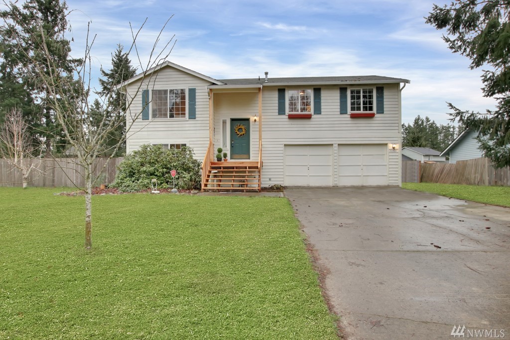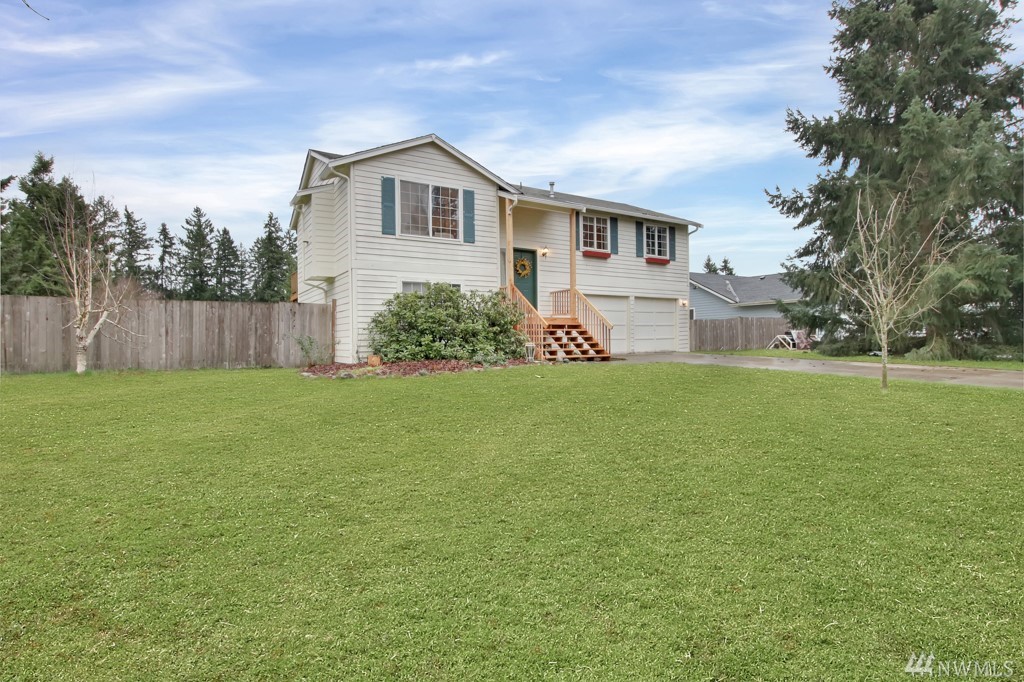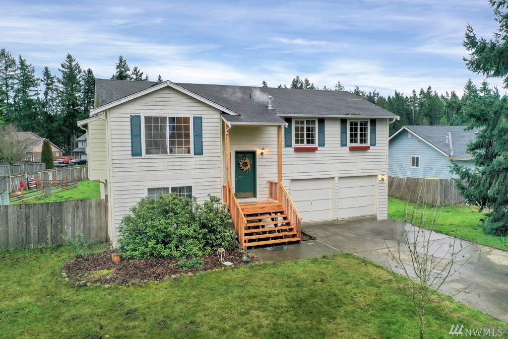 Ideal corner home on almost a third acre! This conveniently located split level home has new interior paint and flooring offering tons of space w/5 bds Kitchen has solid surface counters, tons of cabinet space - Living room w/gas fireplace, tons of natural light sliding patio door that lead to the amazing deck 2 Bdrms ¾ bath on lower level w/spacious bonus room that could be used for anything - Your RV/Boat will love the yard & deep garage & parking No HOA dues - minutes from shopping & schools.