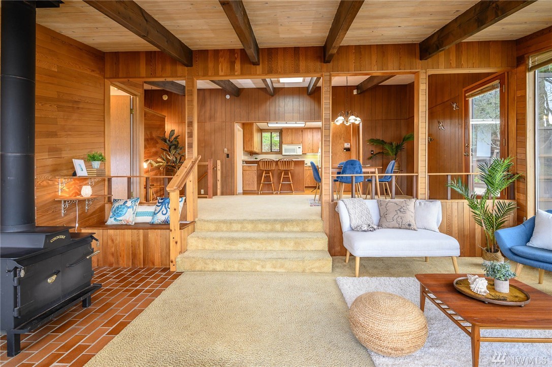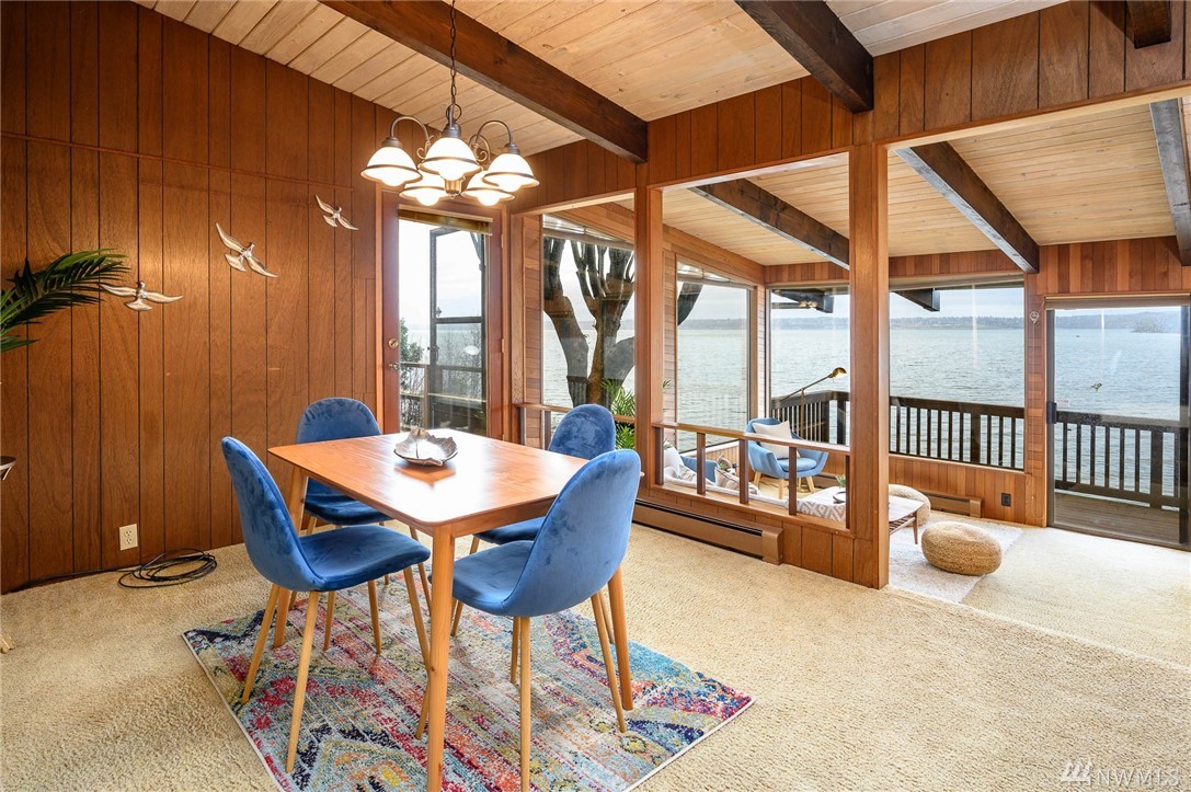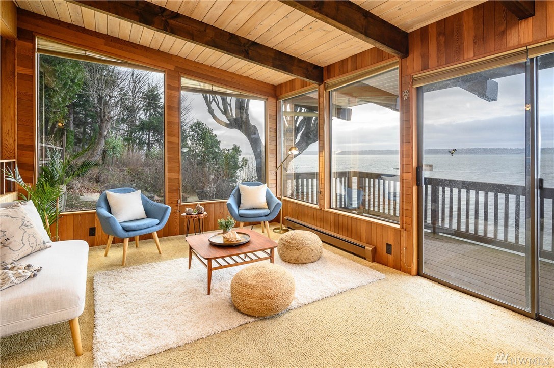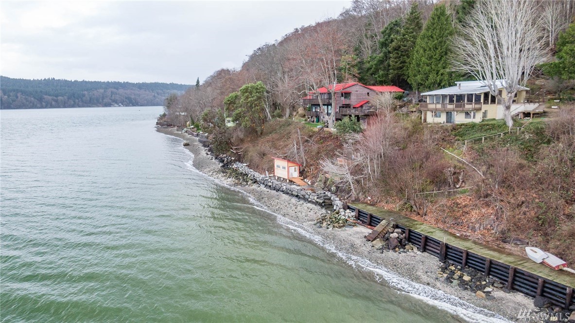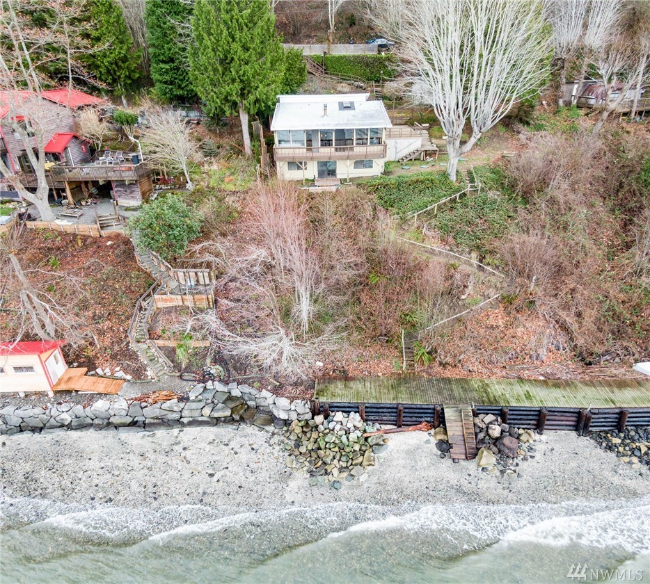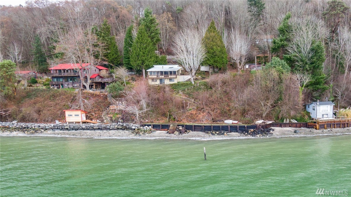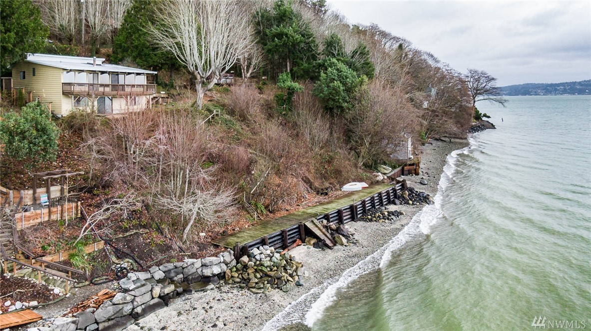 Handsome, private, west-facing, architecturally designed home on 75' medium bank, sandy waterfront! Besides a stunning view toward the southwest, Tacoma and the shipping lanes, this 3 bedroom, 2 1/2 bath contemporary has a great bulkhead picnic area, some hardwood floors, a new septic system, shop, and Dockton Water. In the same family for generations --- a rare place with extraordinary possibility!