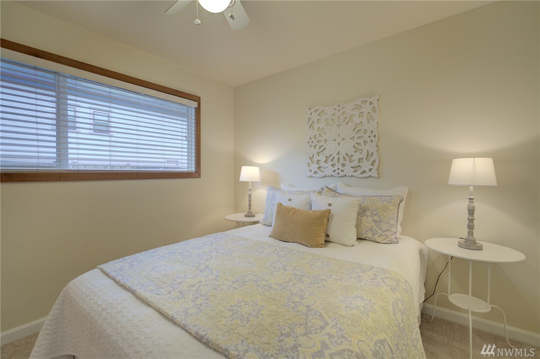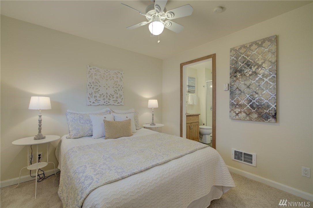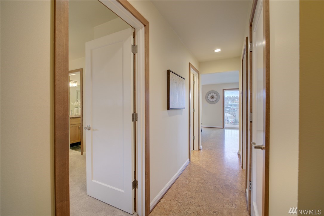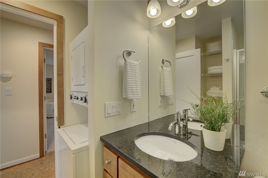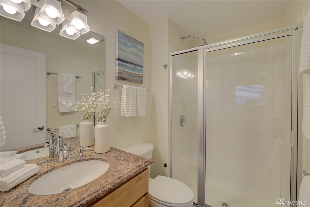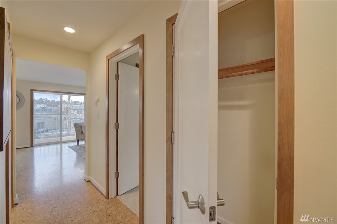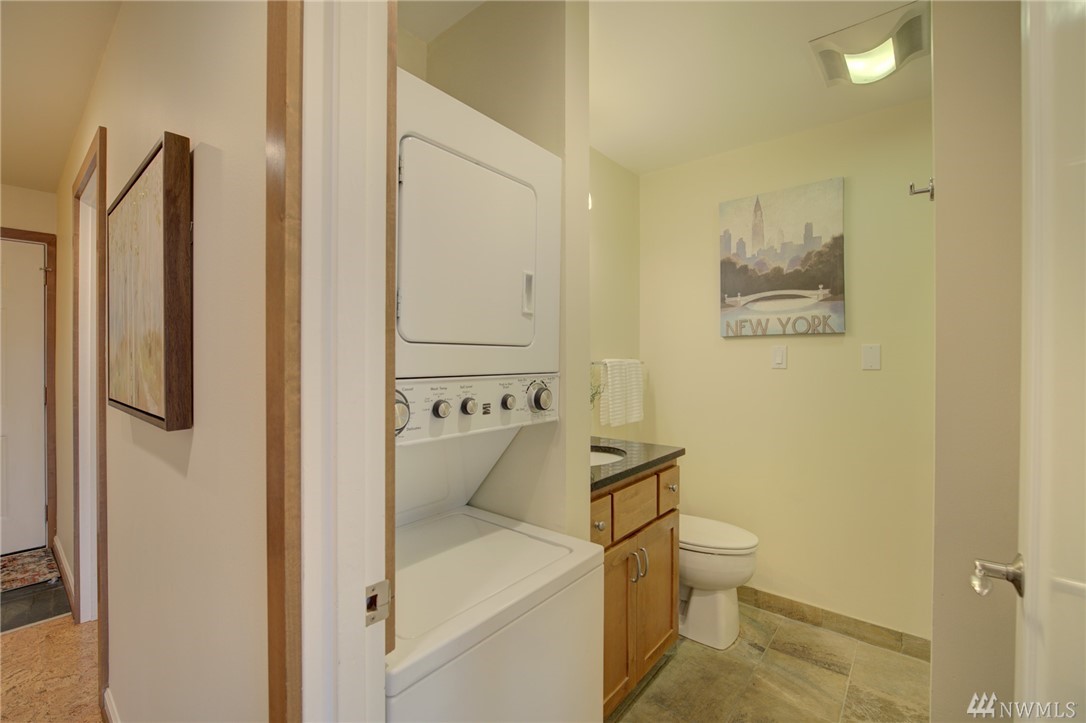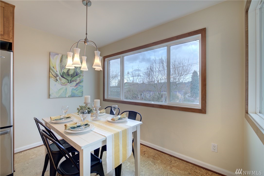 Spacious, bright, open, level-entry condo in small, private 4-plex on Queen Anne side of Fremont Bridge. House-sized kitchen opens to spacious living & dining rooms. Gas cooking. Two 3/4 baths with heated stone floors. Jotul gas free-standing stove in LR. Burl cork flooring. In-unit W/D. Enjoy all that Queen Anne & Fremont have to offer. 1 block to Burke-Gilman. Watch the Fremont Bridge go up and down. Don't street appraise. HOA incls earthquake. 2 prking spots right by front door. Pet friendly.