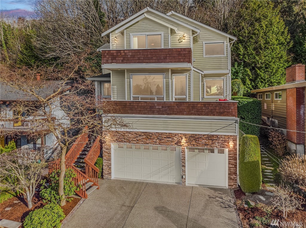 Perched at the end of a coveted quiet street overlooking Lincoln Park, this dreamy 2005 built WS home has stunning views of the Park, NW sunsets & glimpses of the Sound. 3BDs upstairs incl. ensuite master w/ FP. An entertainer’s main level has hrdwds, 2 living rooms, 2 FPs, dramatic dining room, eat-in chef’s kitchen and view deck. Other amenities incl. 4th BD, 3-car gar, central air & vac, low maint. yard w/ dog run. All this w/in easy commute to DT & close proximity to WS top dining & retail!