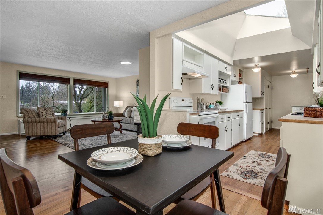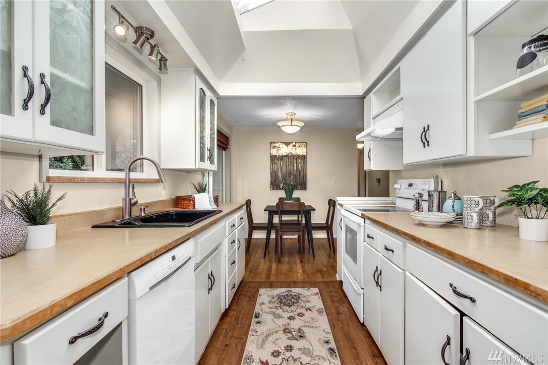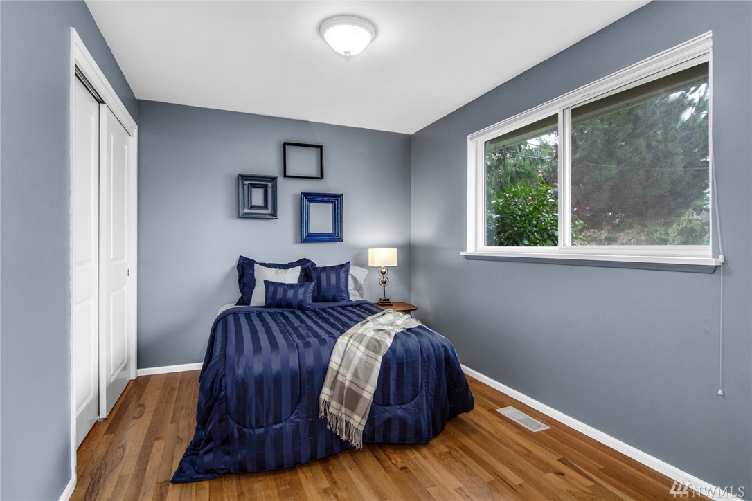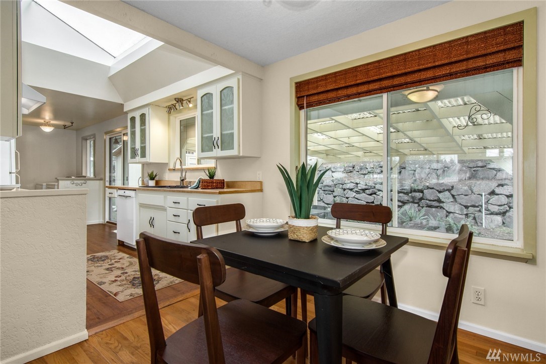 Charming tri-level on quiet street in Lake Hills. Spacious living room w/ fireplace opens to light filled dining and kitchen w/ skylight. Master bdrm w/ half bath and custom closet. Two bdrms have been combined to create a spacious suite, easily converted back. One additional bdrm upstairs, and family room downstairs. New vinyl windows w/ exterior shades, fresh paint, and hardwood floors. Fenced backyard with covered patio, perfect for entertaining. Convenient location and great Bellevue schools