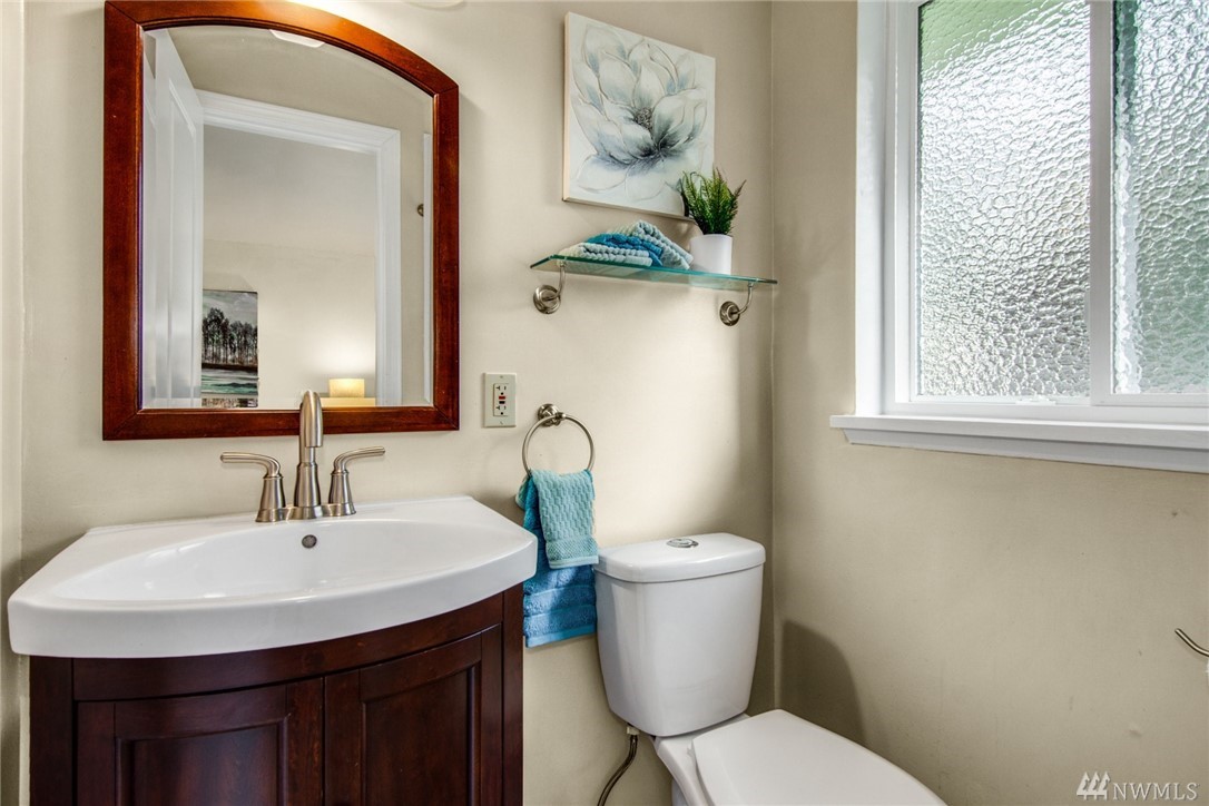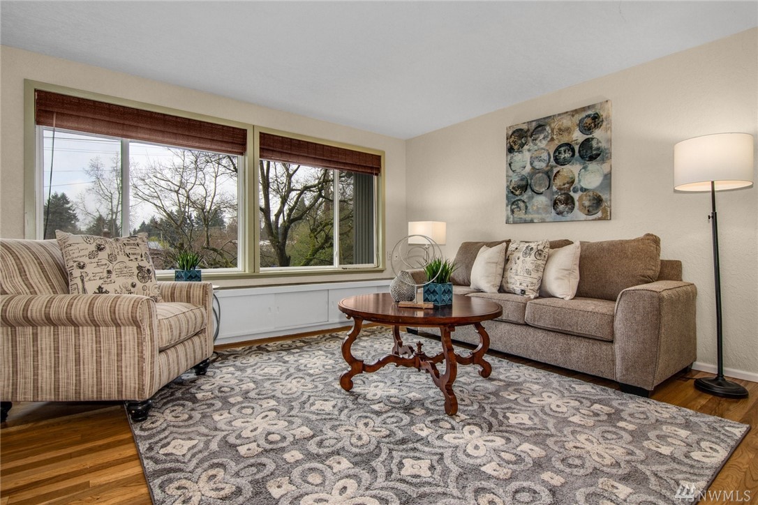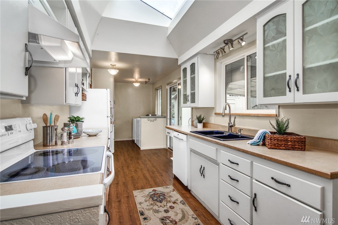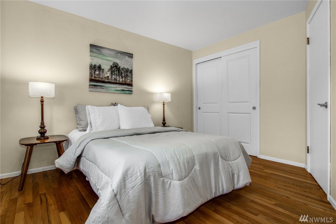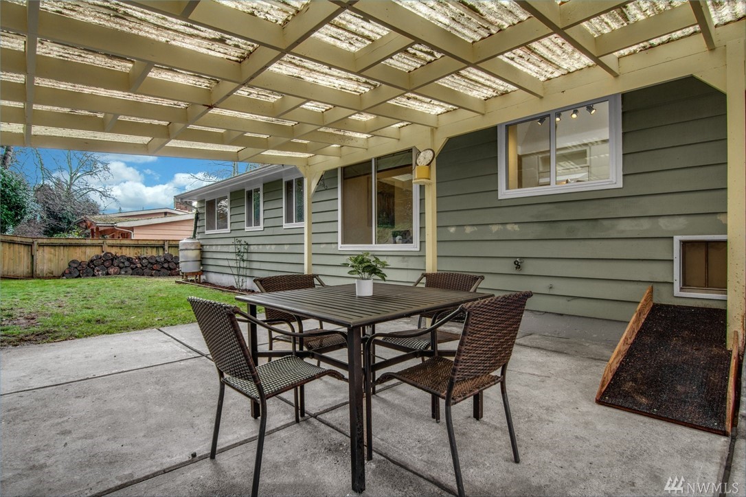 Charming tri-level on quiet street in Lake Hills. Spacious living room w/ fireplace opens to light filled dining and kitchen w/ skylight. Master bdrm w/ half bath and custom closet. Two bdrms have been combined to create a spacious suite, easily converted back. One additional bdrm upstairs, and family room downstairs. New vinyl windows w/ exterior shades, fresh paint, and hardwood floors. Fenced backyard with covered patio, perfect for entertaining. Convenient location and great Bellevue schools