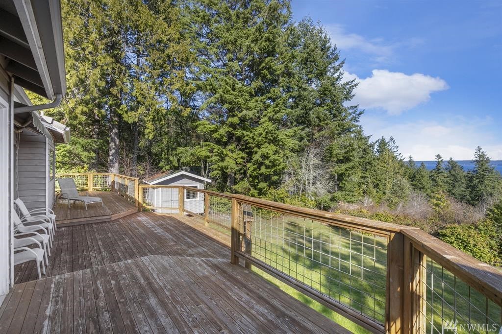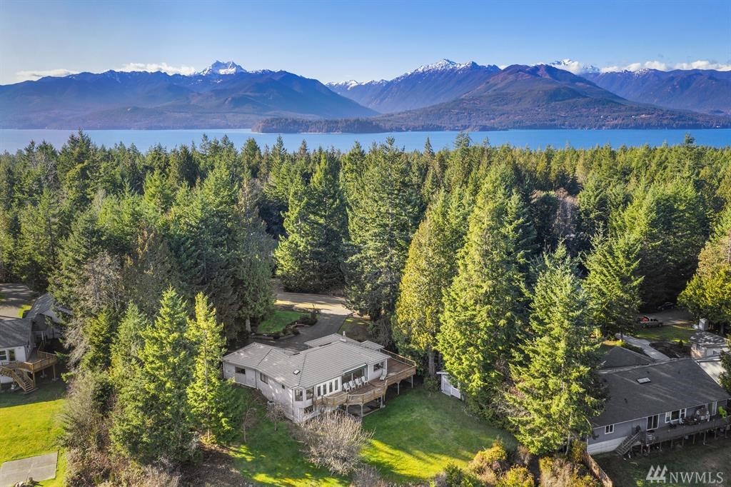 WELCOME TO HONEYHILL LOOP! Just 3 mins from Seabeck Marina, this spacious view home is bright & airy w/ vaulted living room ceilings, gas fireplace & large windows w/ Hood Canal & Cascade Mtn views! Kitchen features newer cabinets, granite counters & breakfast nook. Main floor master w/ large walk-in closet, 5 piece bath & access to great view deck. Family room & 2 BR on lower level w/ wood stove & backyard access. Laundry rooms on both floors. 12'x16' shed in backyard. Adjacent lot included!