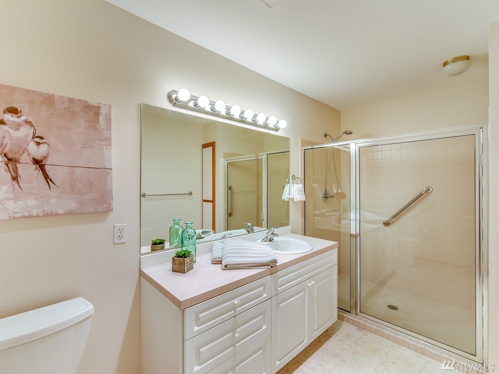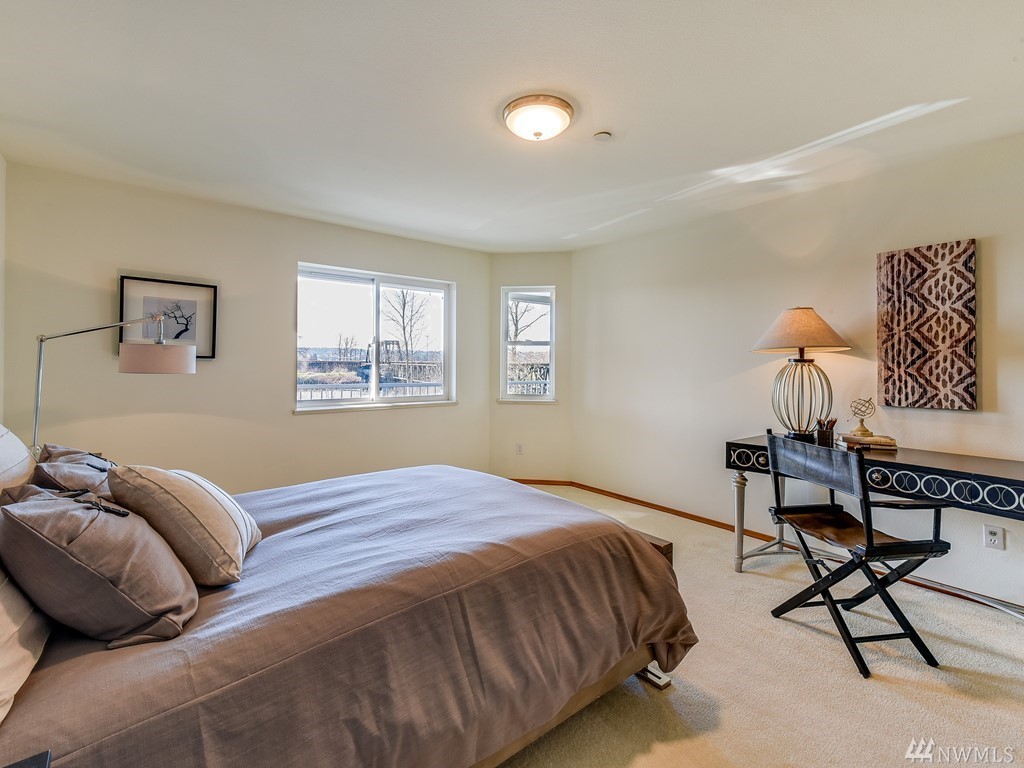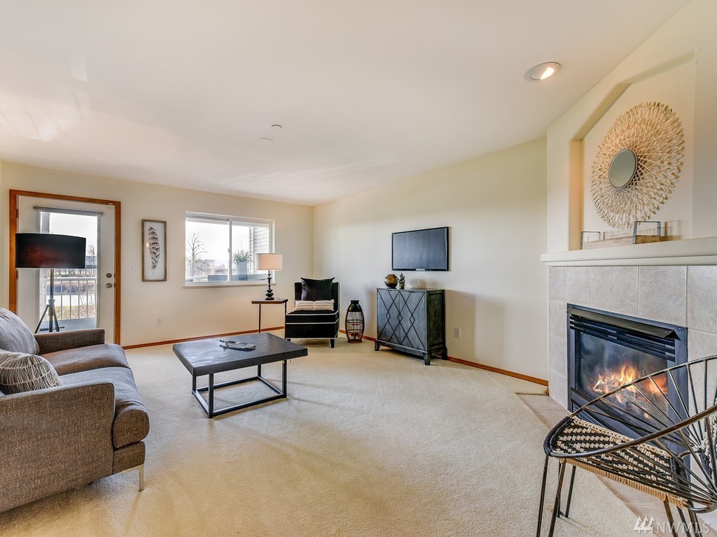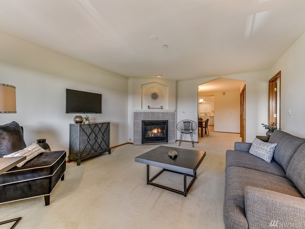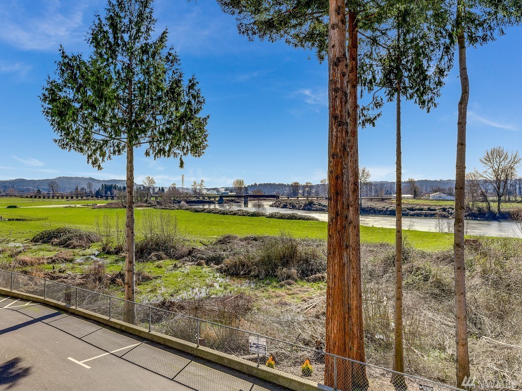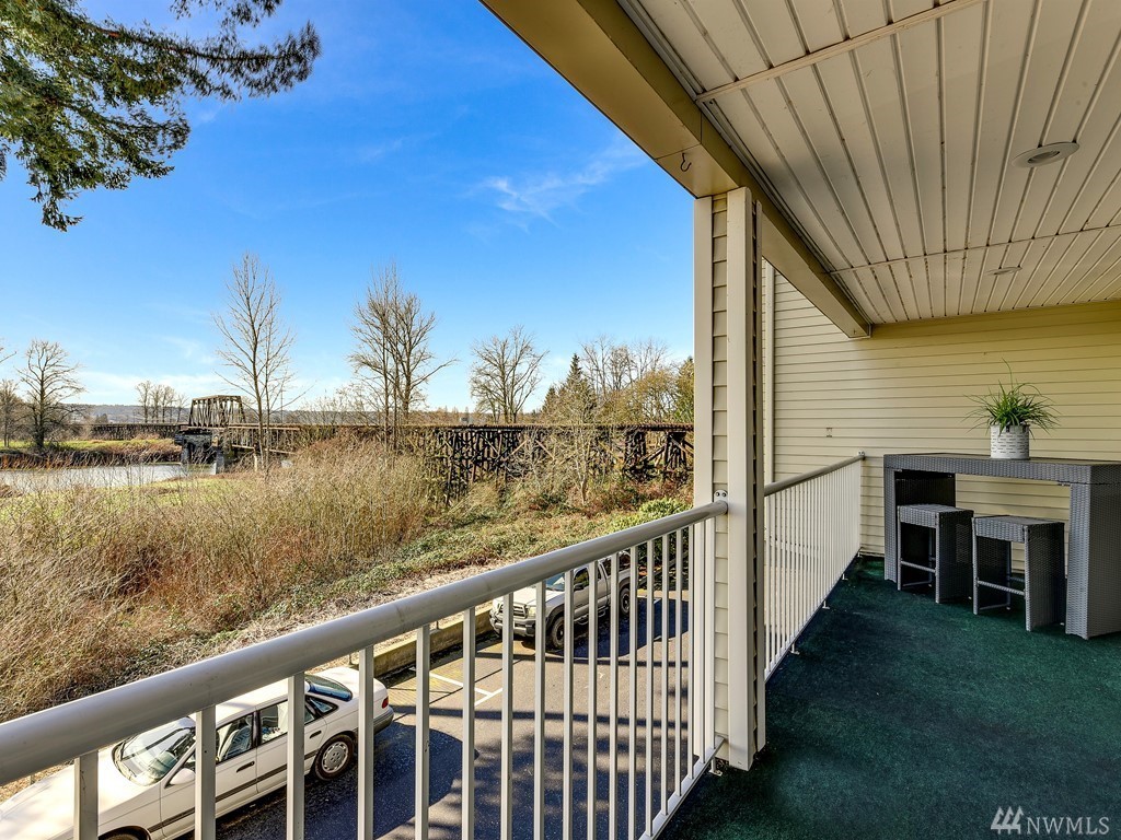 River view in downtown Snohomish! All one level, open floor plan on first floor of blding. Large master with walk-in closet, ¾ bath plus second bdrm & full bath. Large kitchen, eating nook & dining room. Comfortable living room filled with natural light & gas fireplace. Large covered balcony to enjoy views of Snohomish river, Mt. Rainer, hot air balloons & sky divers. Blding has 3 floors w/elevator access. Walking to shopping, dining, Centennial trail. Secure common area garage. Well run HOA.