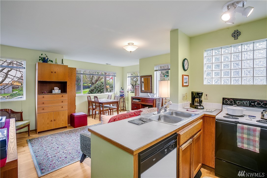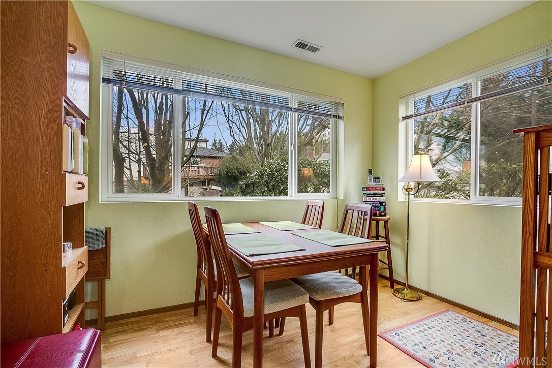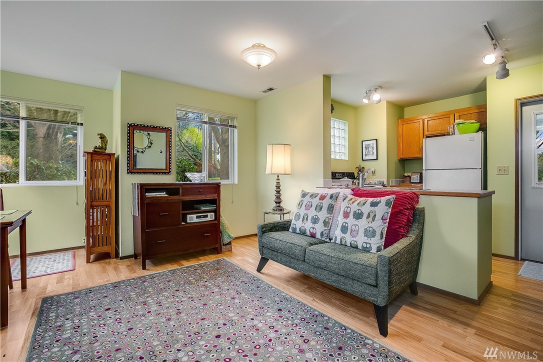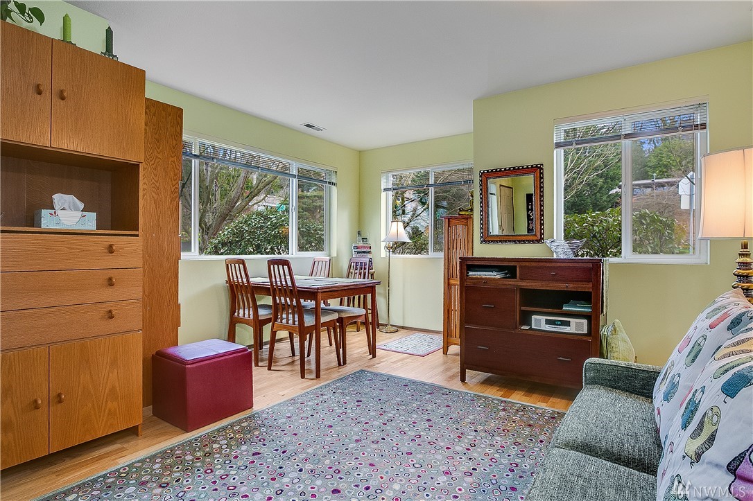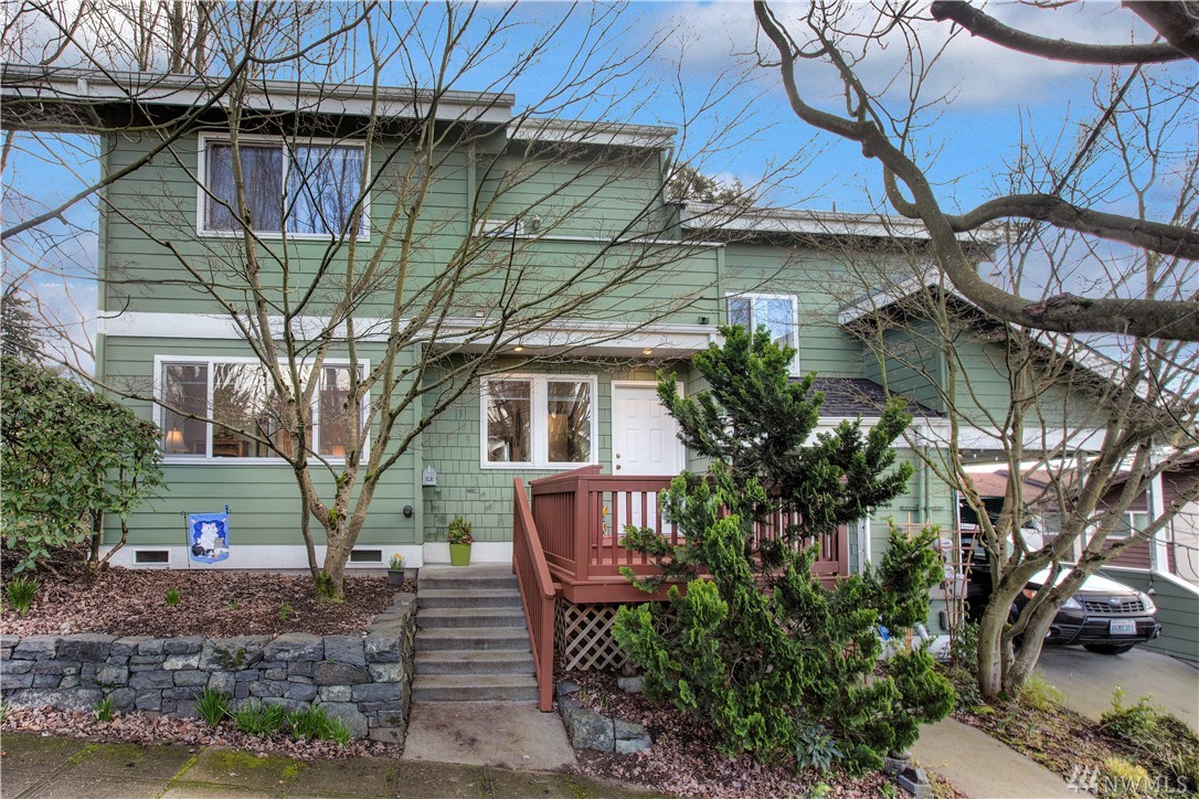 Unique, Lower Phinney/West Woodland Townhouse end-unit. Woodland Park Zoo, Greenlake & Ballard proximate. Open, two-level design filled with natural light. Two large bedrooms, each with vaulted ceilings, alcove and balcony. Hardwood and carpet flooring. Attic for storage. Deck out front; carport/driveway out back. New exterior paint. Corner, treed lot in great neighborhood, close to all Phinney Ridge/Ballard/ Fremont amenities. Easy commute to downtown and other employment centers.