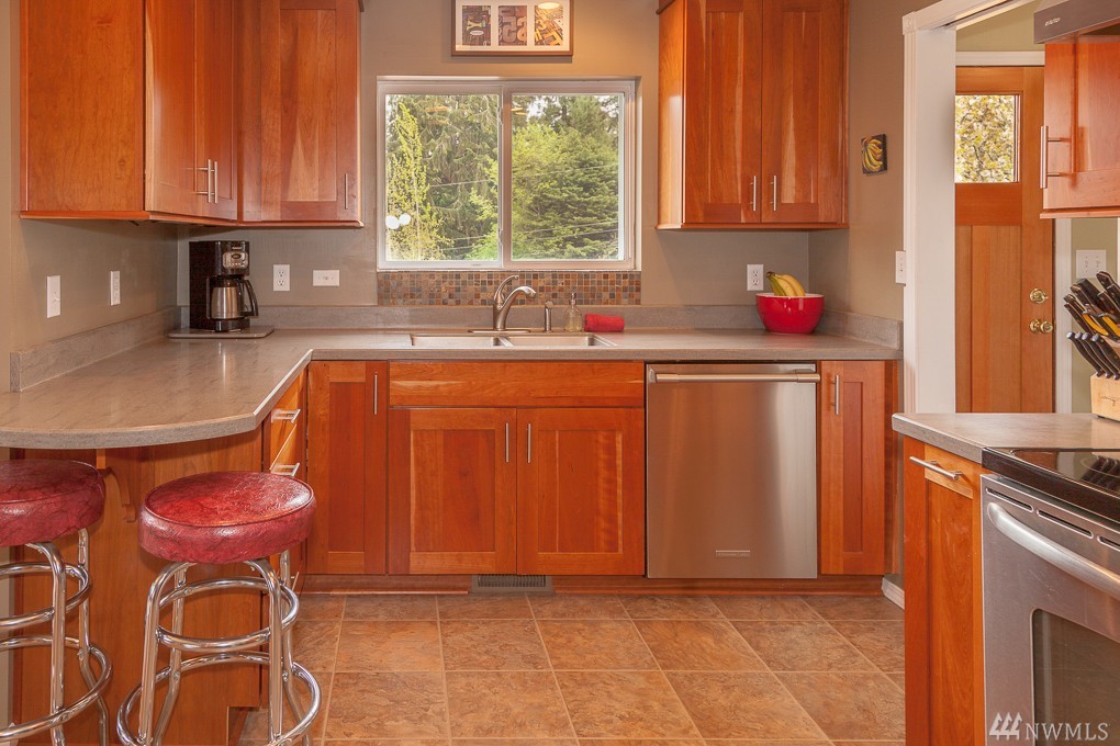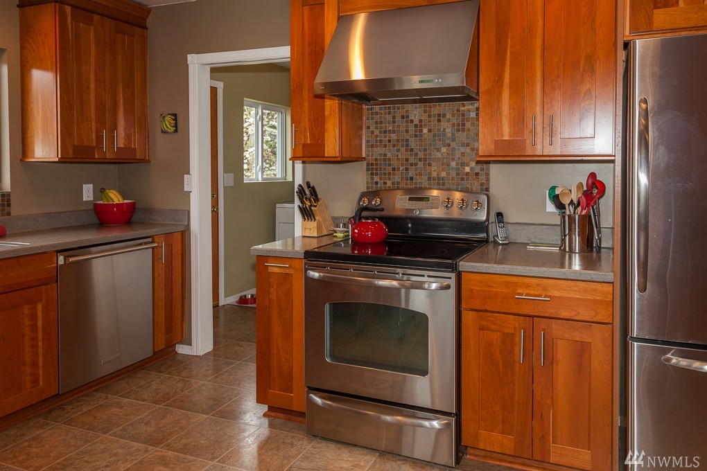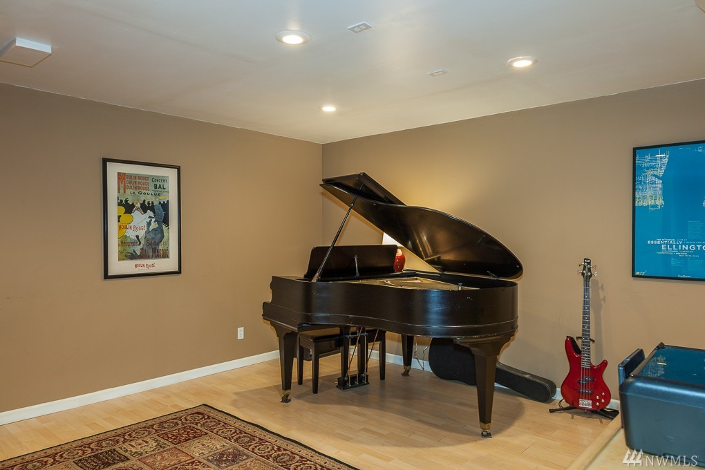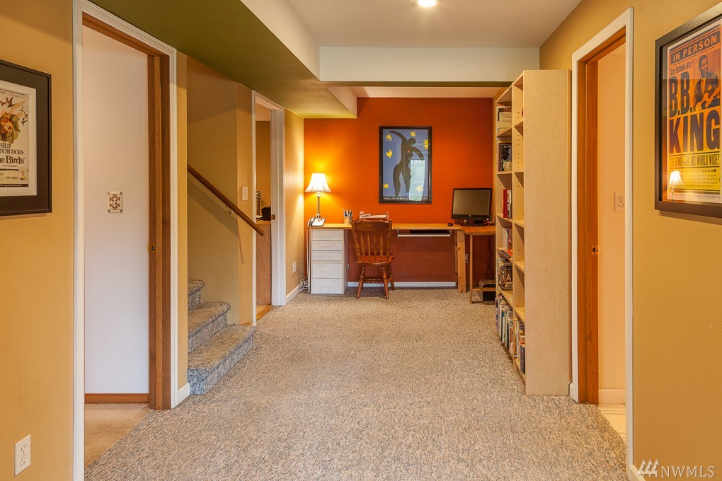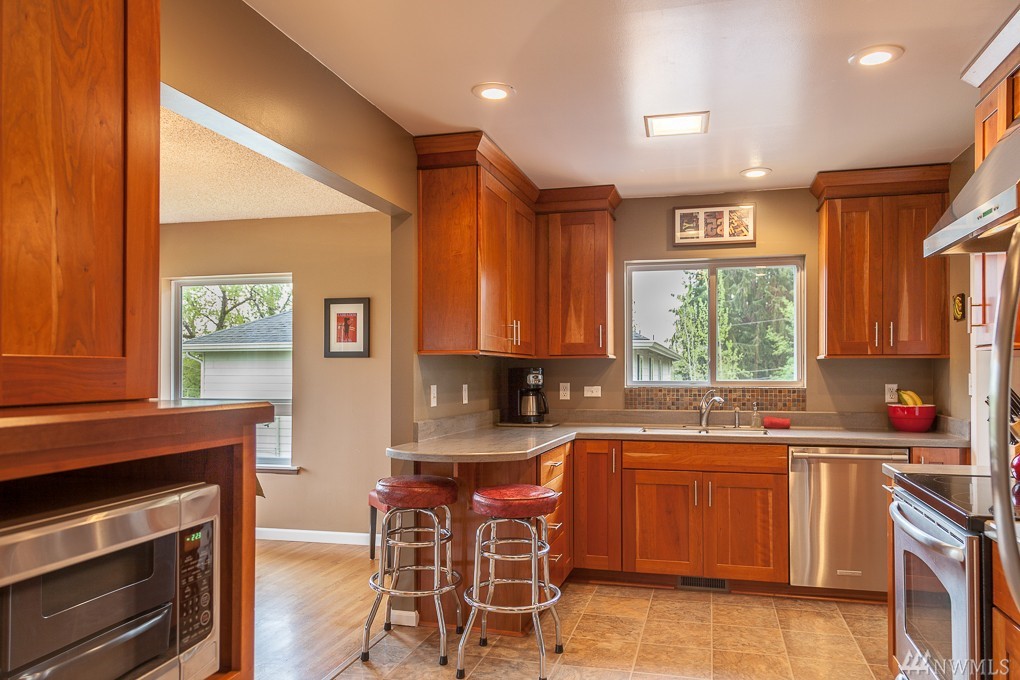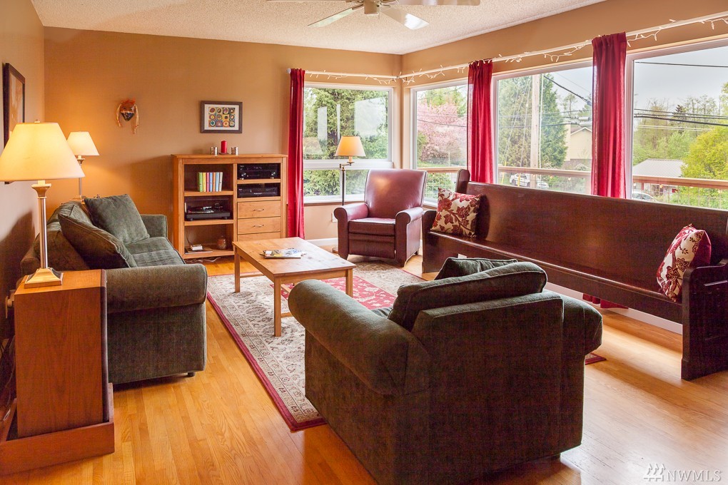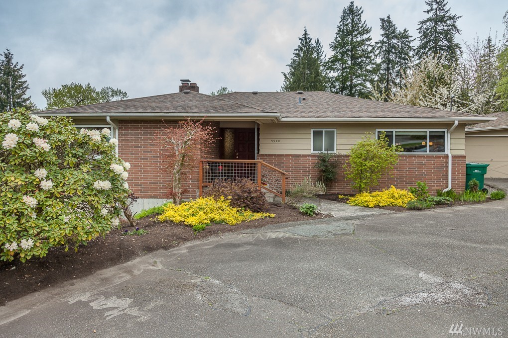 Welcome to this special Brier home w/updated kitchen, views of Mt Baker/Cascades from dining room, inviting deck, large window lined living room w/cozy fireplace, master bedroom ensuite, bedroom, full bath, mudroom & sweet hot tub+deck w/fenced backyard all on main floor. FULL basement including media room with fireplace, large bedroom and two bonus rooms w/private entry and 3/4 bath spill onto a rolling and expansive front yard. 2 car garage, or use as a shop, off street parking for RV/boat.