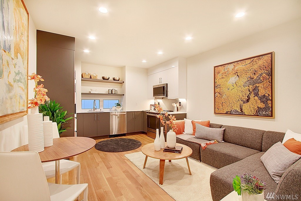SEE VIRTUAL TOUR! Last unit available! 1098 SF two bed townhouses by BuildSound LLC, steps to The Junction. Gorgeous rift-sawn White Oak hardwoods, dual mini split A/C units, Bellmont custom cabinets, GE Profile stainless steel appliances + quartz counter-tops. Carpeted beds with ensuite tiled showers including 4 piece master bath w/ dual vanities. Maximized spaces w/ plenty of windows. Zero Lot Line -No HOA- priced to keep payments LOW. Buy into downtown West Seattle w/ a beautiful townhome!