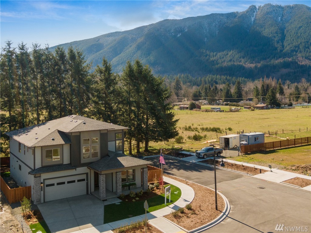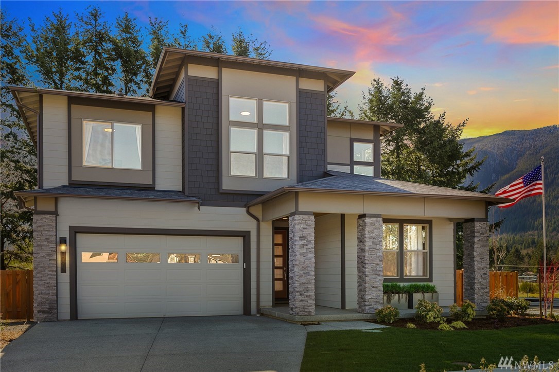 This 2734 sf Residence 1 has 4bdr, 2.75Bath/ 2 car garage & mud room. Entertainers kitchen w/ oversized island, full height tile b/s, soft close cabs wall oven & walk-in pantry! Hdwd floors on main, tile fl & quartz tops in bathrooms. Open concept main living with two sided fireplace opens onto your covered patio and views of Mt Si. Large Soaking tub in mstr bath. Mainfloor bdrm/bath combo and walkin closets in every bdrm.