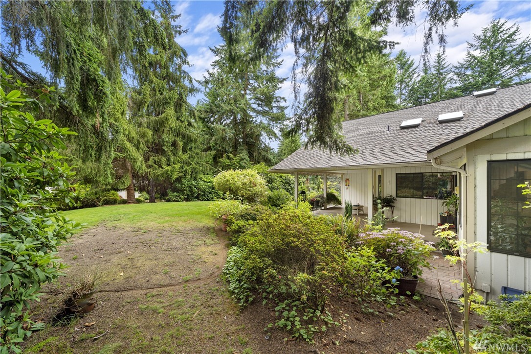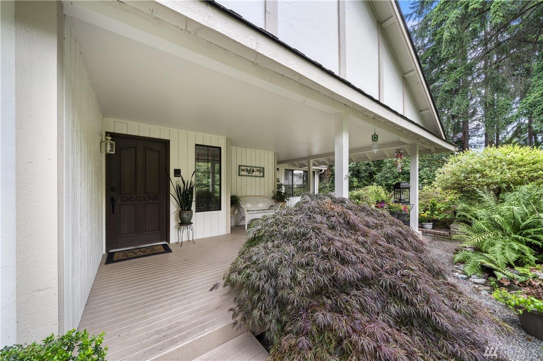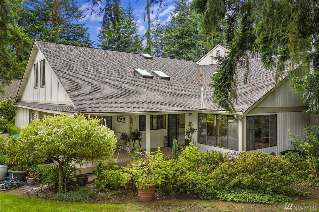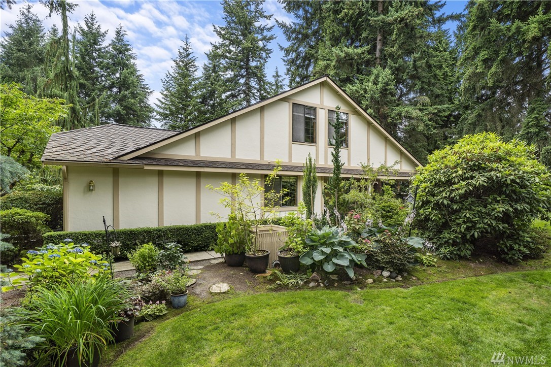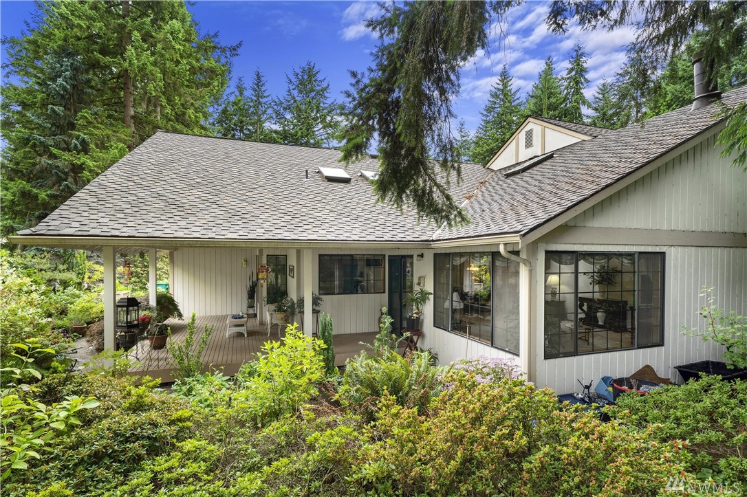 Beautiful corner lot w/covered wrap around deck! Home offers a 2 bd, 2 full bath, plus office/den. Spectacular windows that enhance the beauty of this private corner lot. Formal living room has cathedral ceilings, wood burning fireplace, New laminate flooring/ carpet downstairs and an abundance of natural light. Upper level is a large master suite w/walking closet. Located close to Mill Creek center, restaurants, golf course and shopping!