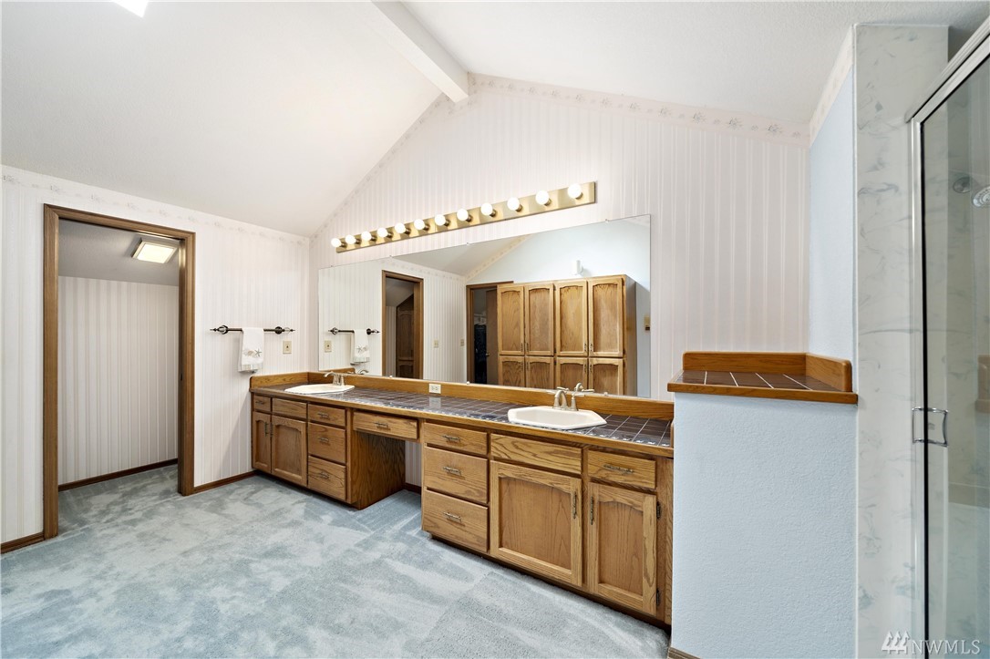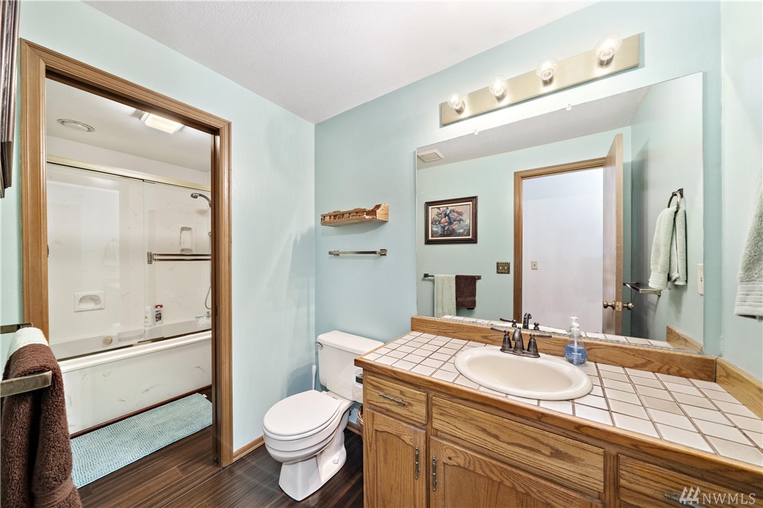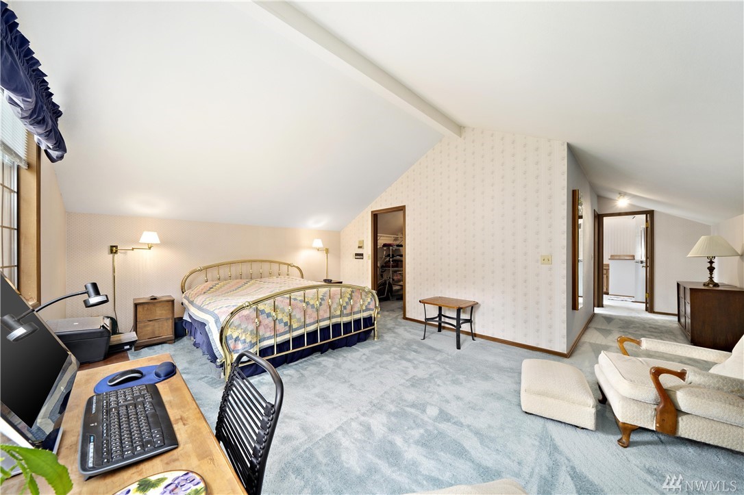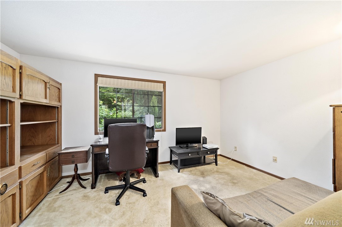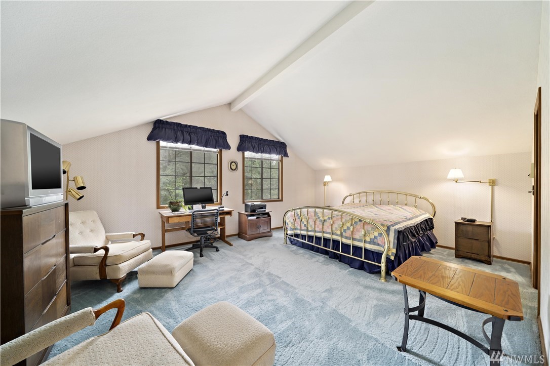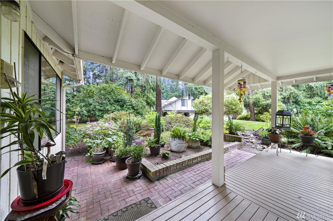 Beautiful corner lot w/covered wrap around deck! Home offers a 2 bd, 2 full bath, plus office/den. Spectacular windows that enhance the beauty of this private corner lot. Formal living room has cathedral ceilings, wood burning fireplace, New laminate flooring/ carpet downstairs and an abundance of natural light. Upper level is a large master suite w/walking closet. Located close to Mill Creek center, restaurants, golf course and shopping!