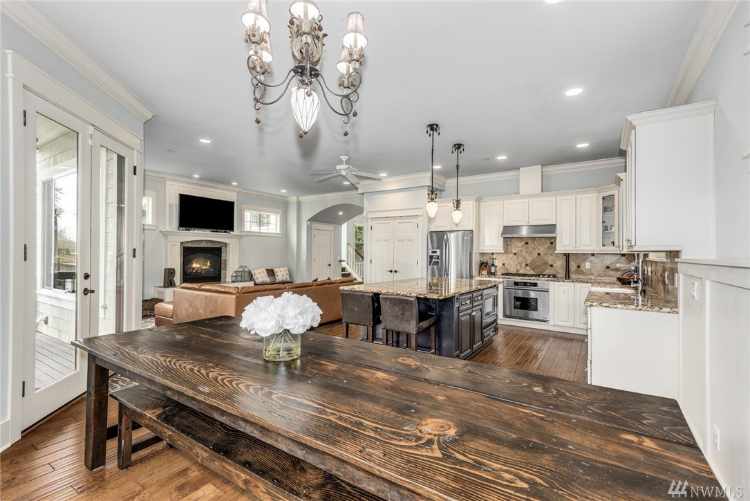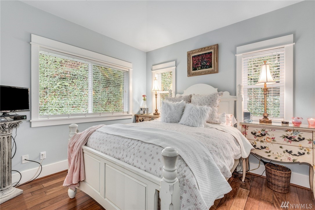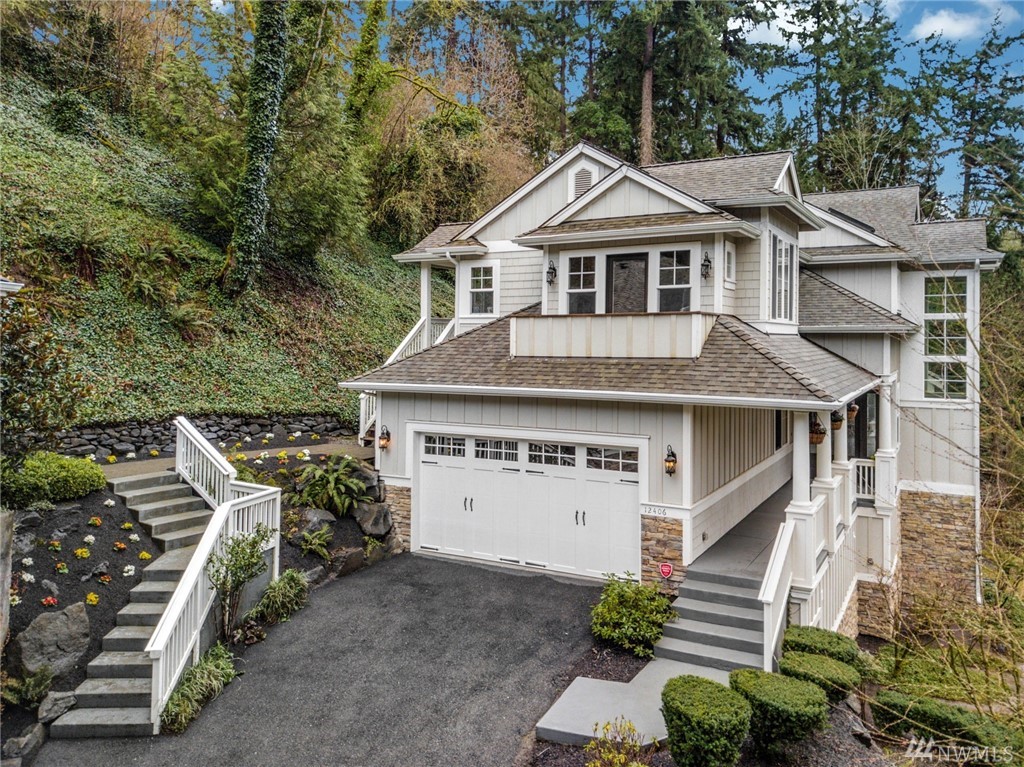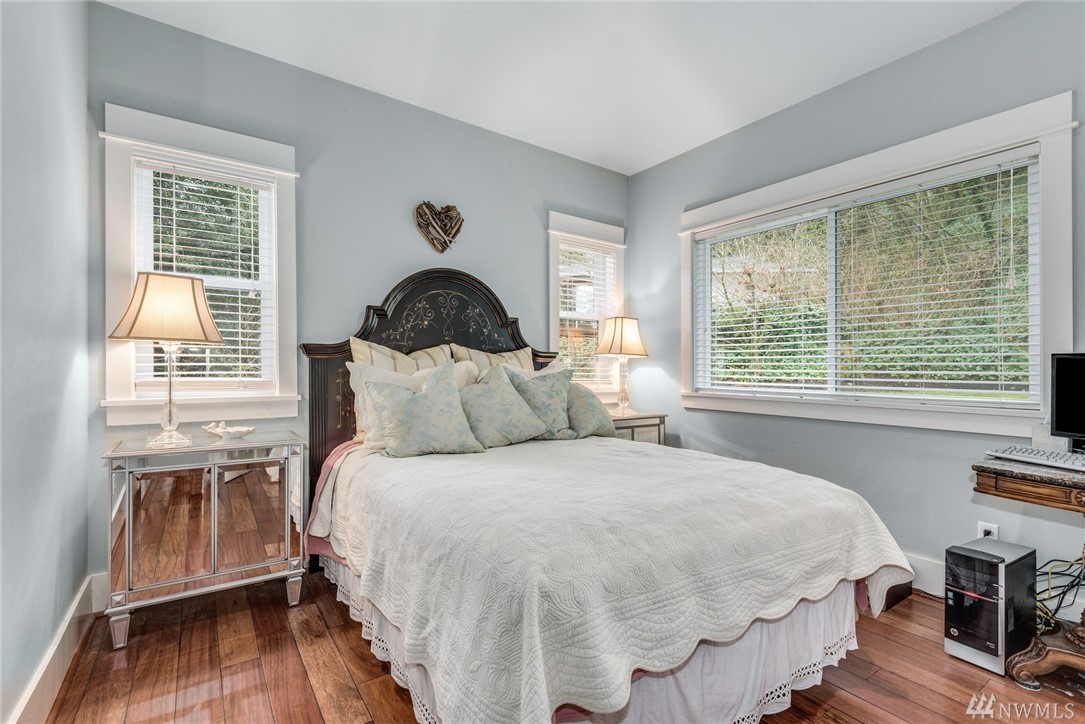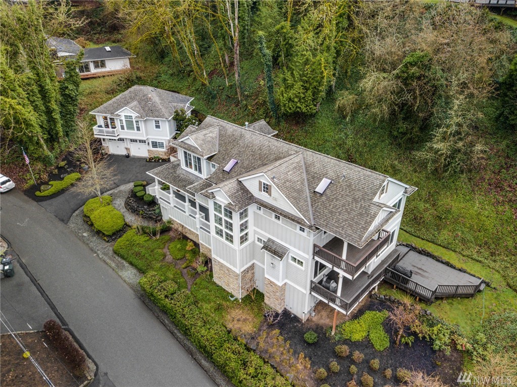 Exquisitely crafted home w/a brilliant Western Focus; steps to the Holmes Point Park & Waterfront.Solid construction w/strong details, elemental textures & treasures throughout.Freedom of open spaces in expansive great room w/walls of windows opening to entertainment sized decks.Bedrooms are spacious, the master suite impressive w/soaring ceilings & views.Neighboring Guest Cottage is crafted w/the same superb level of quality, self-contained & metered. Great air BNB, rental, or extended living.